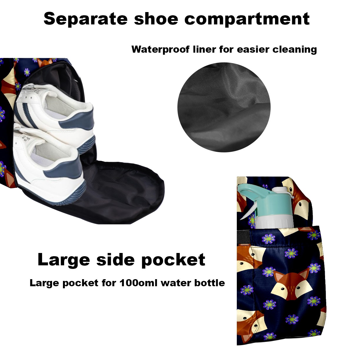 • Превосходные характеристики и материалы: Доступен в нескольких размерах: 22 см × 48 см × 35 см / 8,7 дюймов × 18,9 дюймов × 13,8 дюймов. Изготовлен из высококачественной саржевой ткани, легкий, прочный и долговечный. Научно организованное хранение: Просторное основное отделение вмещает одежду и обувь; удобный карман для хранения мелких предметов, таких как наушники и телефоны; вентилируемое отделение для обуви (подходит для обуви 10-го размера) + водонепроницаемый мешок для разделения сухих и влажных вещей и предотвращения запаха. Универсальность: Может использоваться как спортивная сумка, дорожная сумка или повседневная сумка, удовлетворяя различные потребности, такие как игра в пиклбол, поездки на выходные и ночевки в больнице. Идеальная интеграция для фитнеса и поездок на работу: Разработан для активного образа жизни, подходит для всего, от занятий на велотренажерах и силовых тренировок до послешкольных обедов и коротких деловых поездок. Сочетание функциональности и эстетики: оптимизированное расположение карманов уравновешивает практичность и стиль, удовлетворяя как функциональные, так и эстетические потребности.