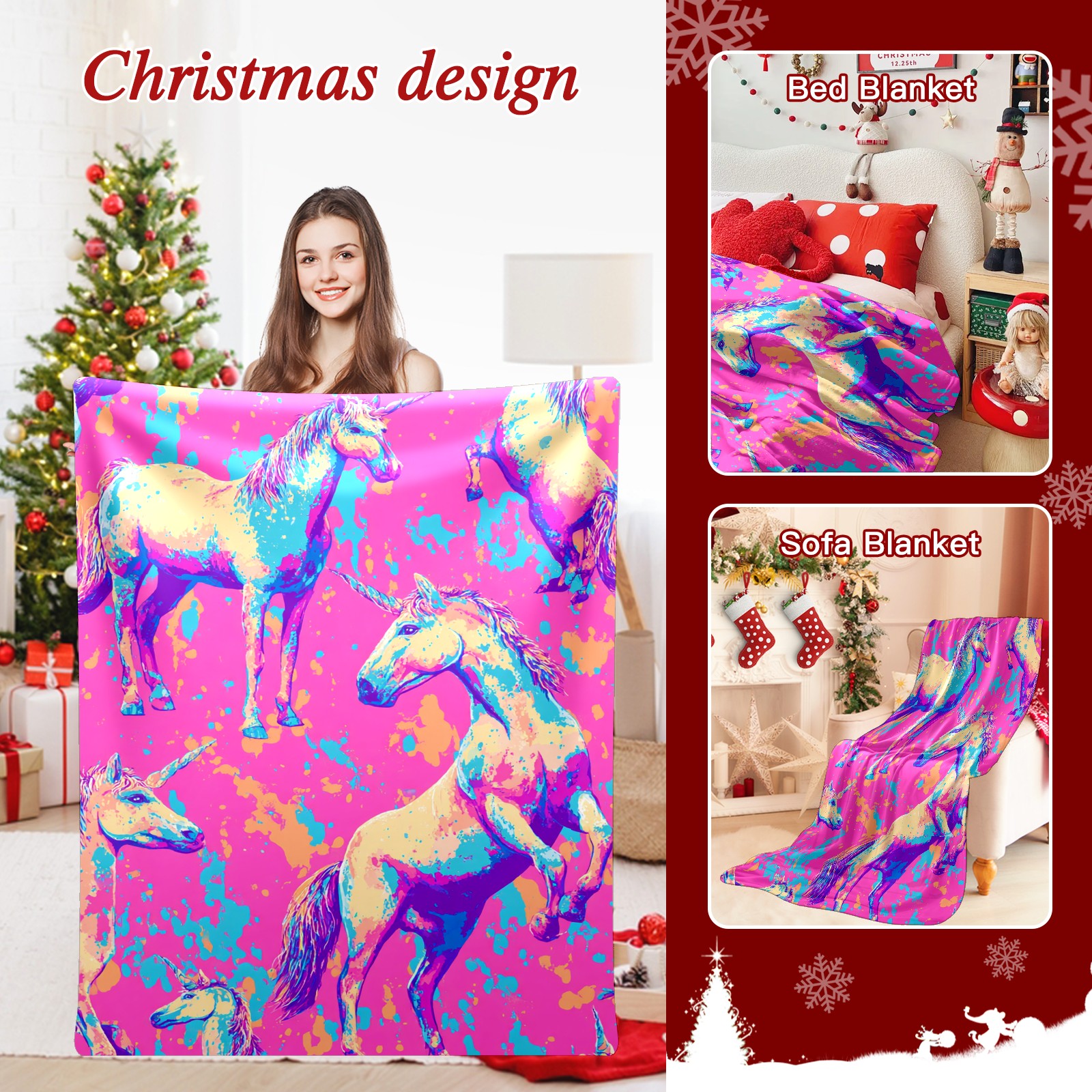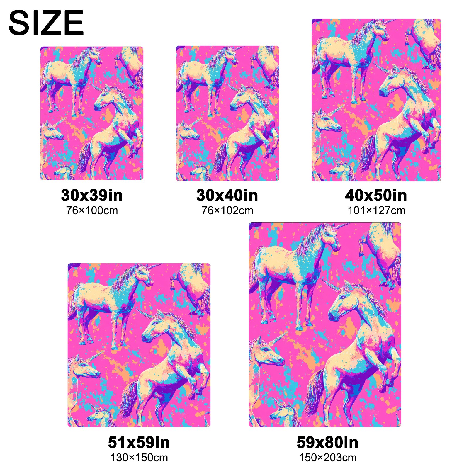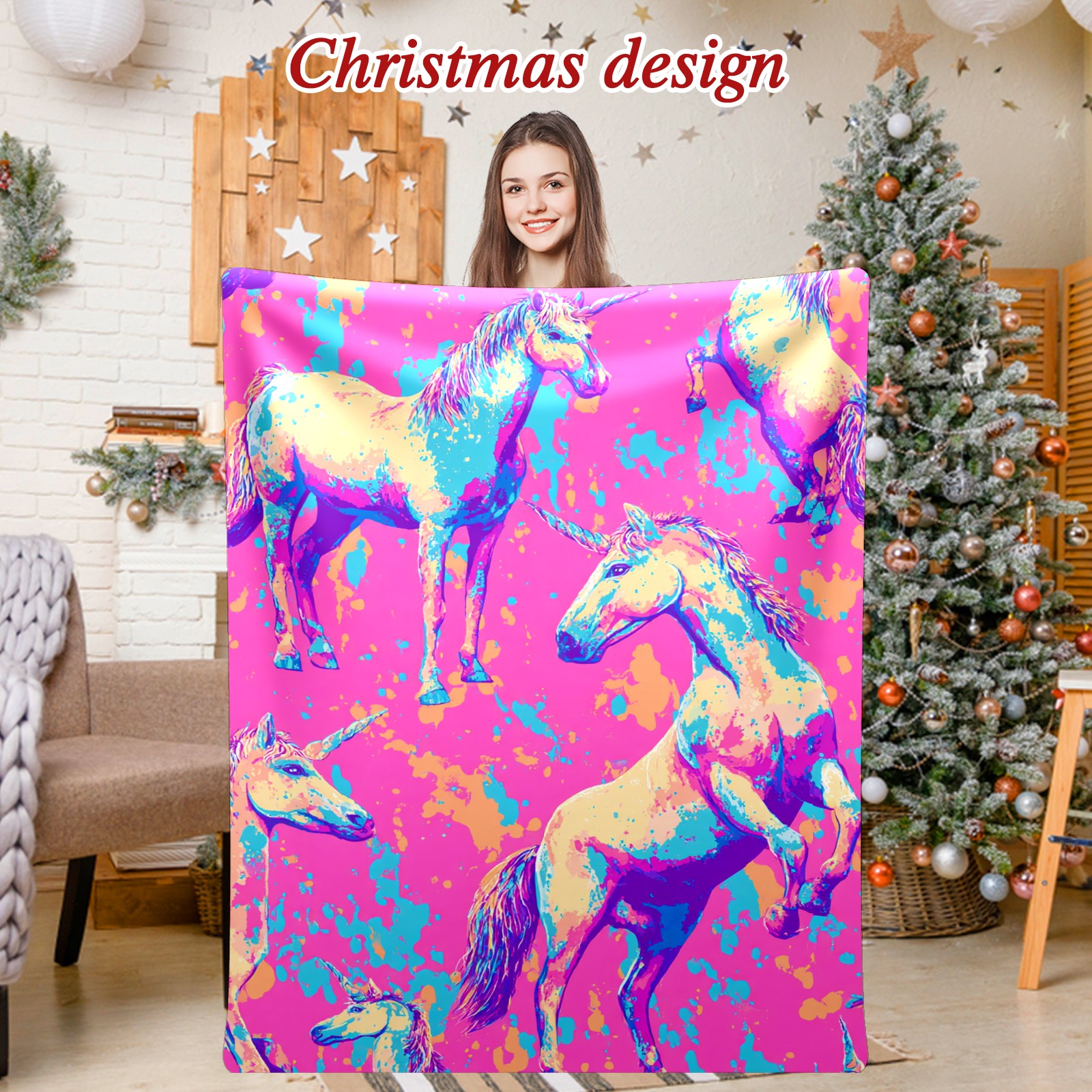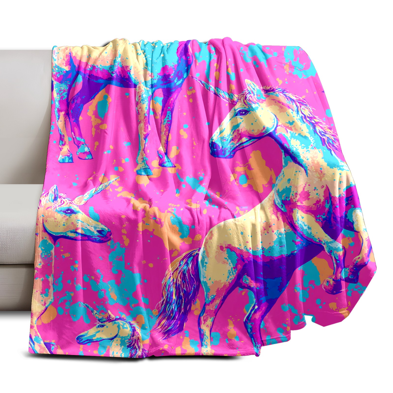 Премиальная фланелевая одеяло Vibrant Unicorn Multi