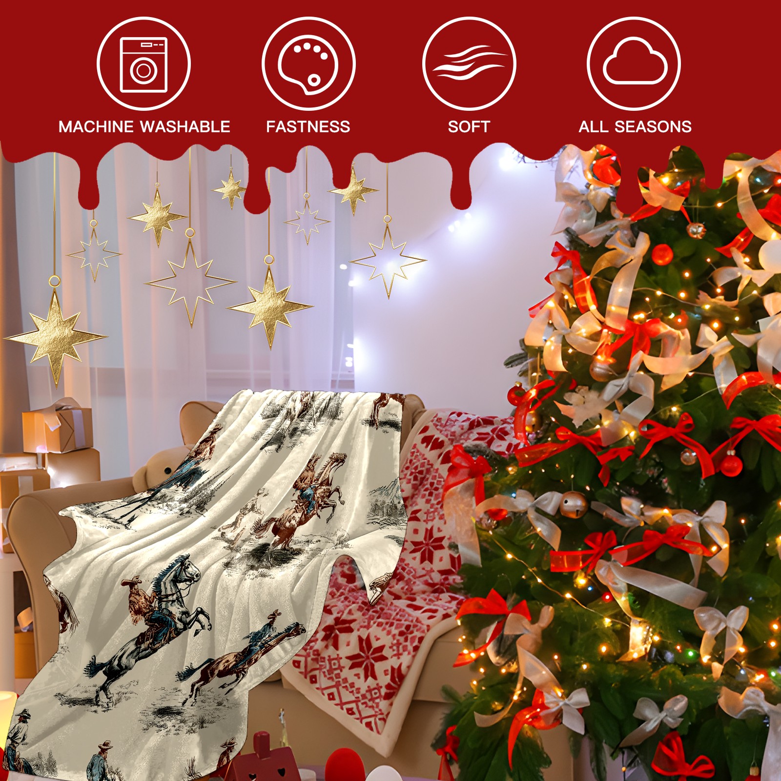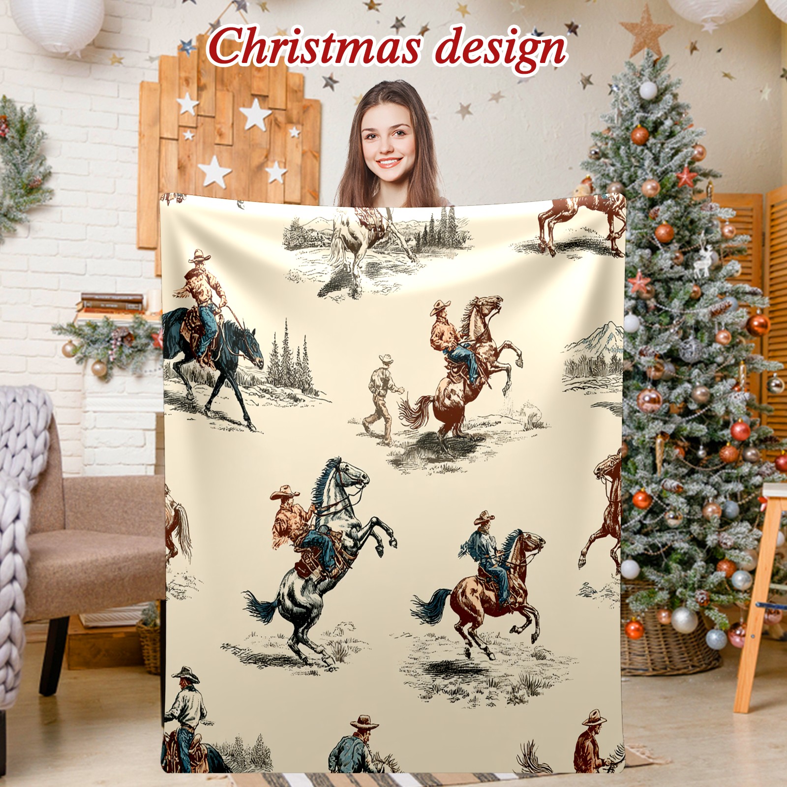 Премиальная фланелевая одеяло Vintage Rider Beige