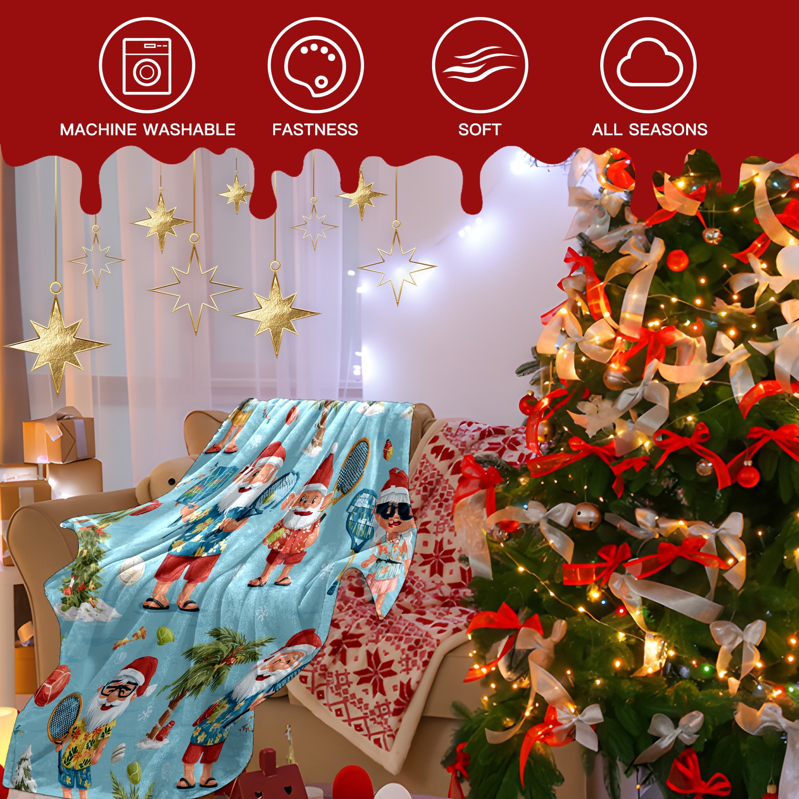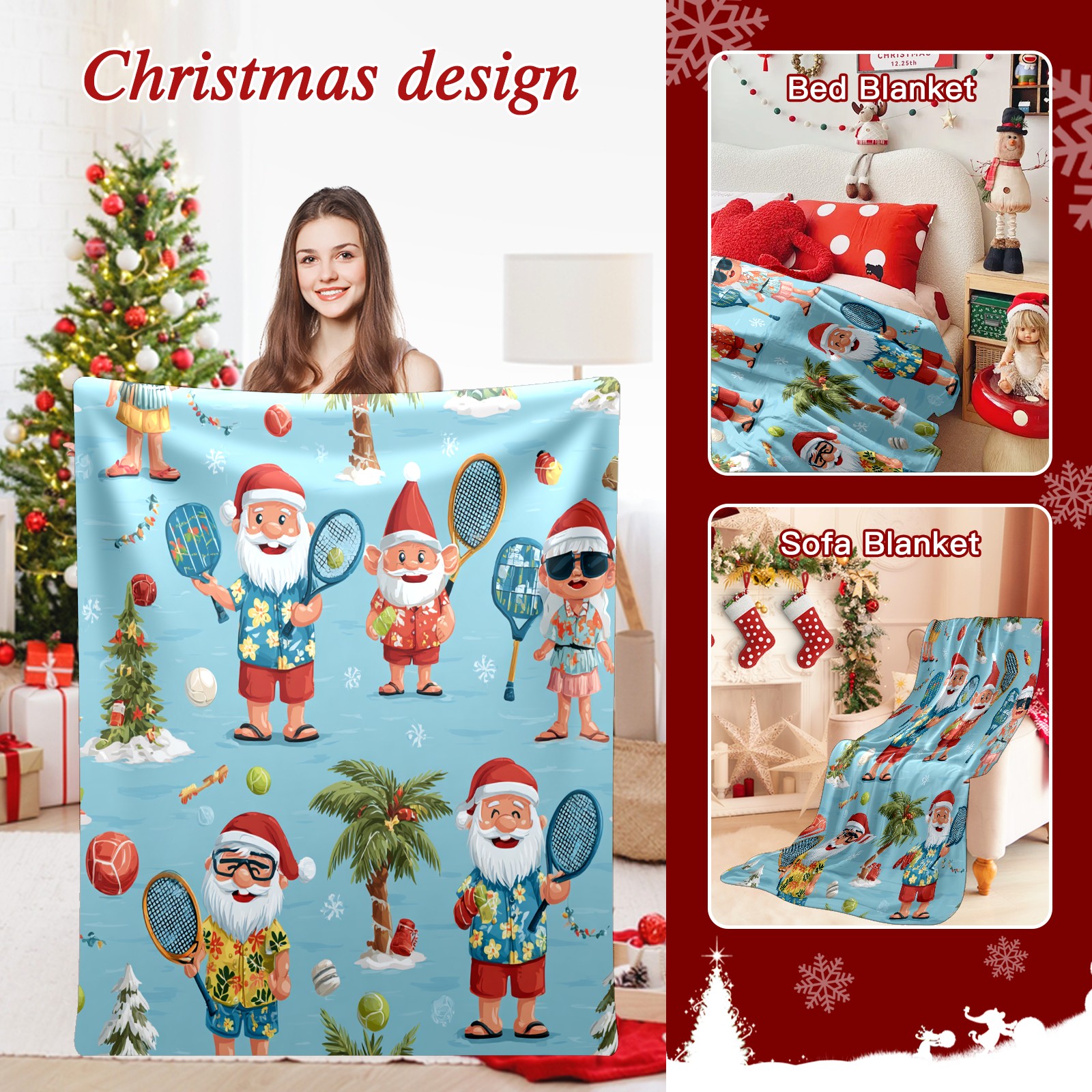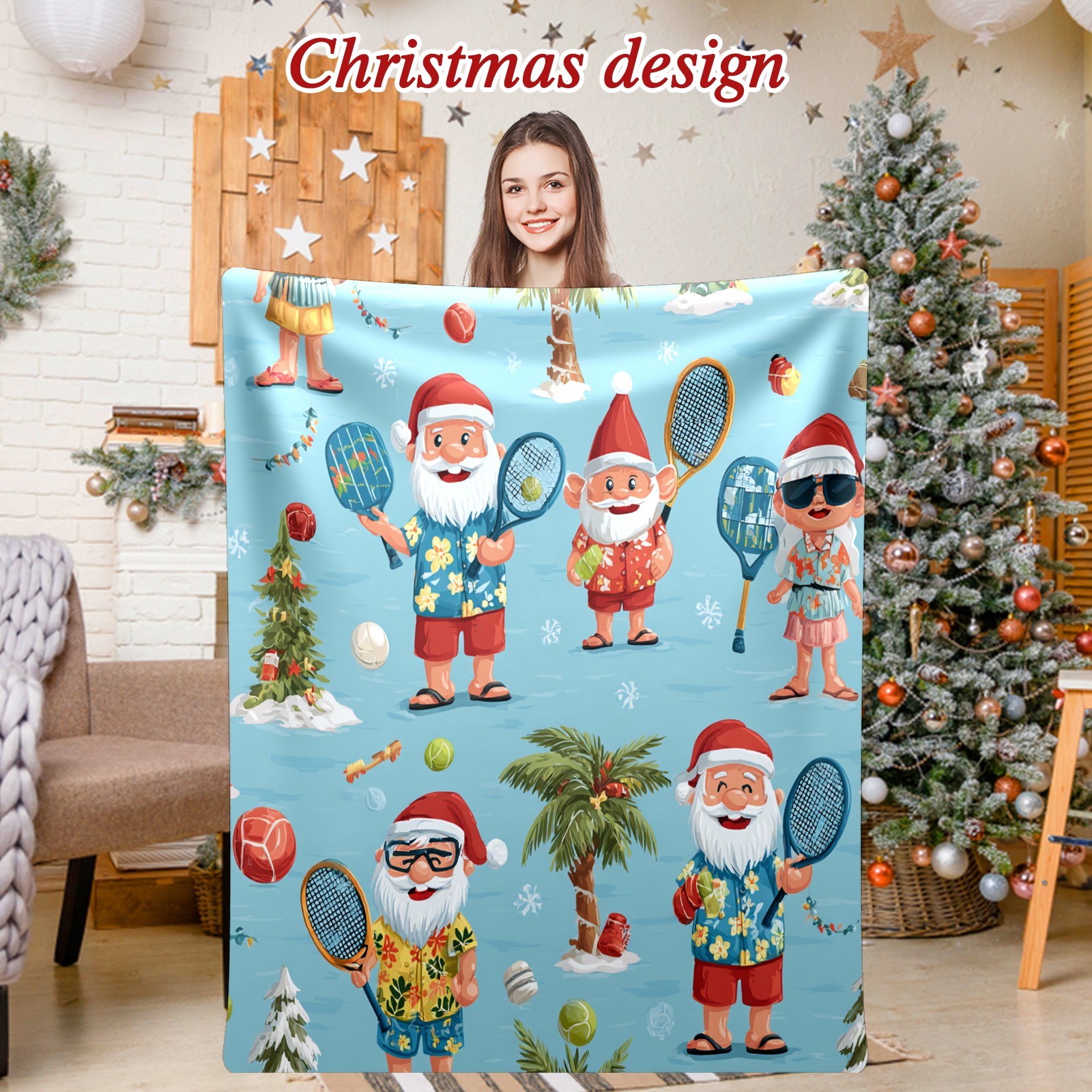 Премиальная фланелевая одеяло Lively Santa Blue