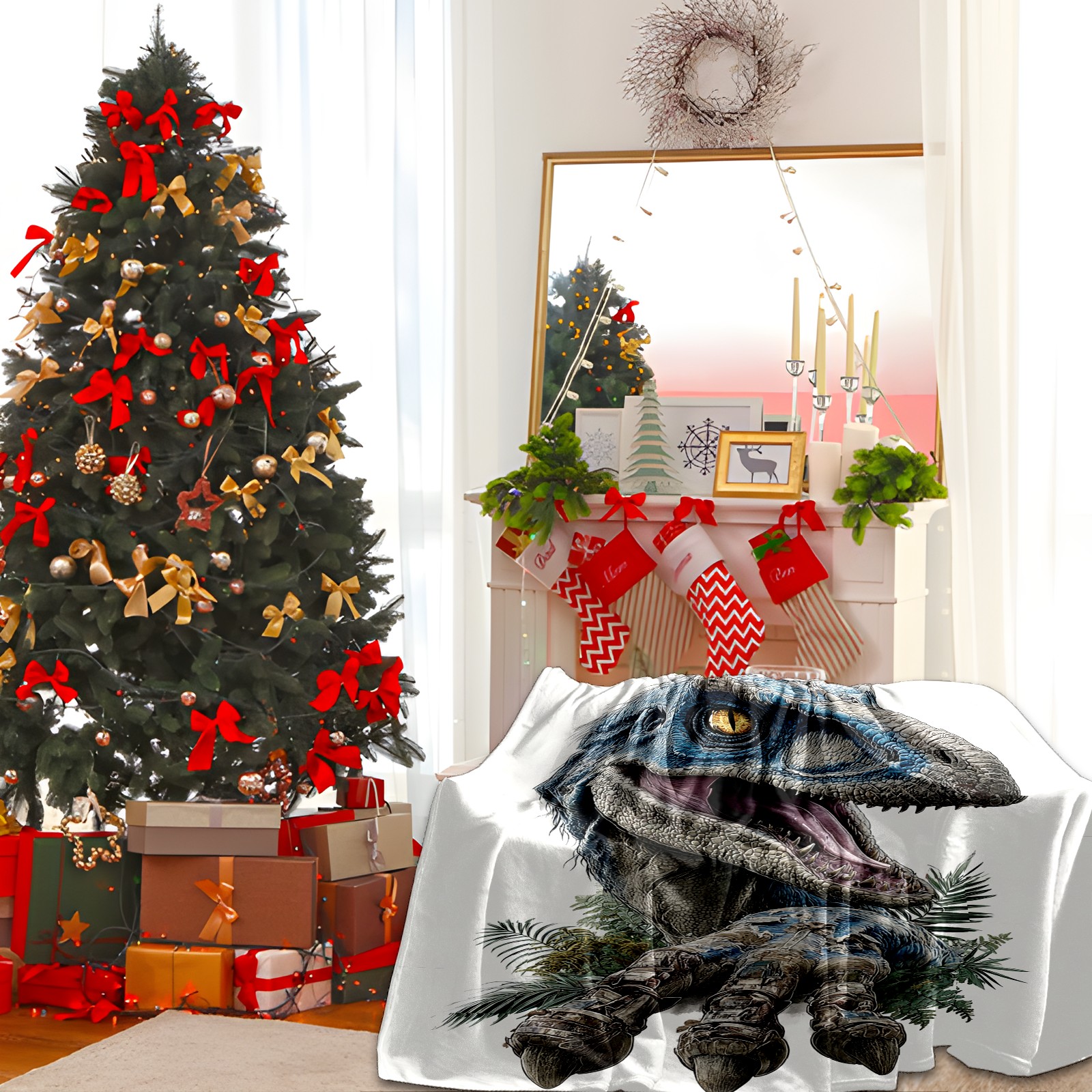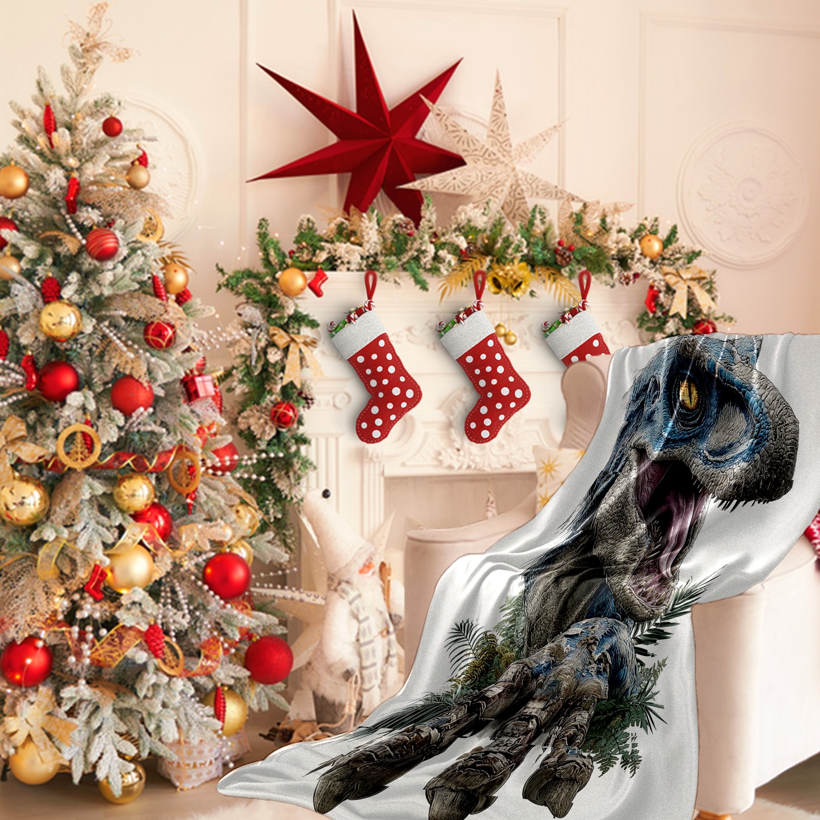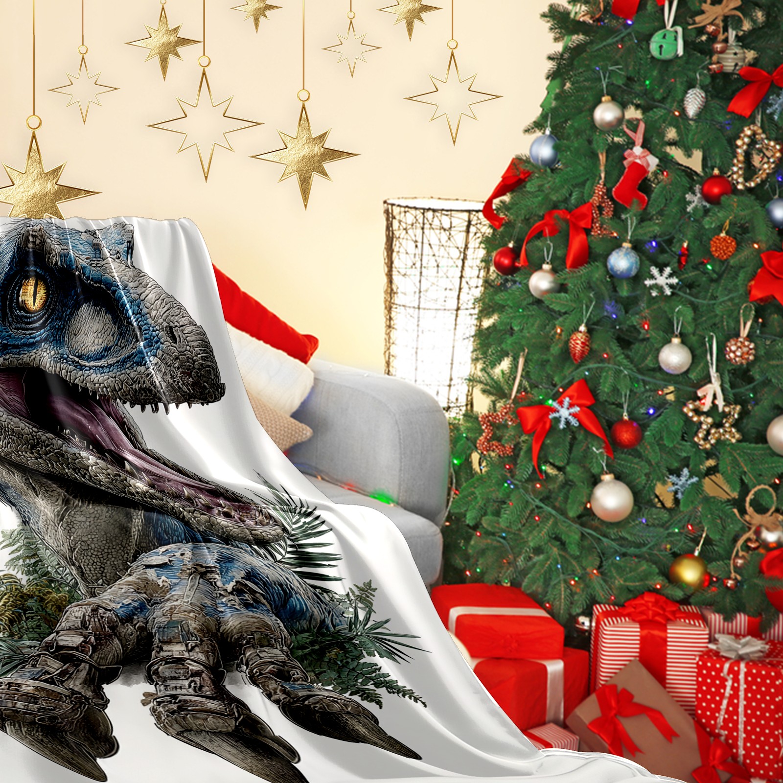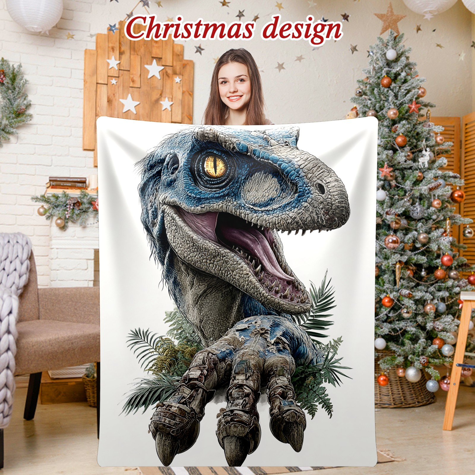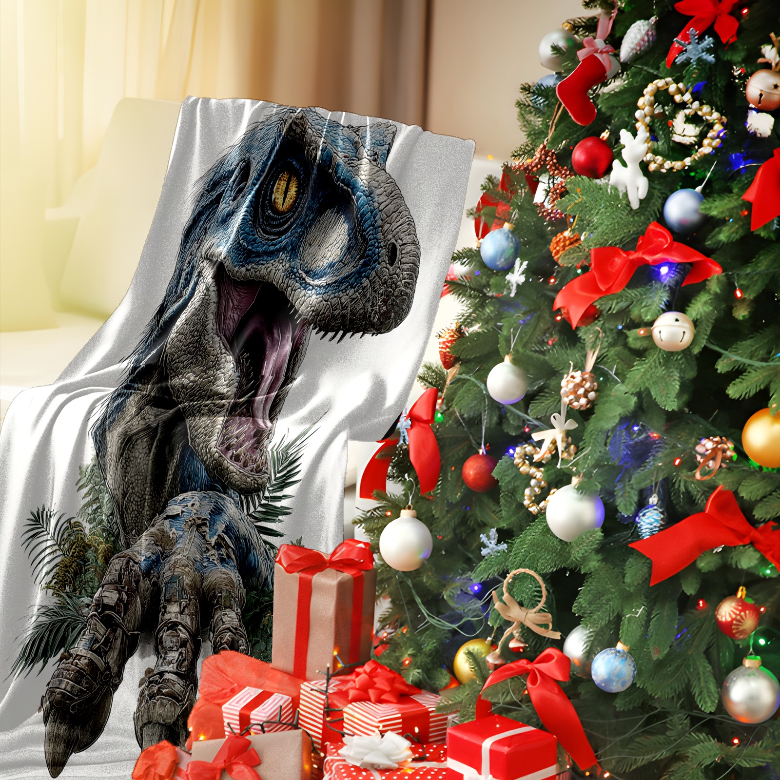 Премиальная фланелевая одеяло Stunning Dinosaur Blue