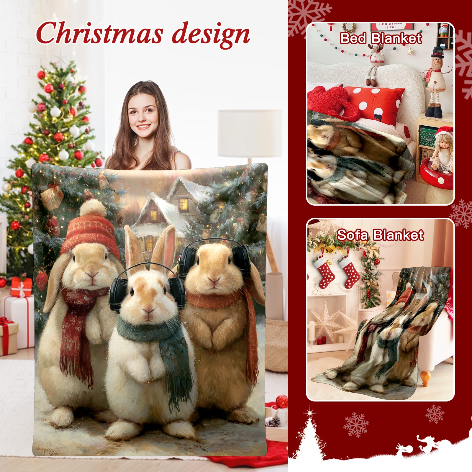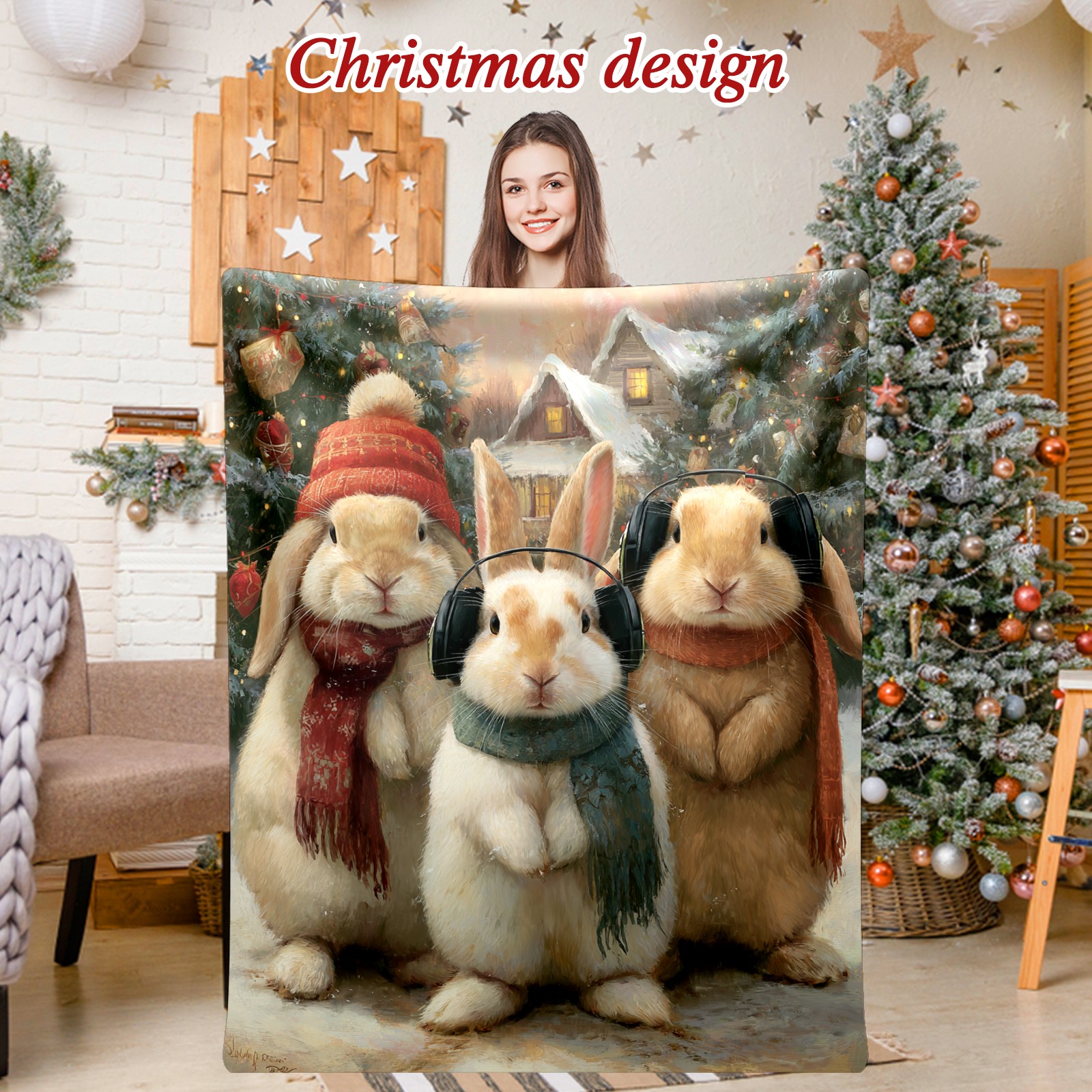 Премиальная фланелевая одеяло _bjkj_Three_cute_bunnies_with_christmas_decorations_including_cc3fef81-4f2a-41f6-89ee-8fd889f36792_2