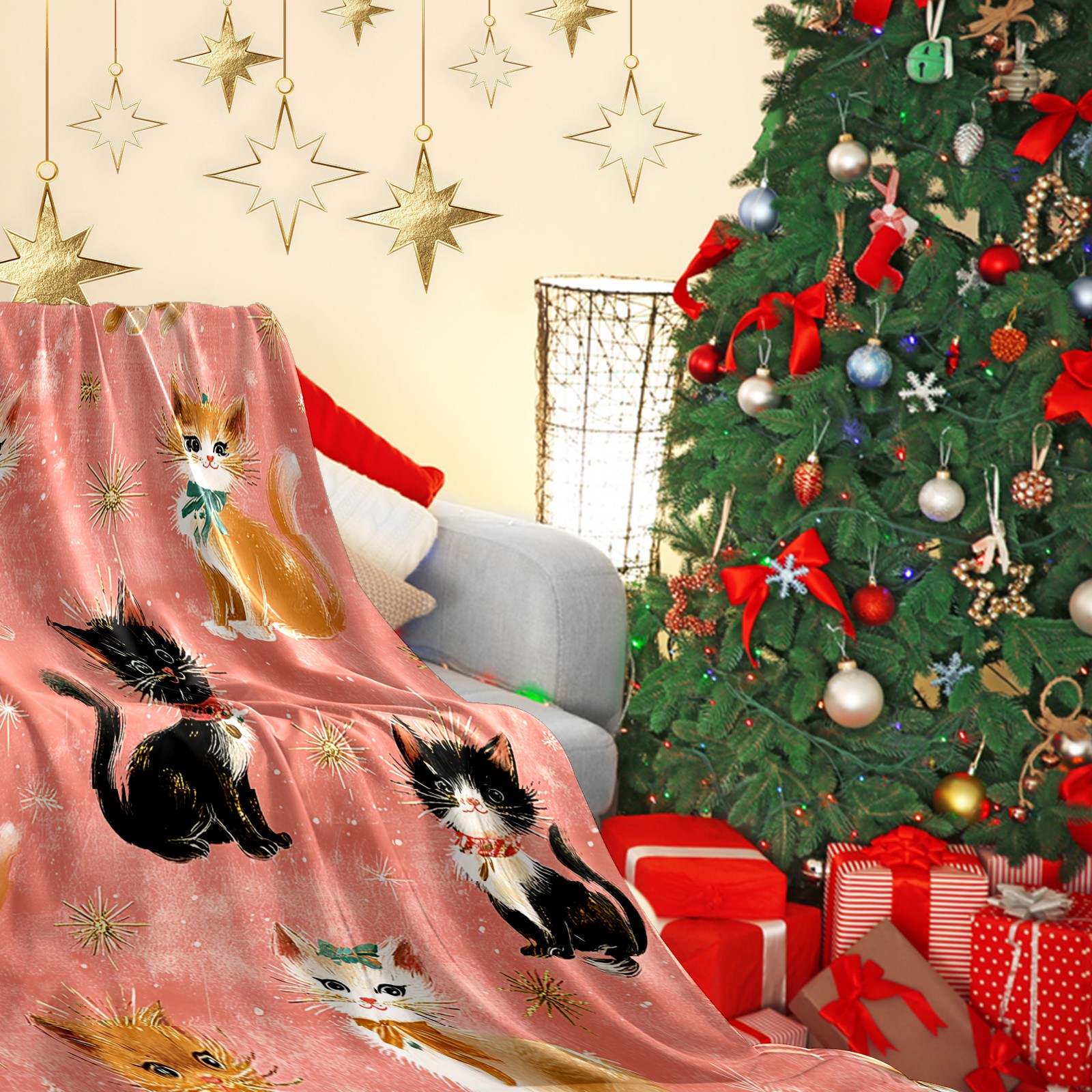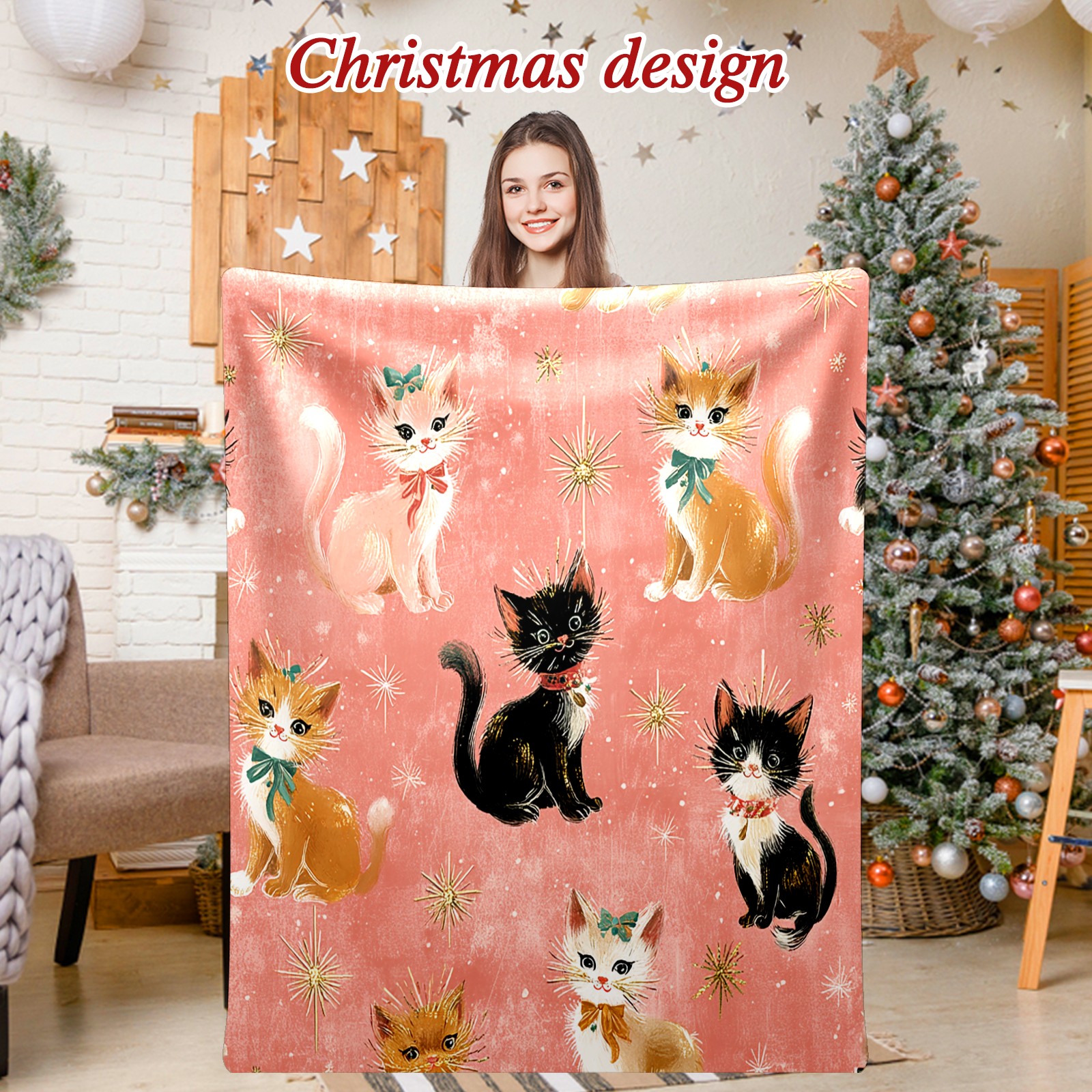 Премиальная фланелевая одеяло Cute Cat Pink