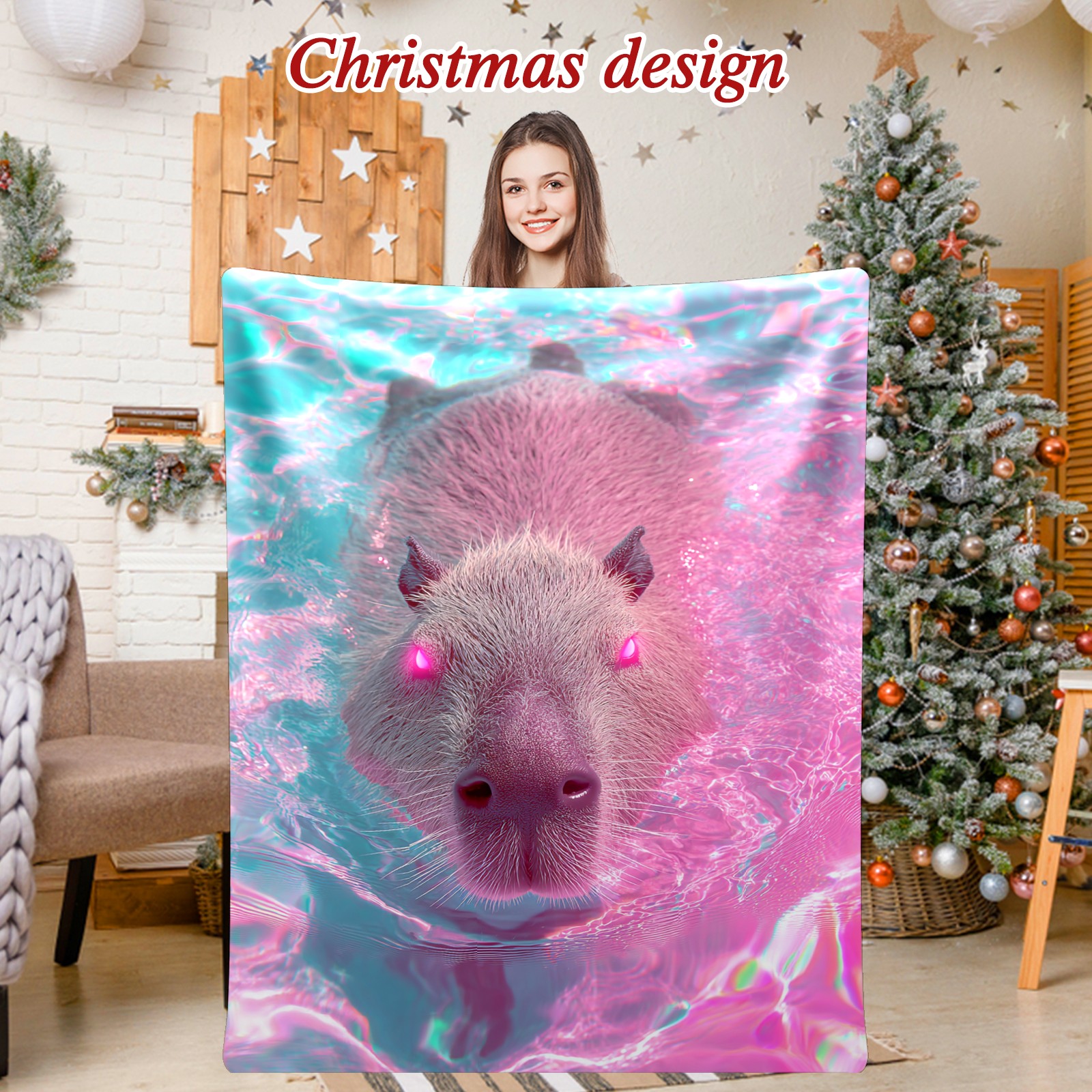 Премиальная фланелевая одеяло Cute Capybara Pink