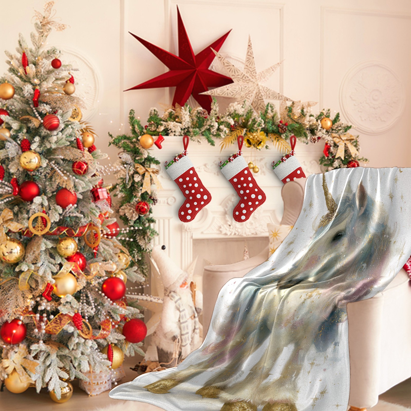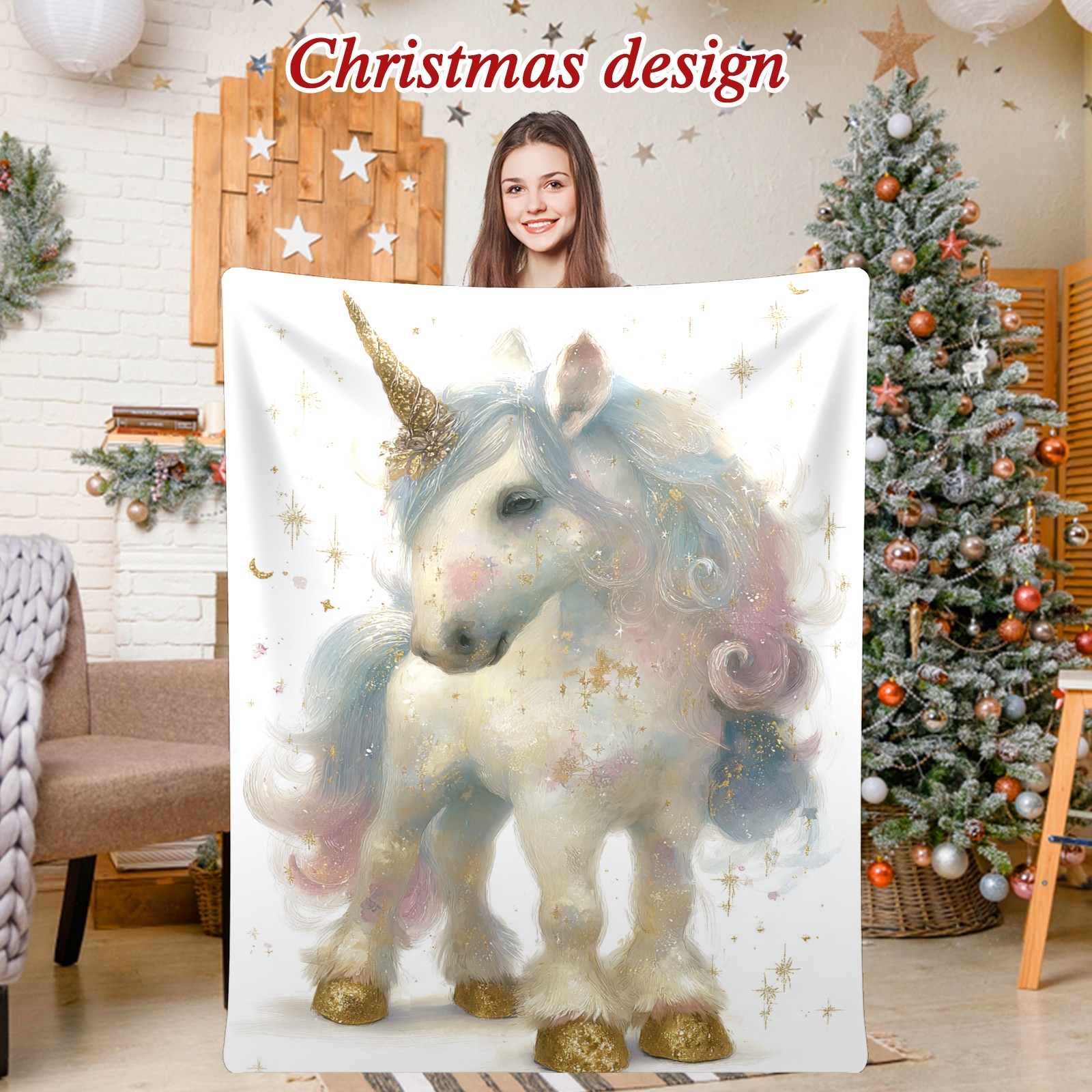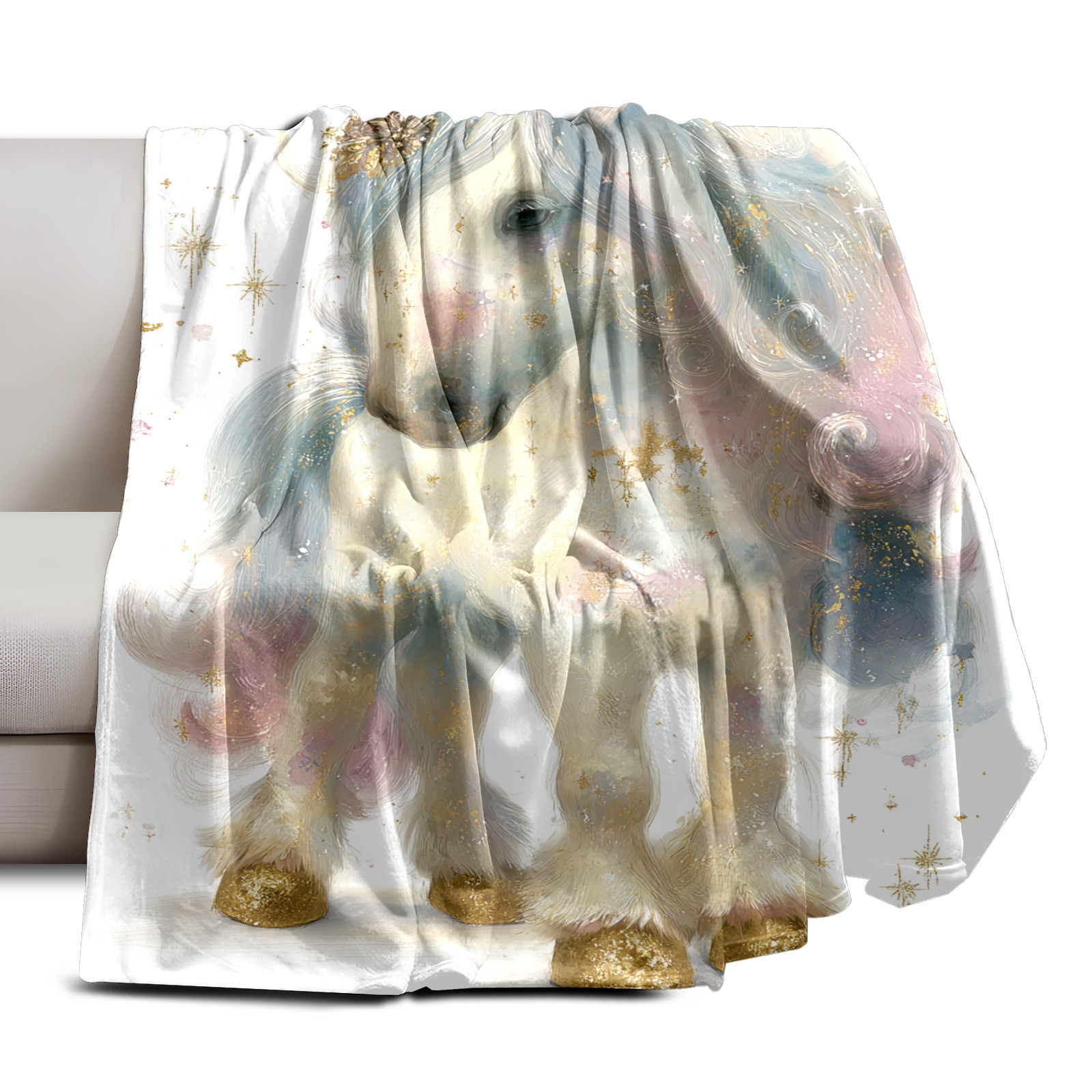 Премиальная фланелевая одеяло Dreamy Unicorn White