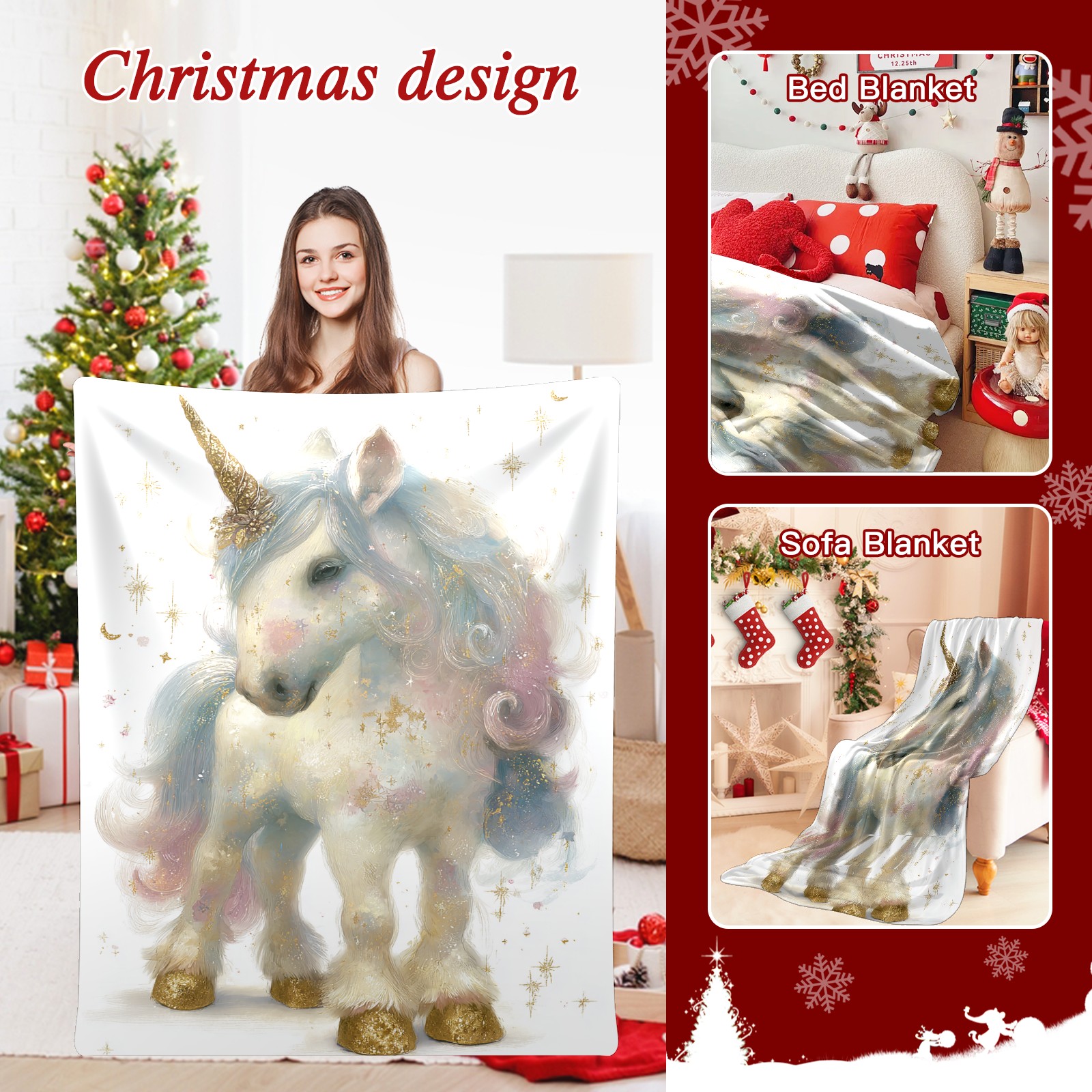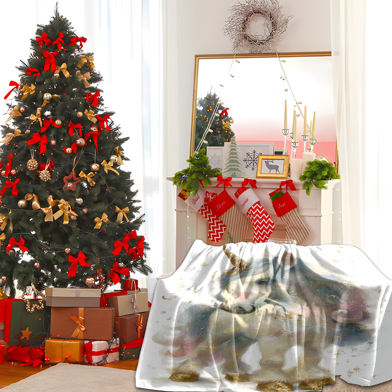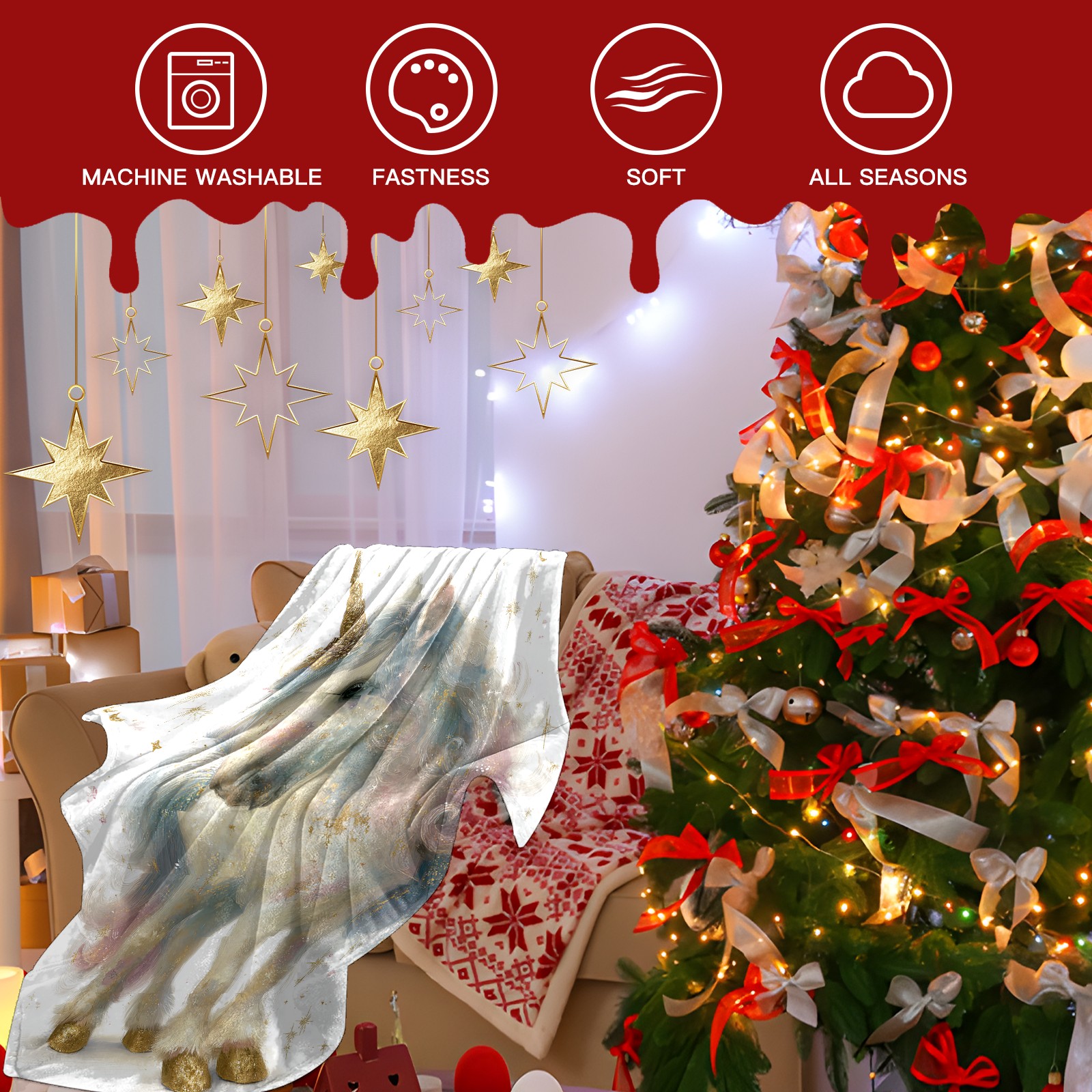 Премиальная фланелевая одеяло Dreamy Unicorn White