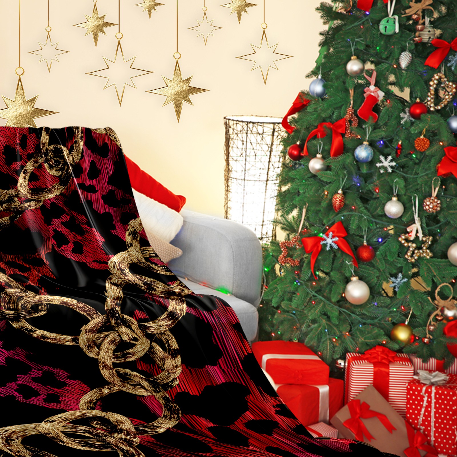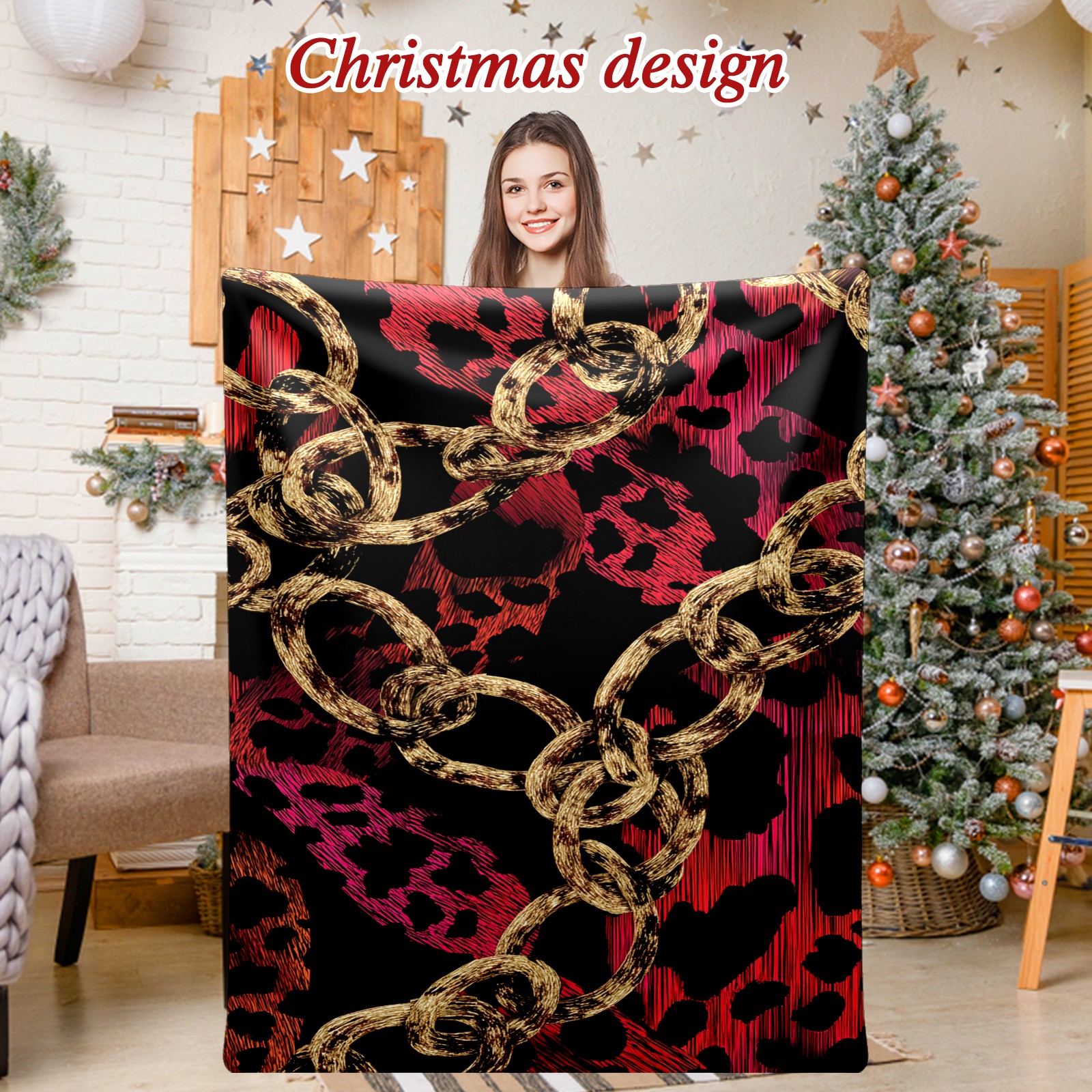 Премиальная фланелевая одеяло Chic Chain Black
