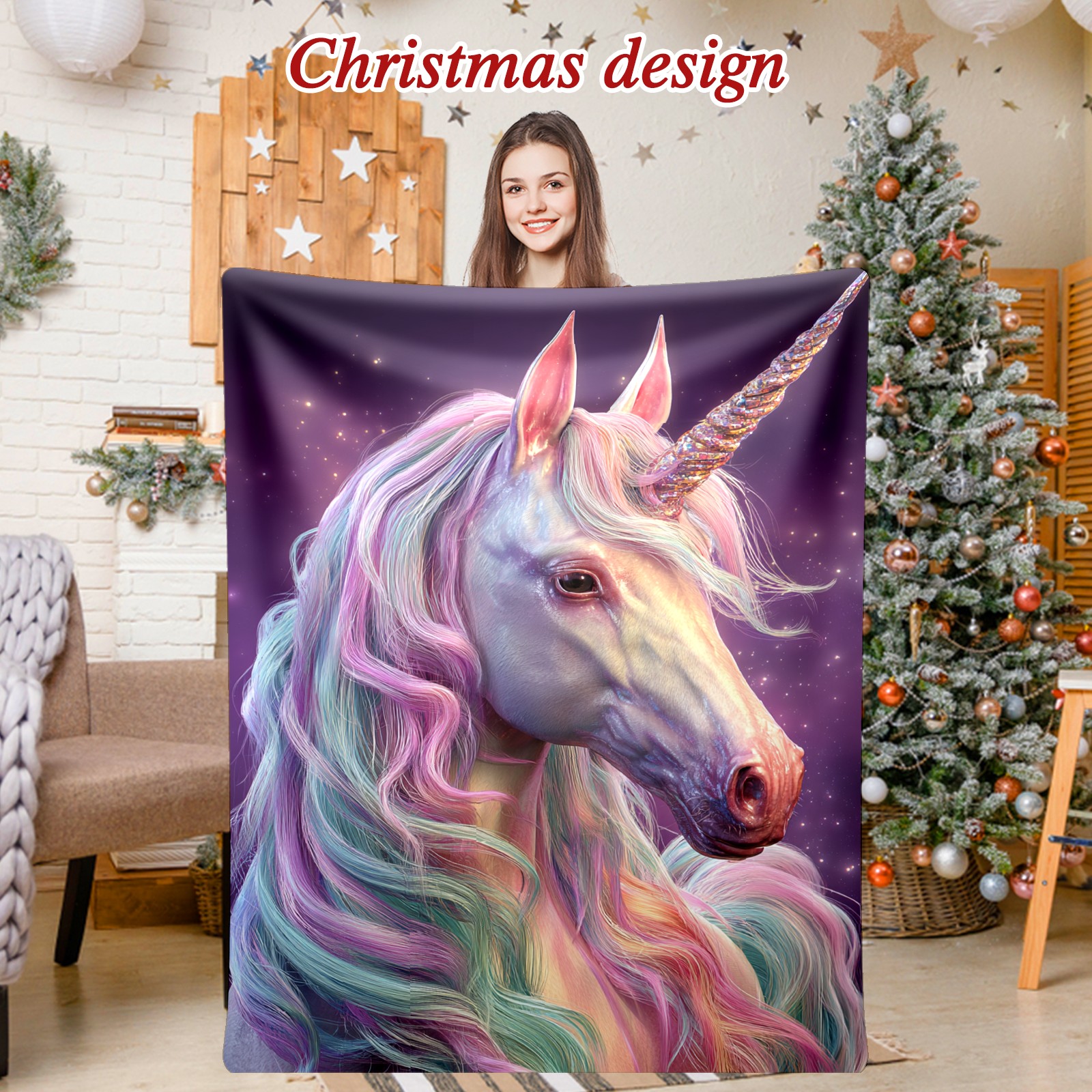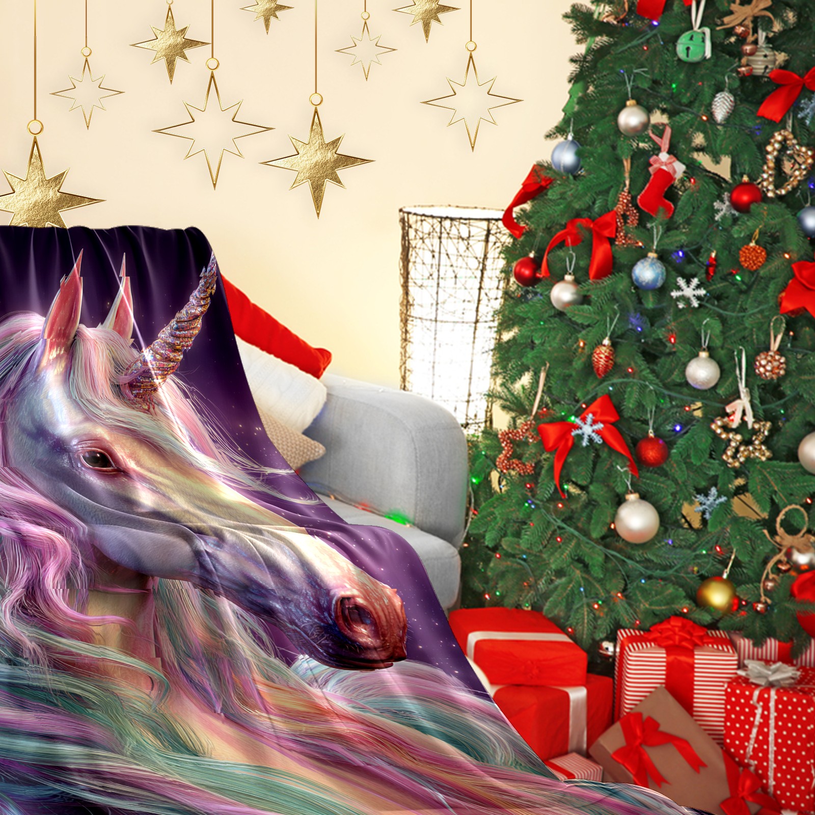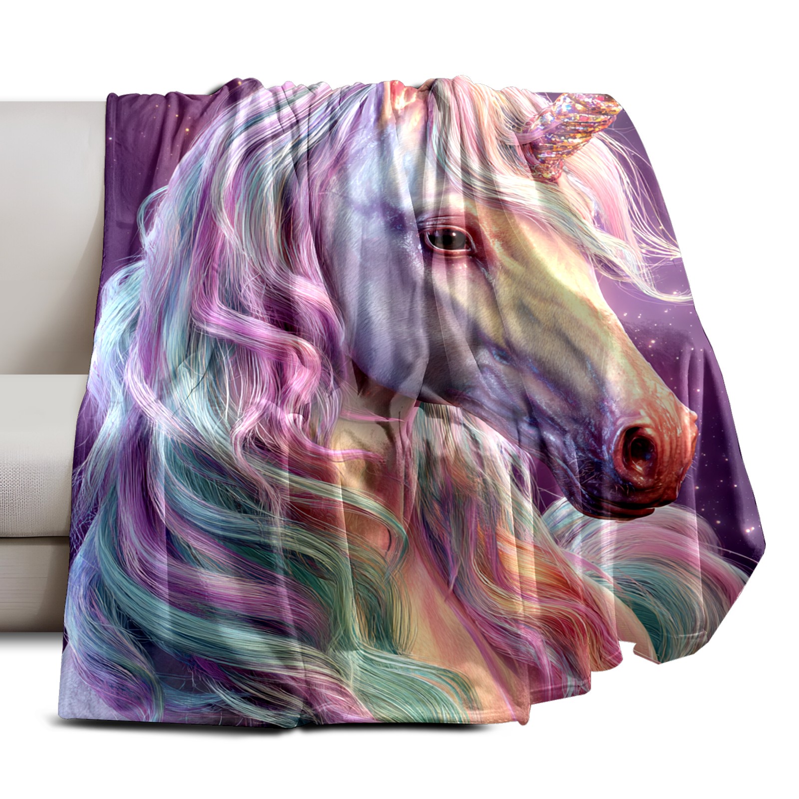 Премиальная фланелевая одеяло Vibrant Unicorn Multi