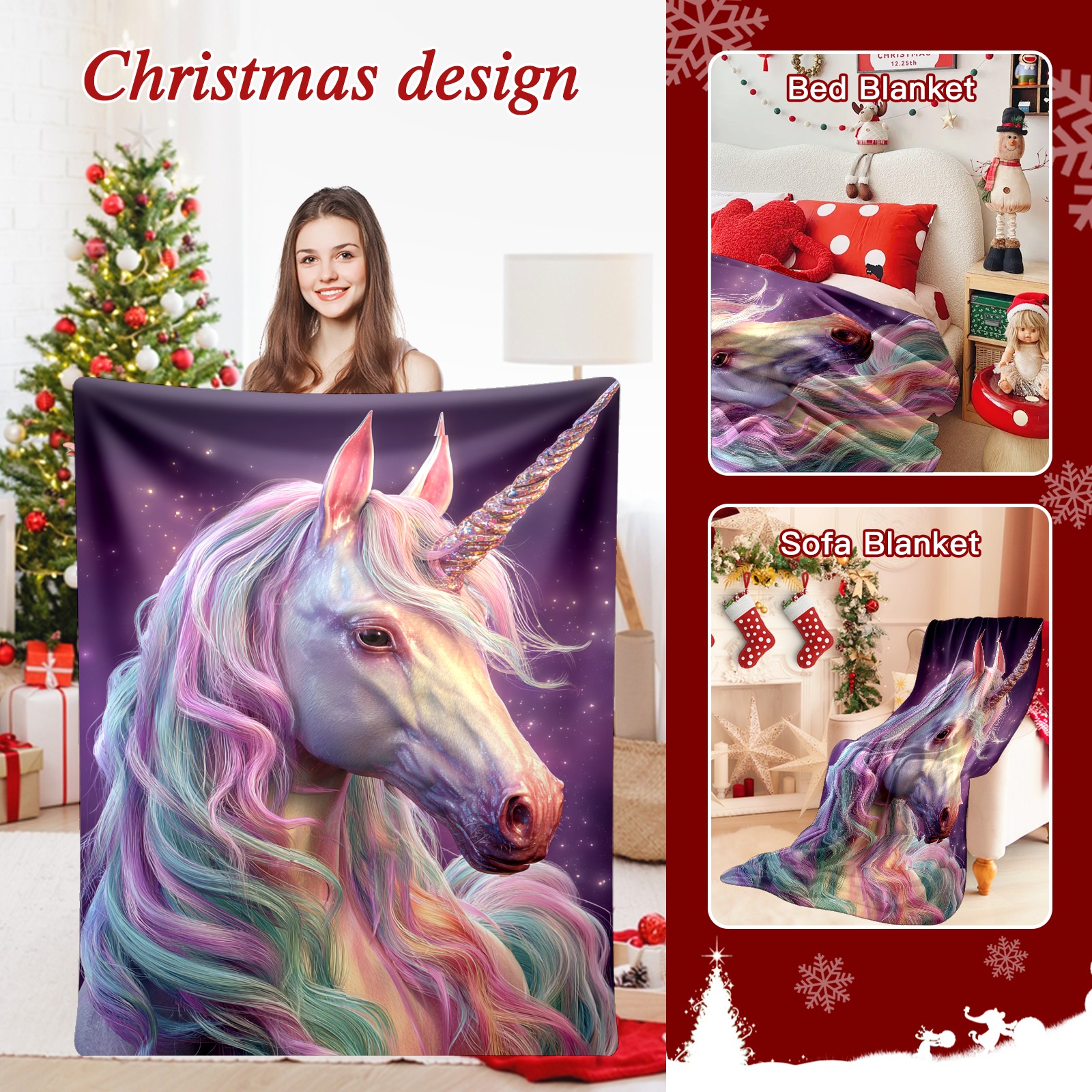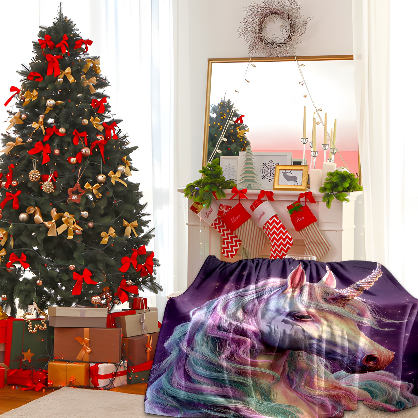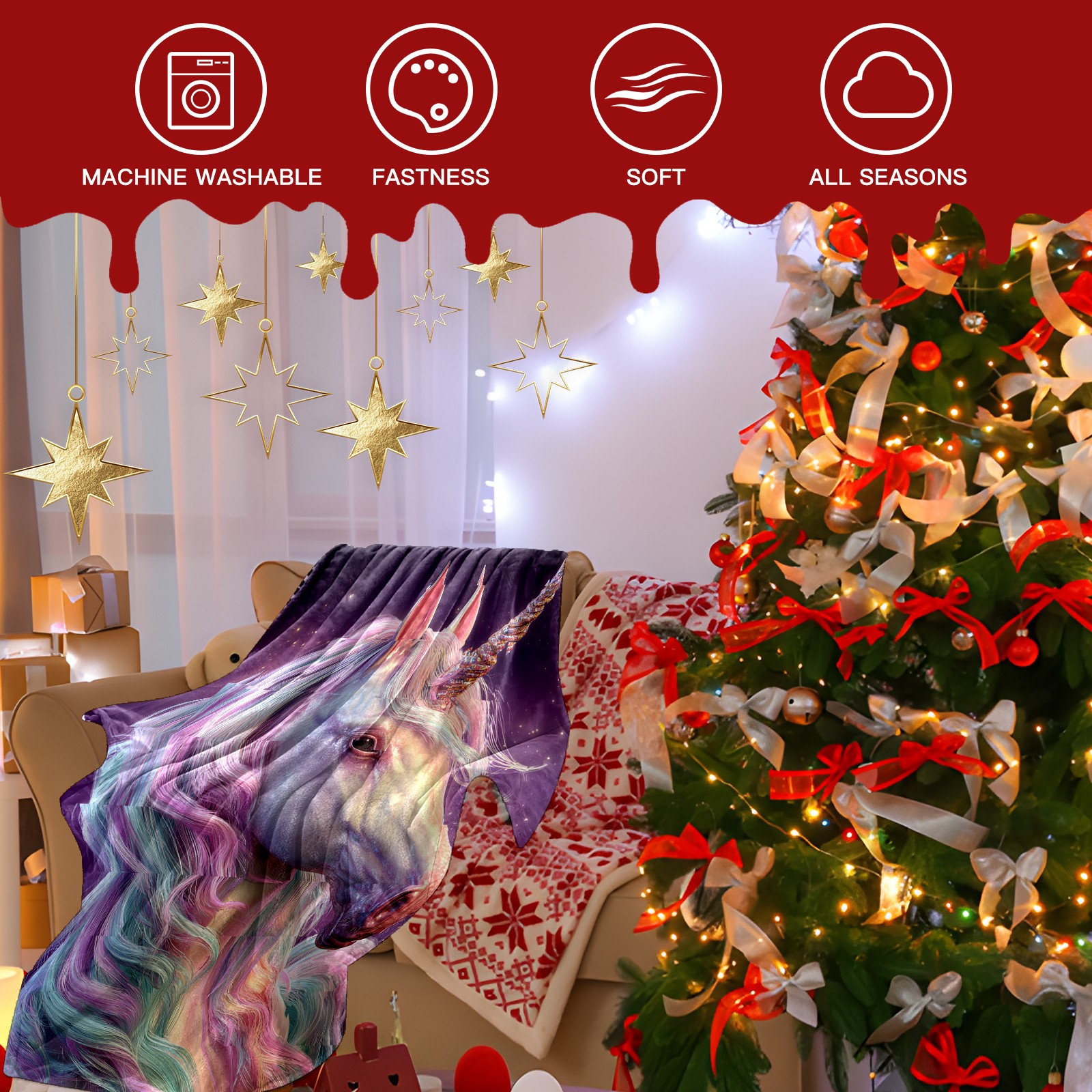 Премиальная фланелевая одеяло Vibrant Unicorn Multi