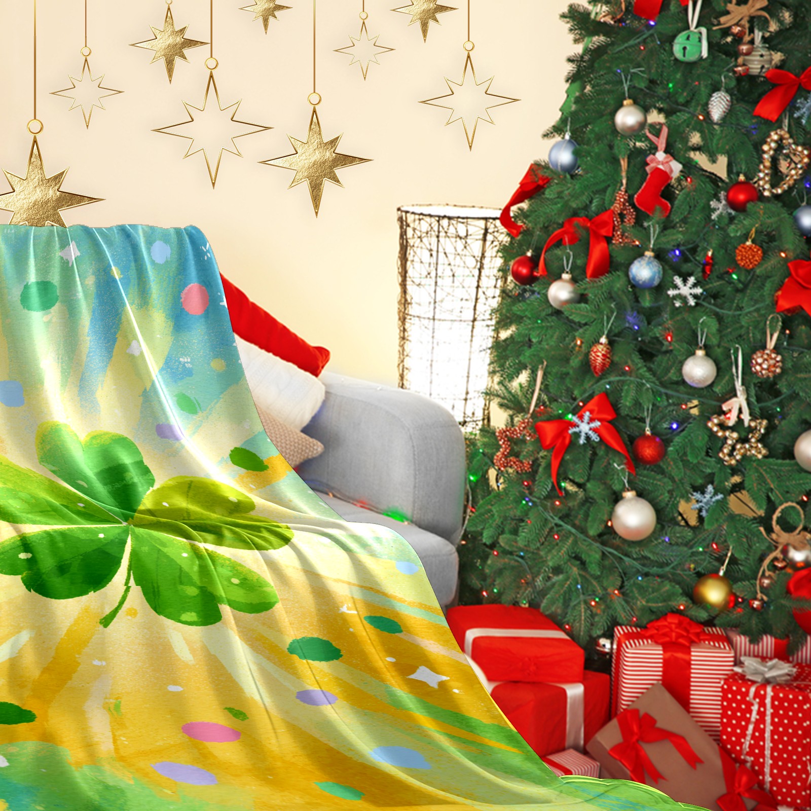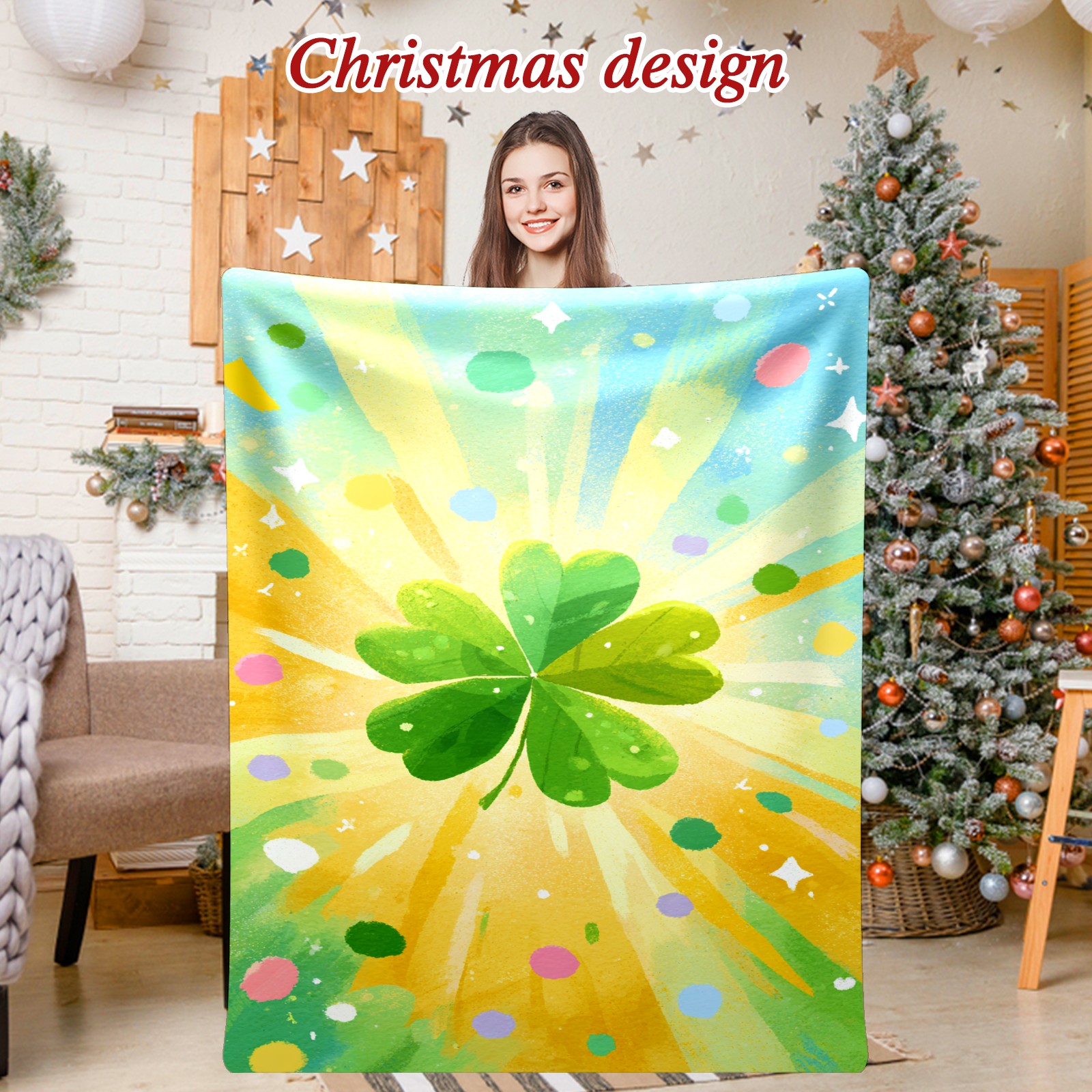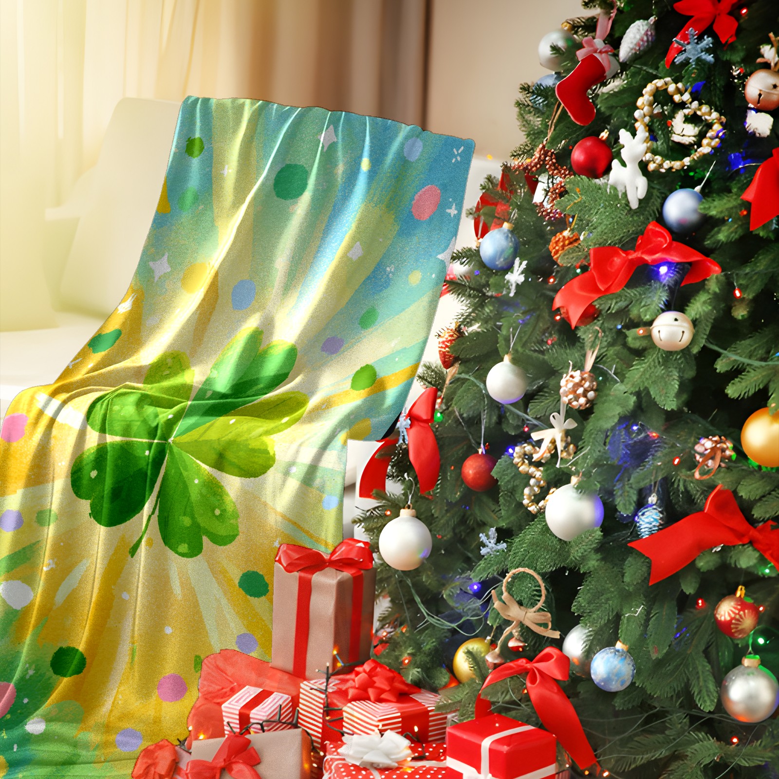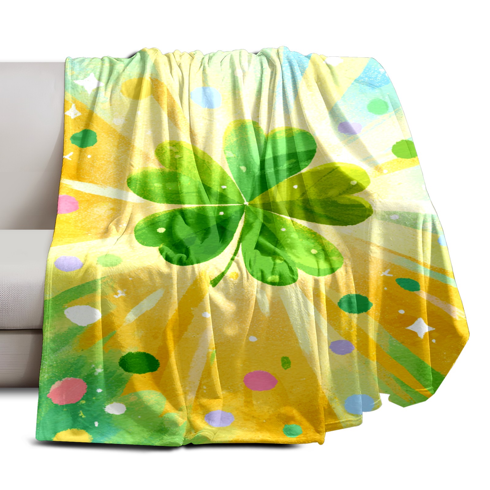 Премиальная фланелевая одеяло Lucky Clover Yellow