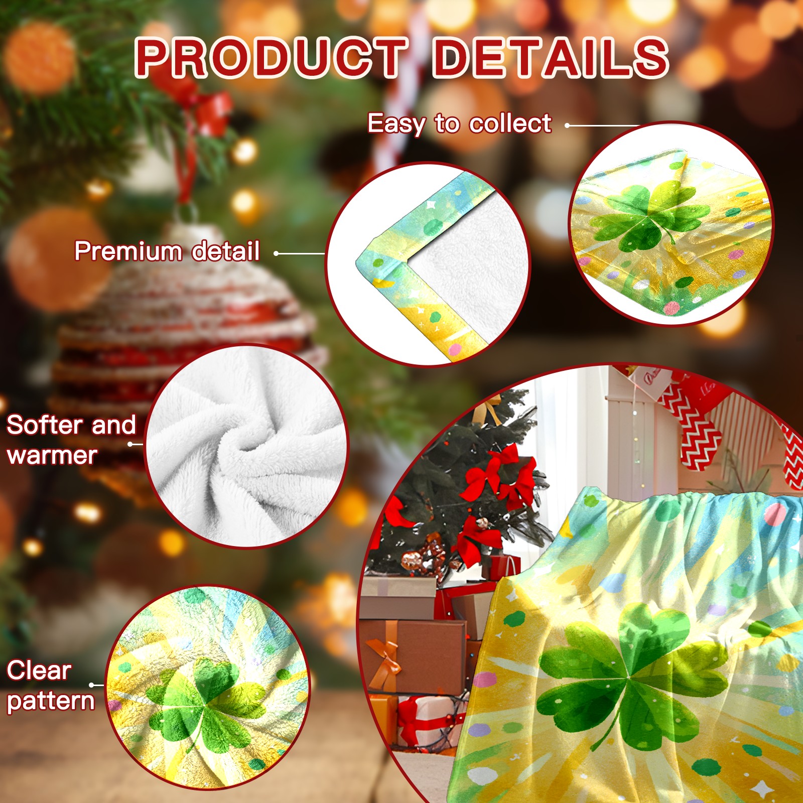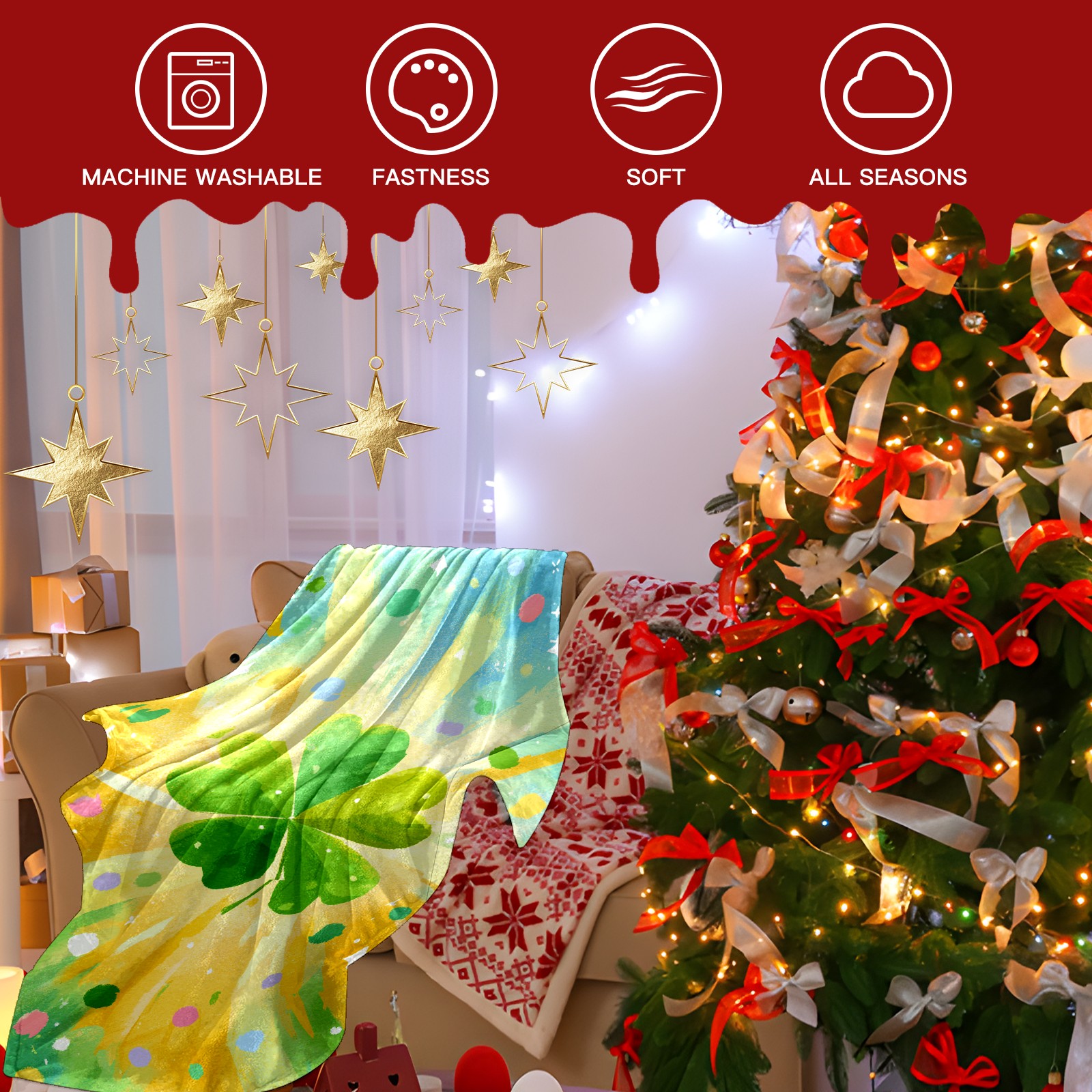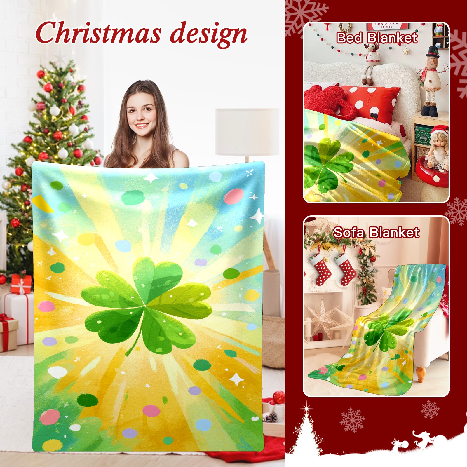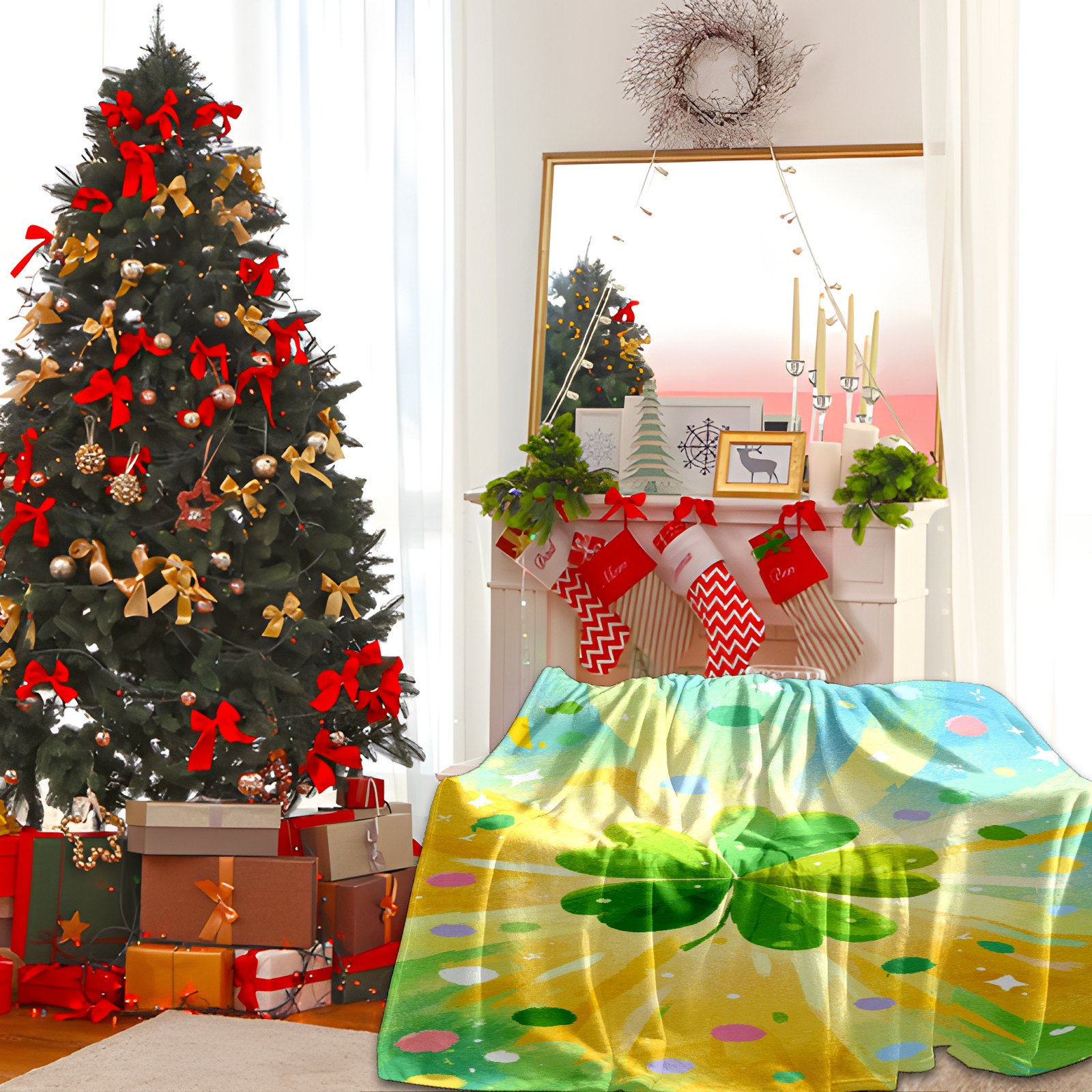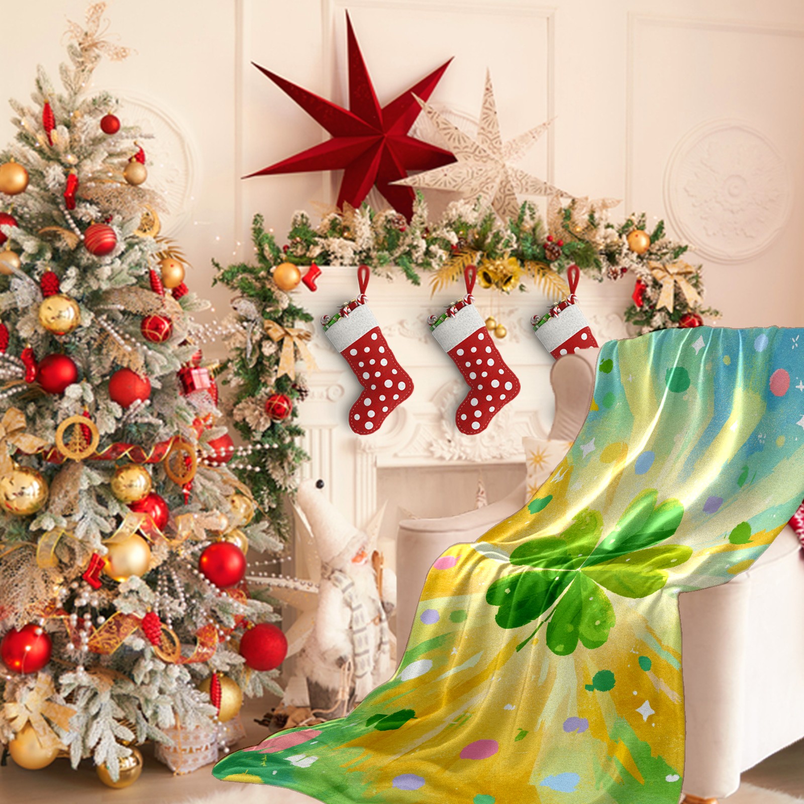 Премиальная фланелевая одеяло Lucky Clover Yellow