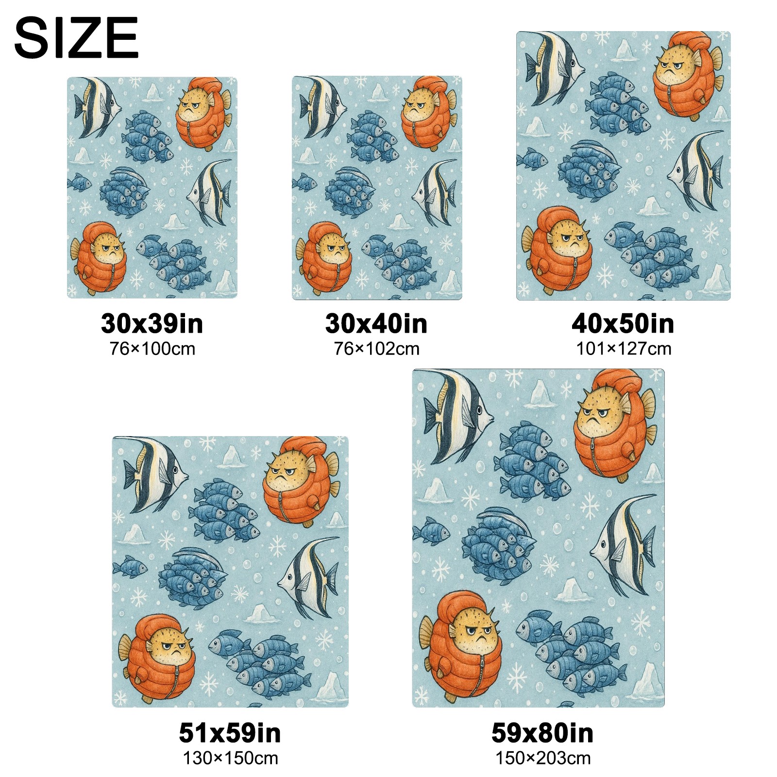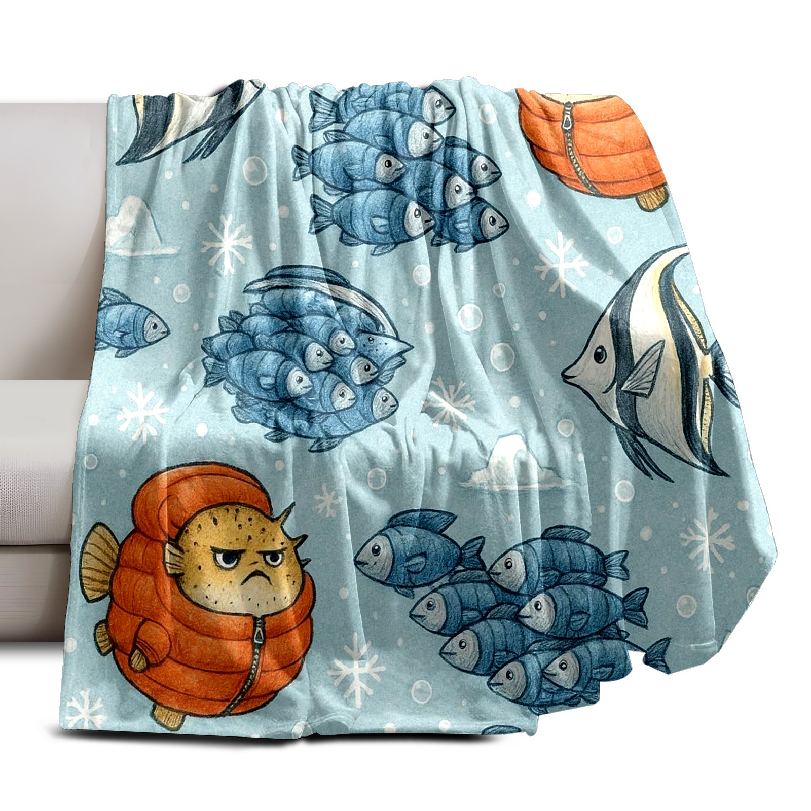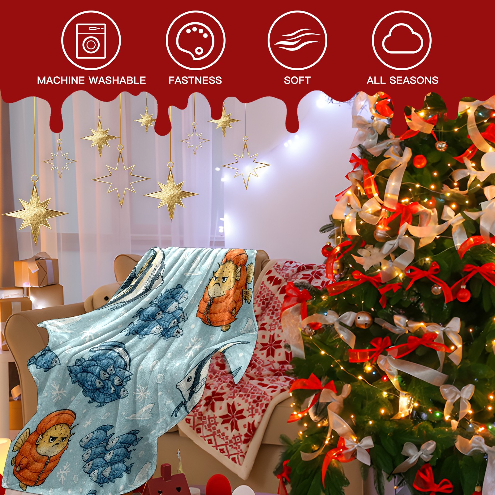 Премиальная фланелевая одеяло Cute CatFish Blue