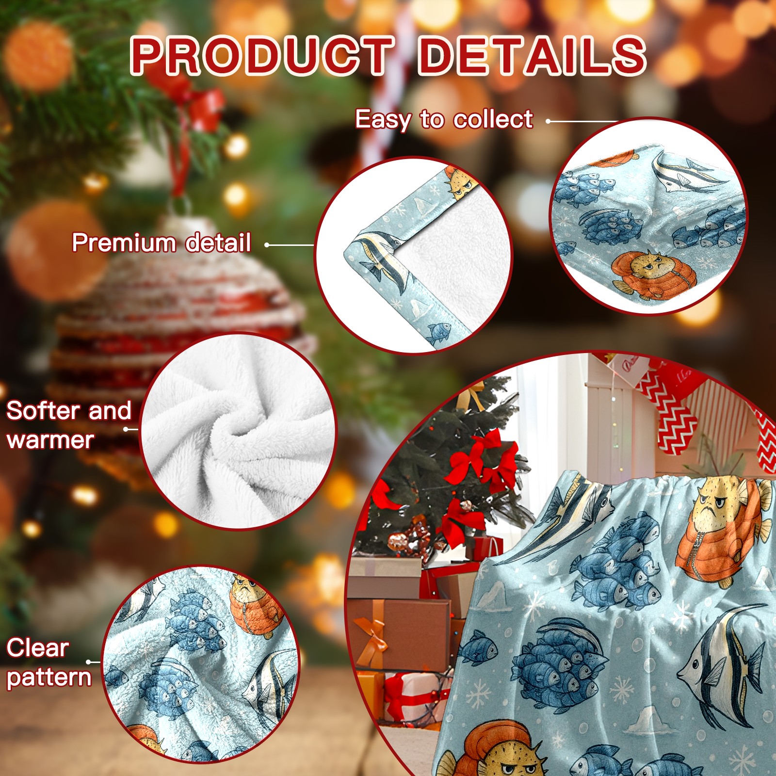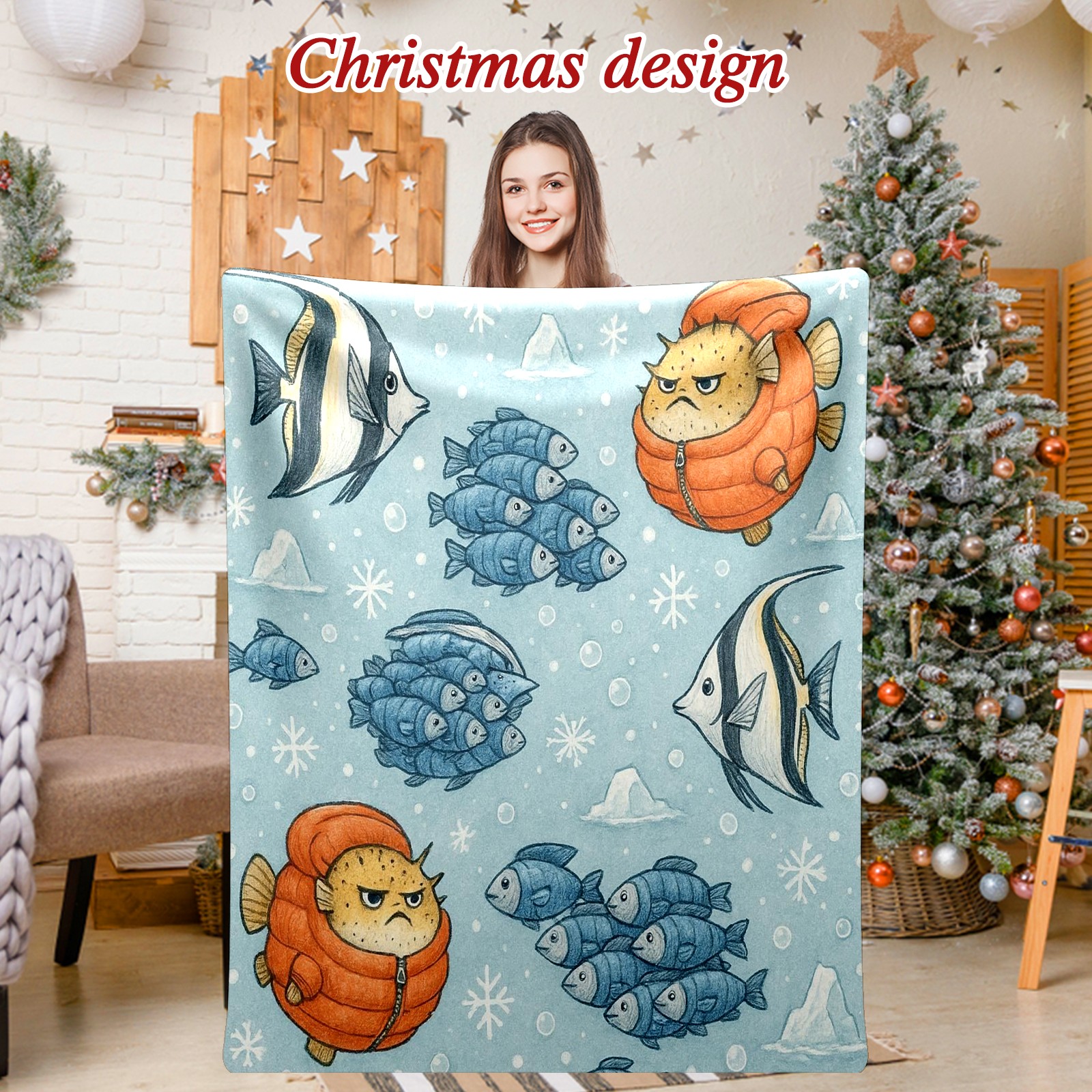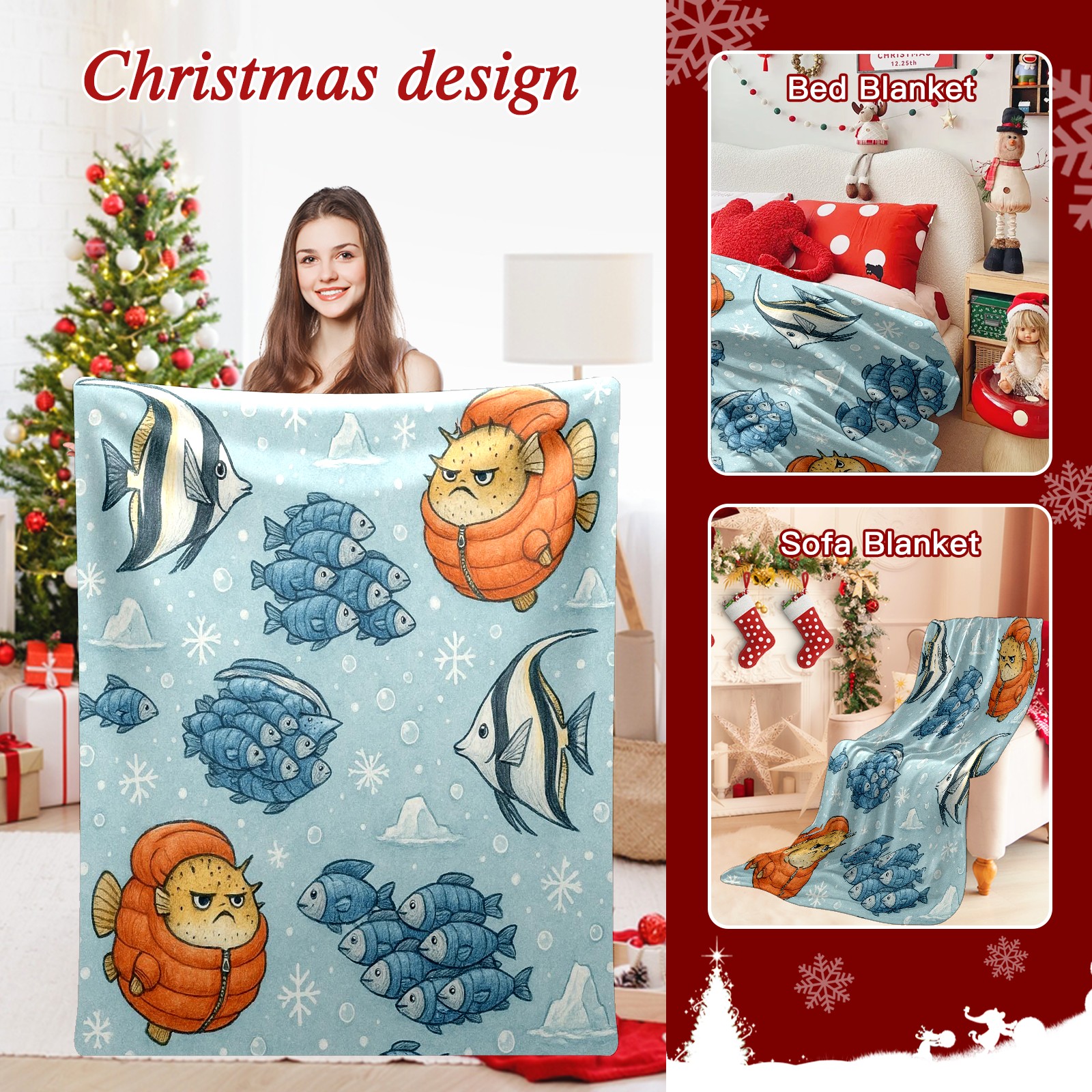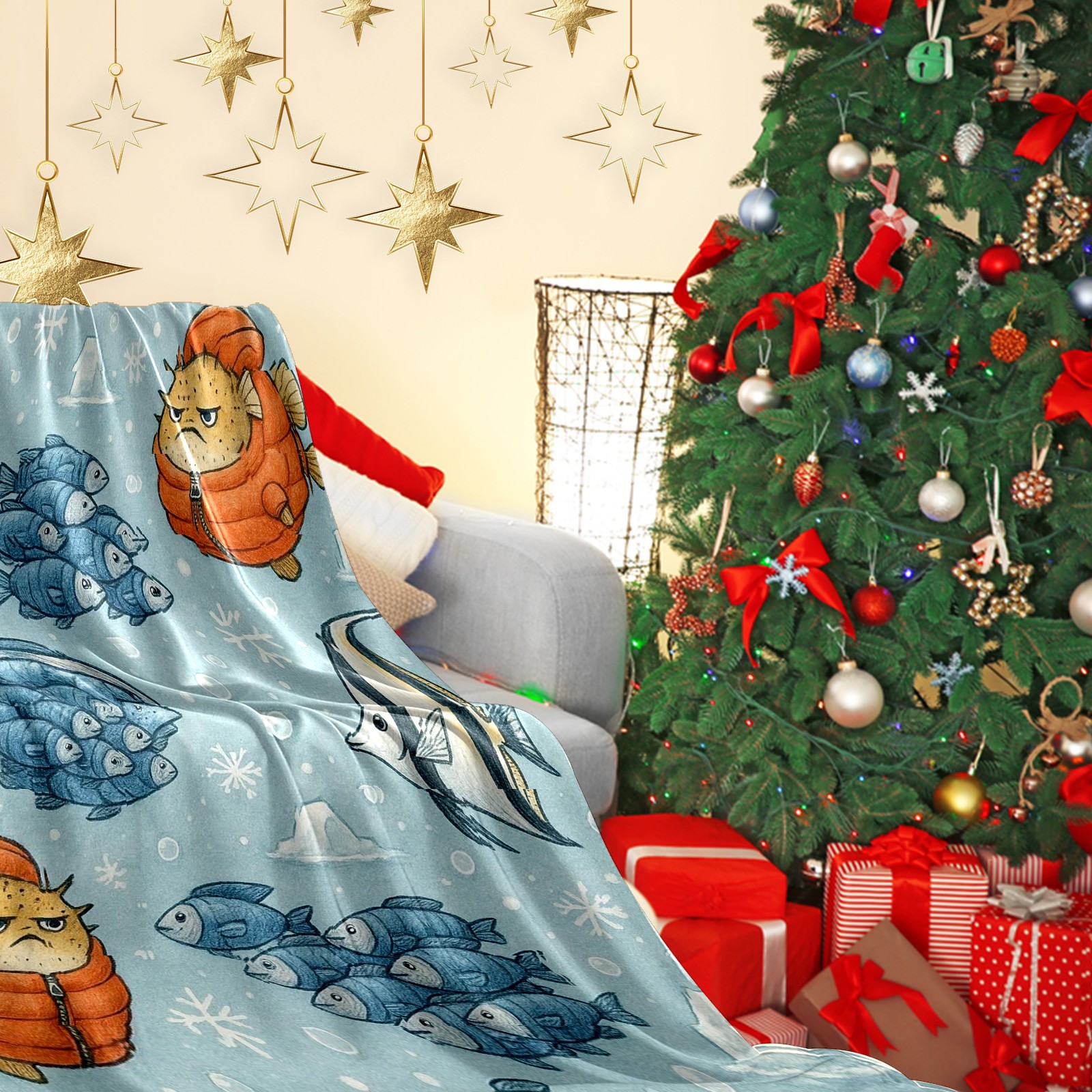 Премиальная фланелевая одеяло Cute CatFish Blue