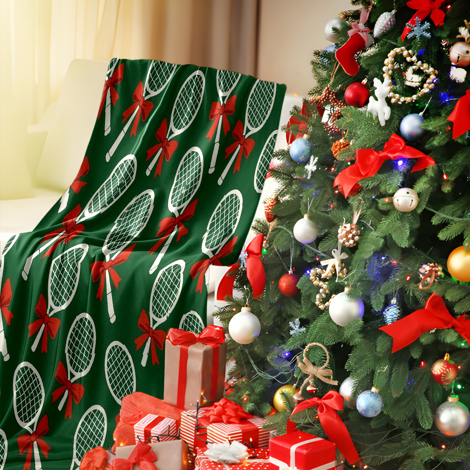 Премиальная фланелевая одеяло Tennis Dark Green