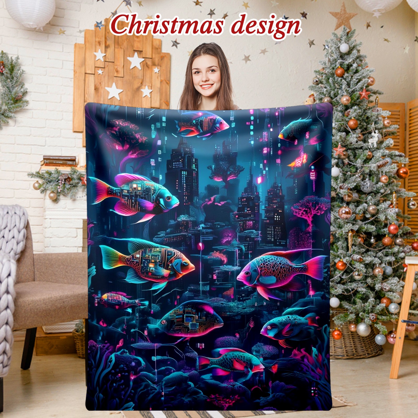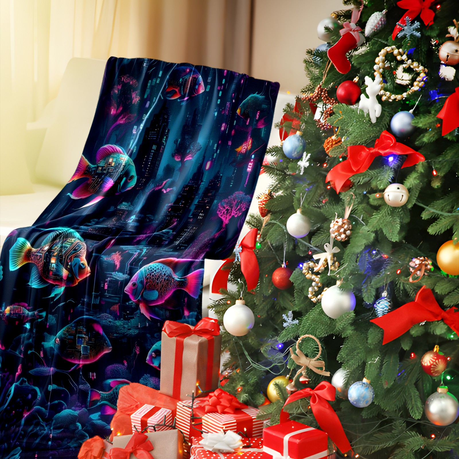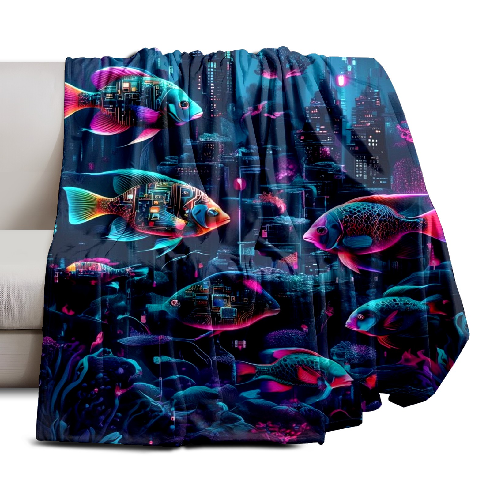 Премиальная фланелевая одеяло Mysterious Fish Purple