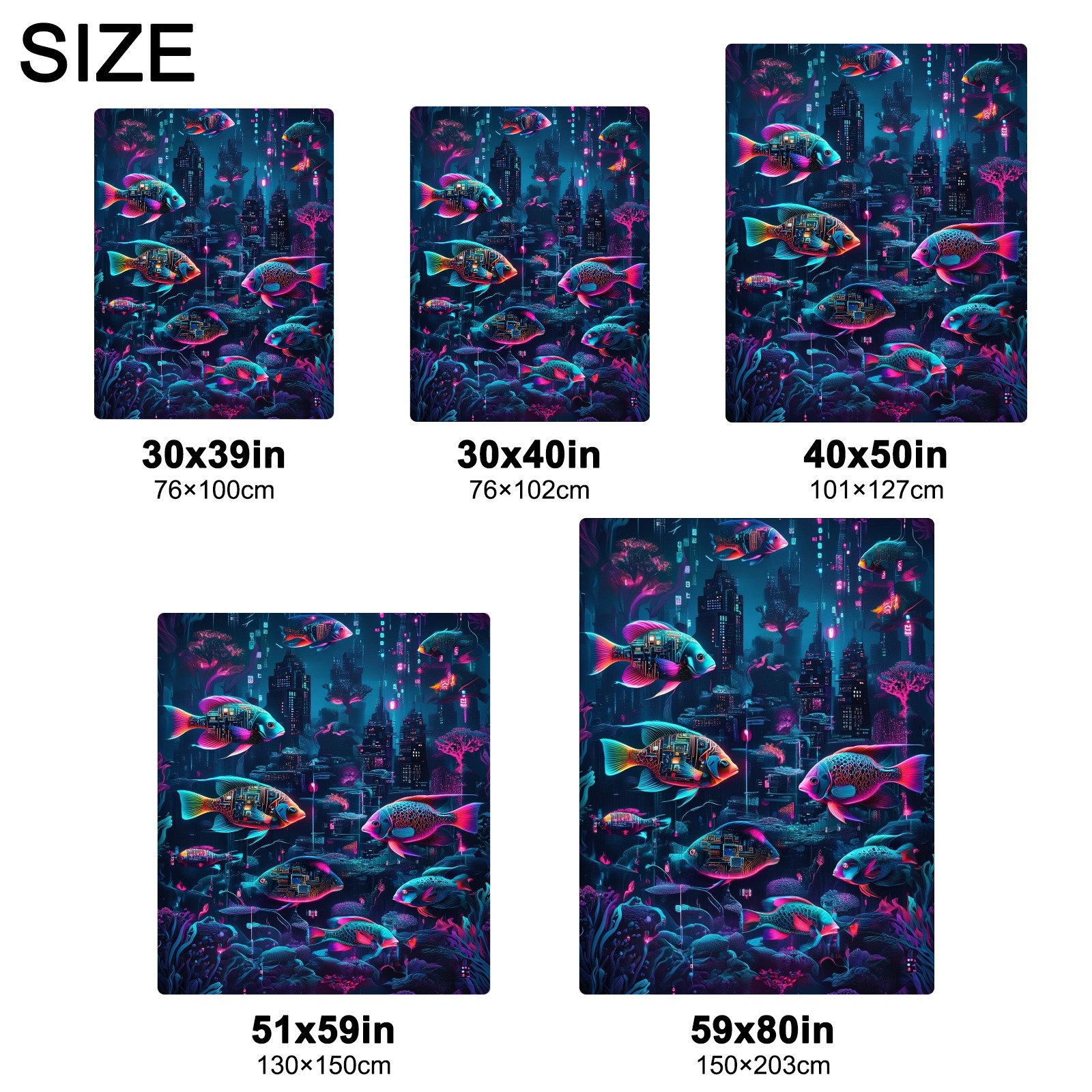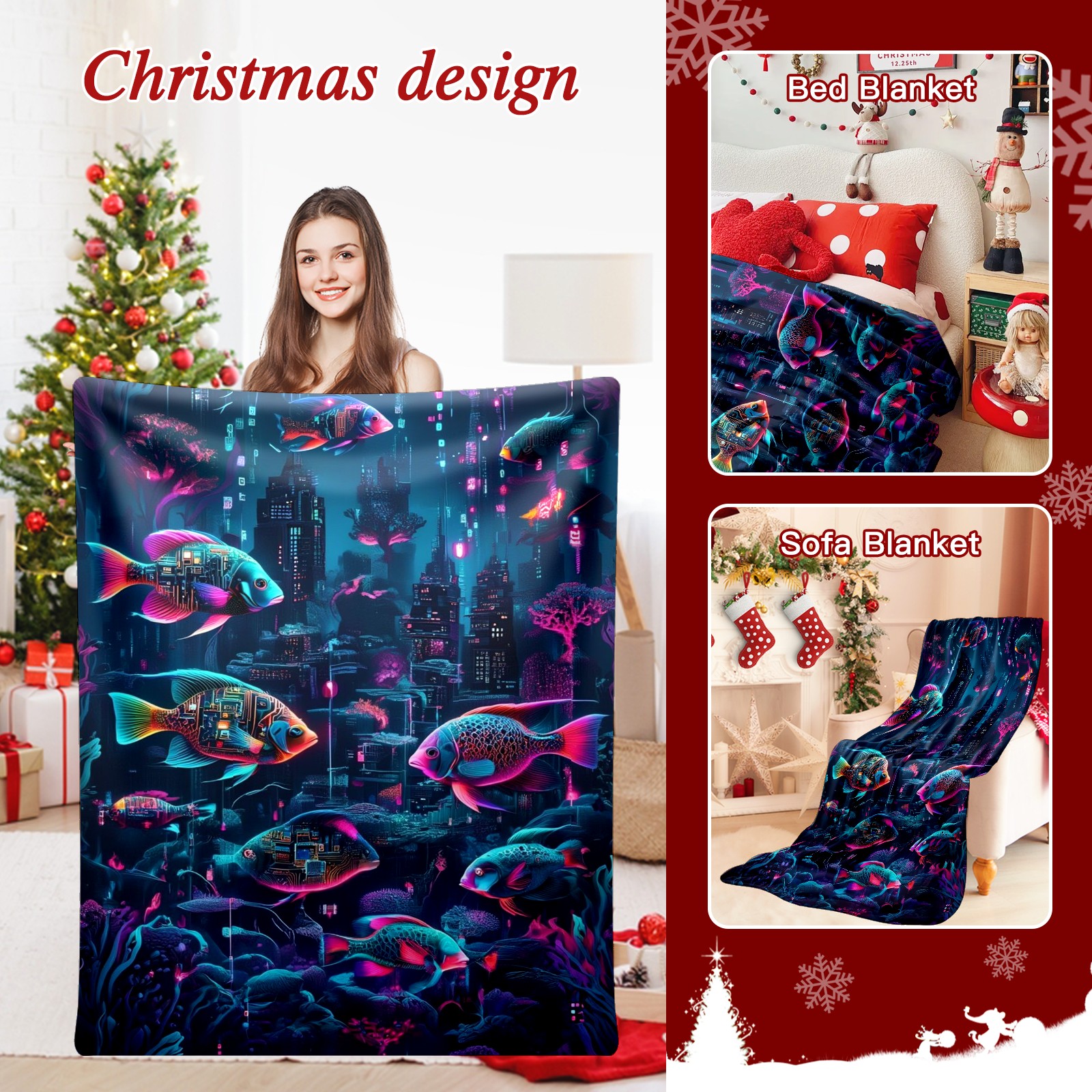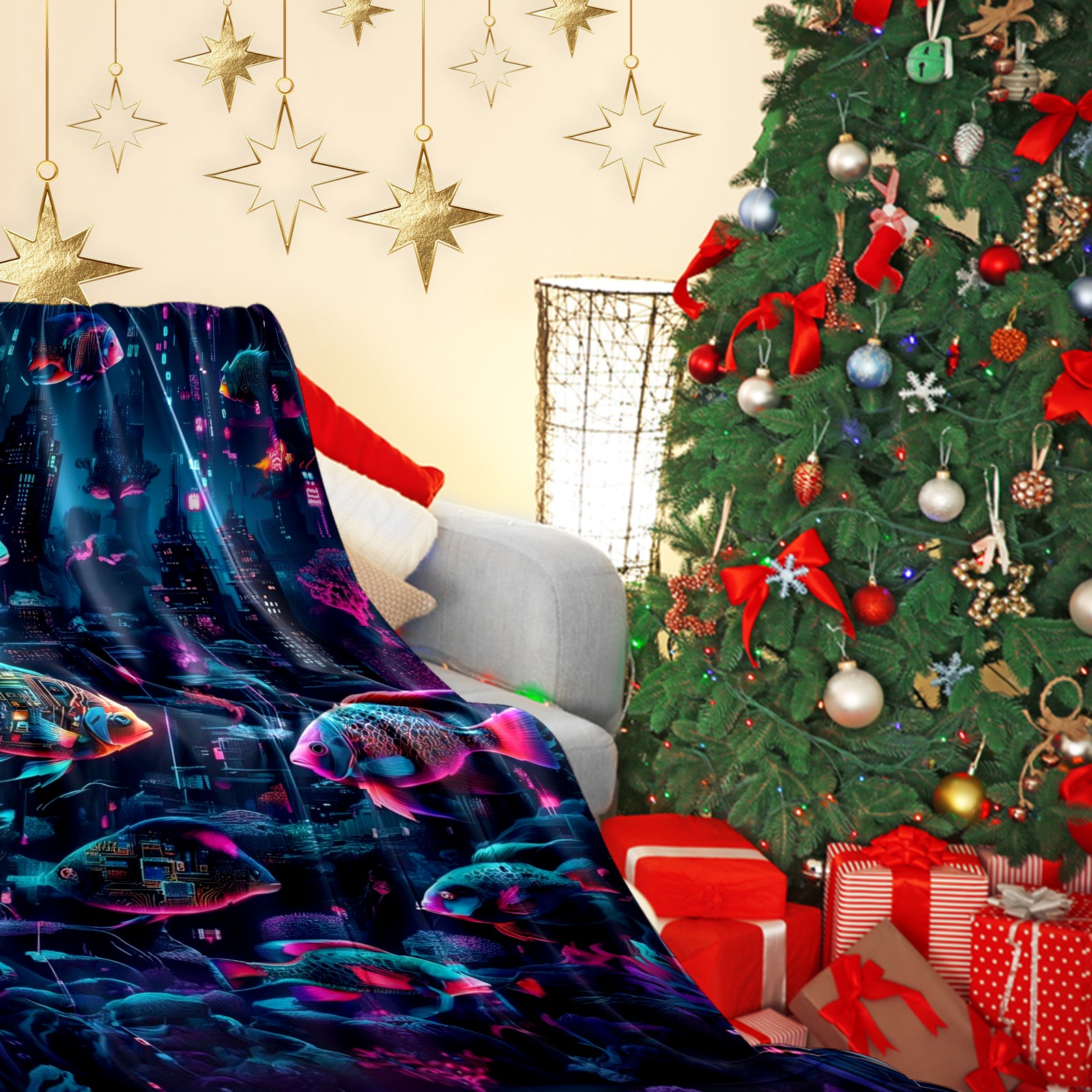 Премиальная фланелевая одеяло Mysterious Fish Purple