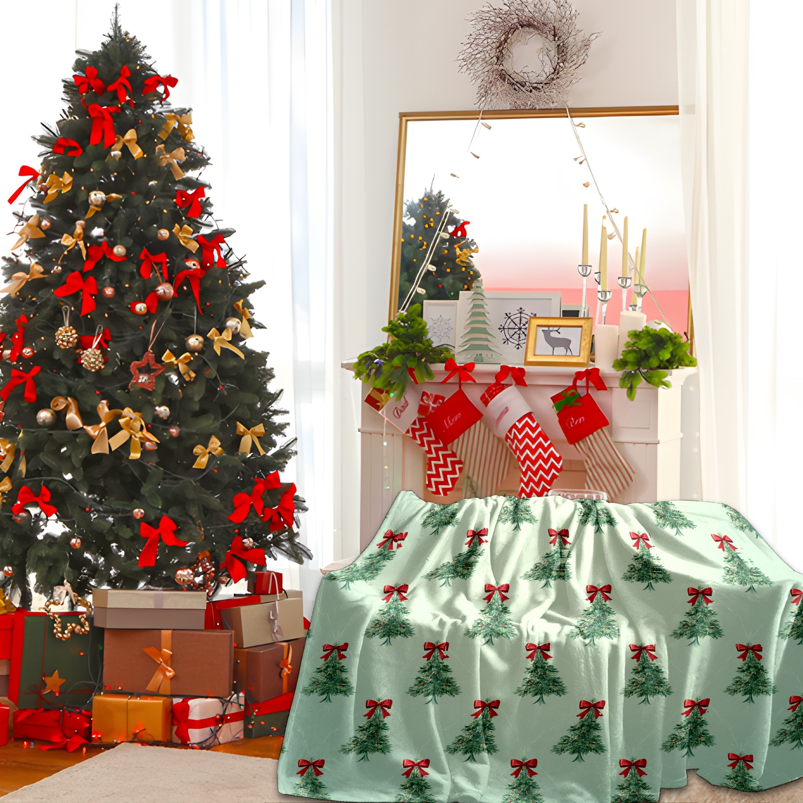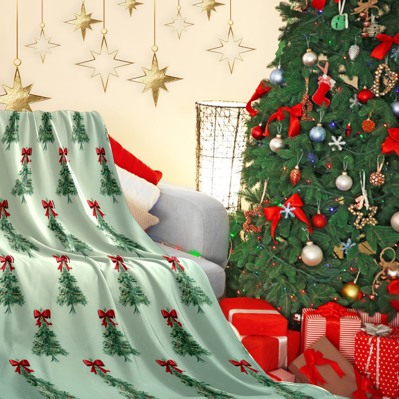 Премиальная фланелевая одеяло Tree Light Green