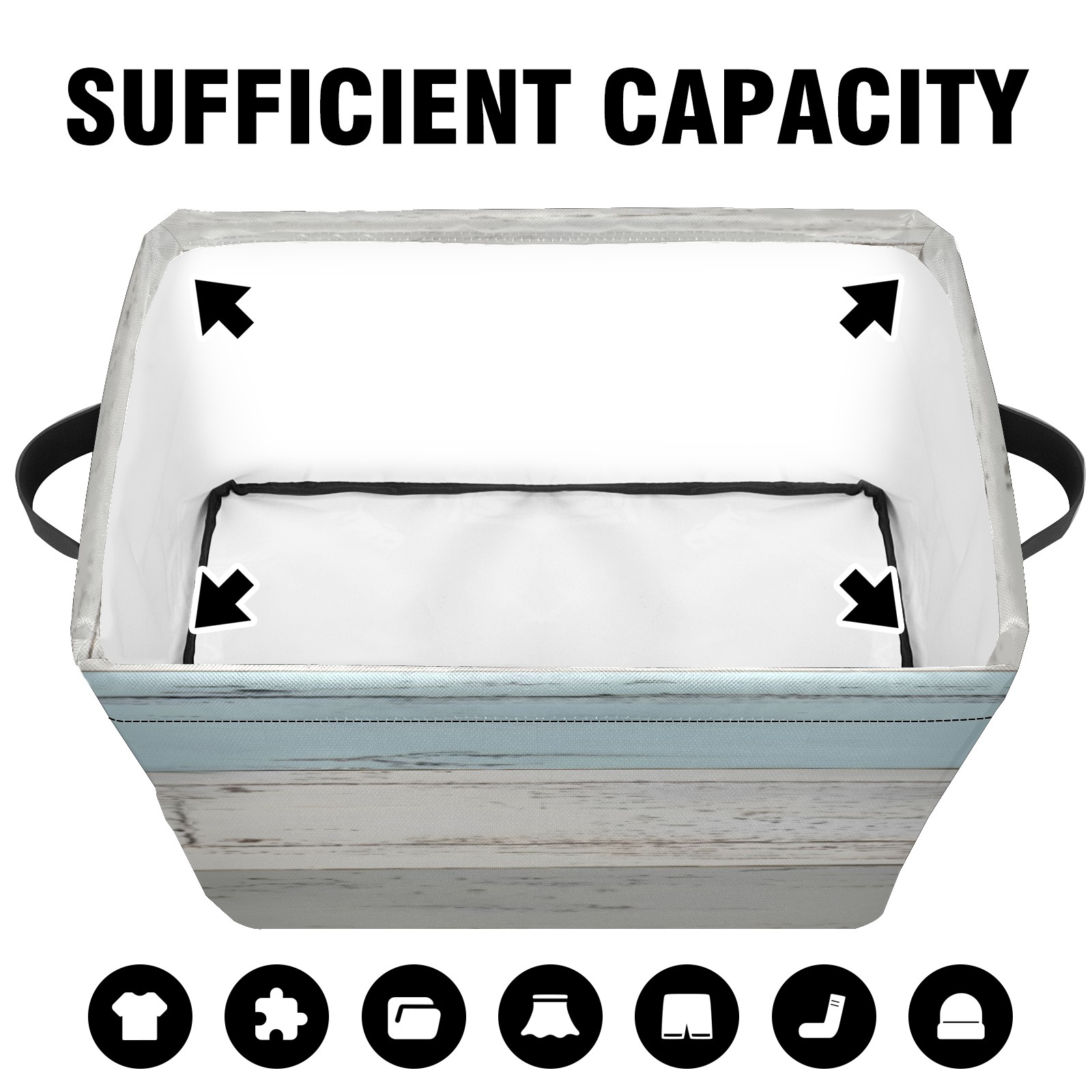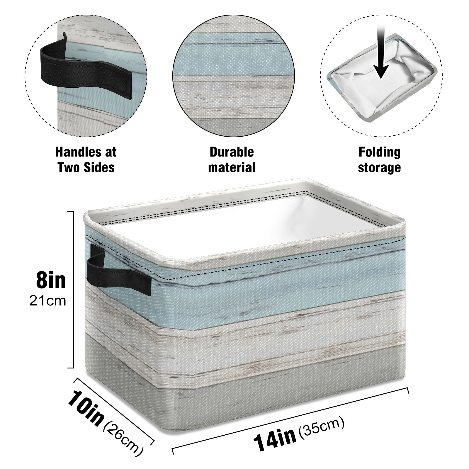 Collapsible 600D Oxford Storage Basket with 木纹图 - 副本(1) - Metal Frame 10"x14"x8" Reinforced Handles, Multi-Purpose Organizer