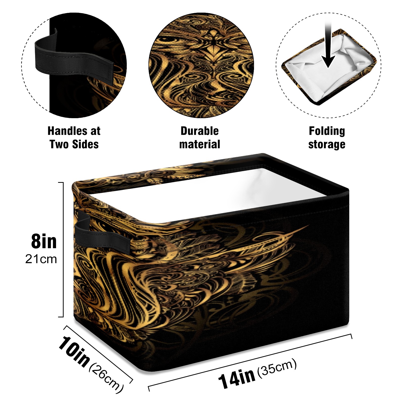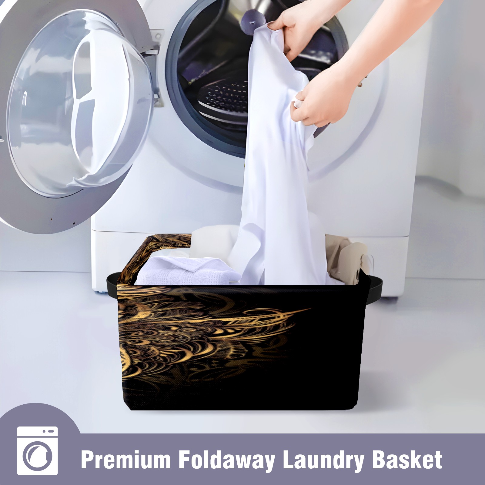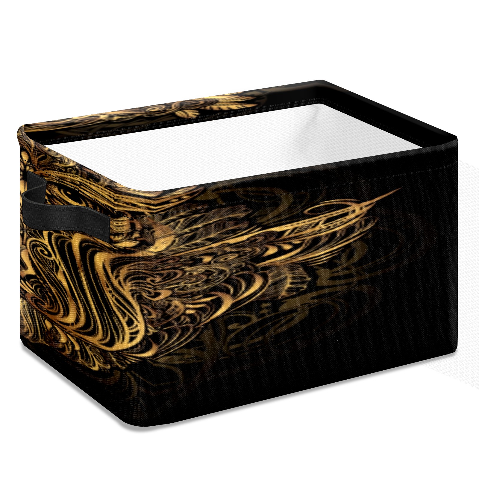 Collapsible 600D Oxford Storage Basket with Ornate Spiritual Owl - Metal Frame 10"x14"x8" Reinforced Handles, Multi-Purpose Organizer