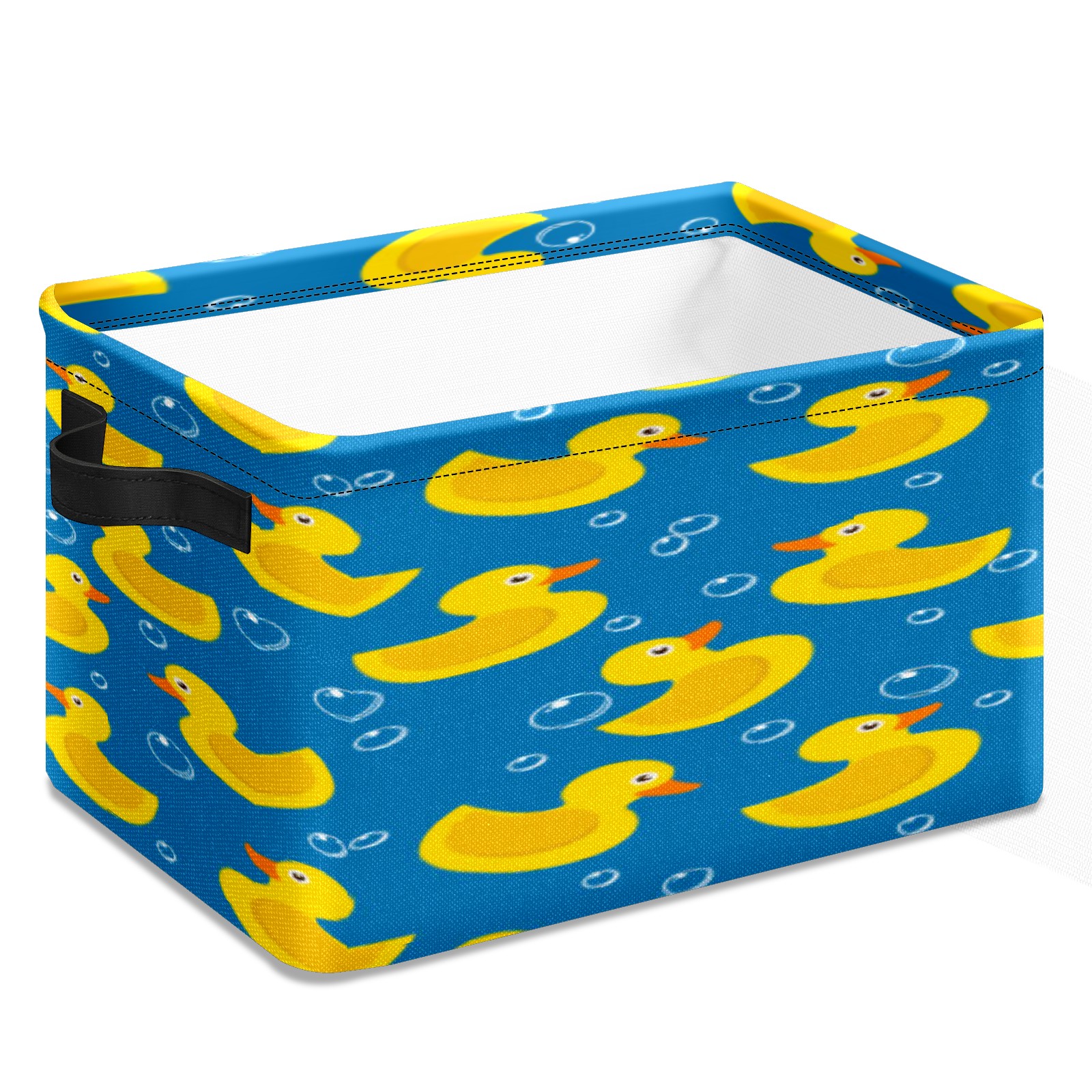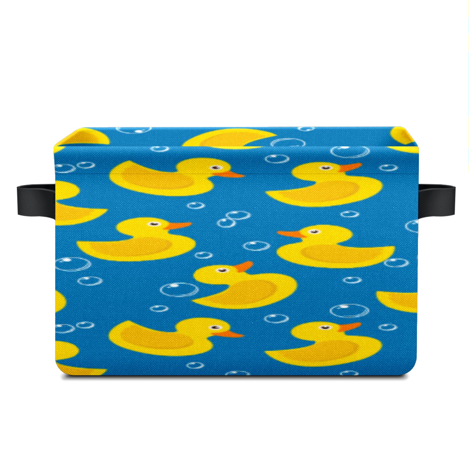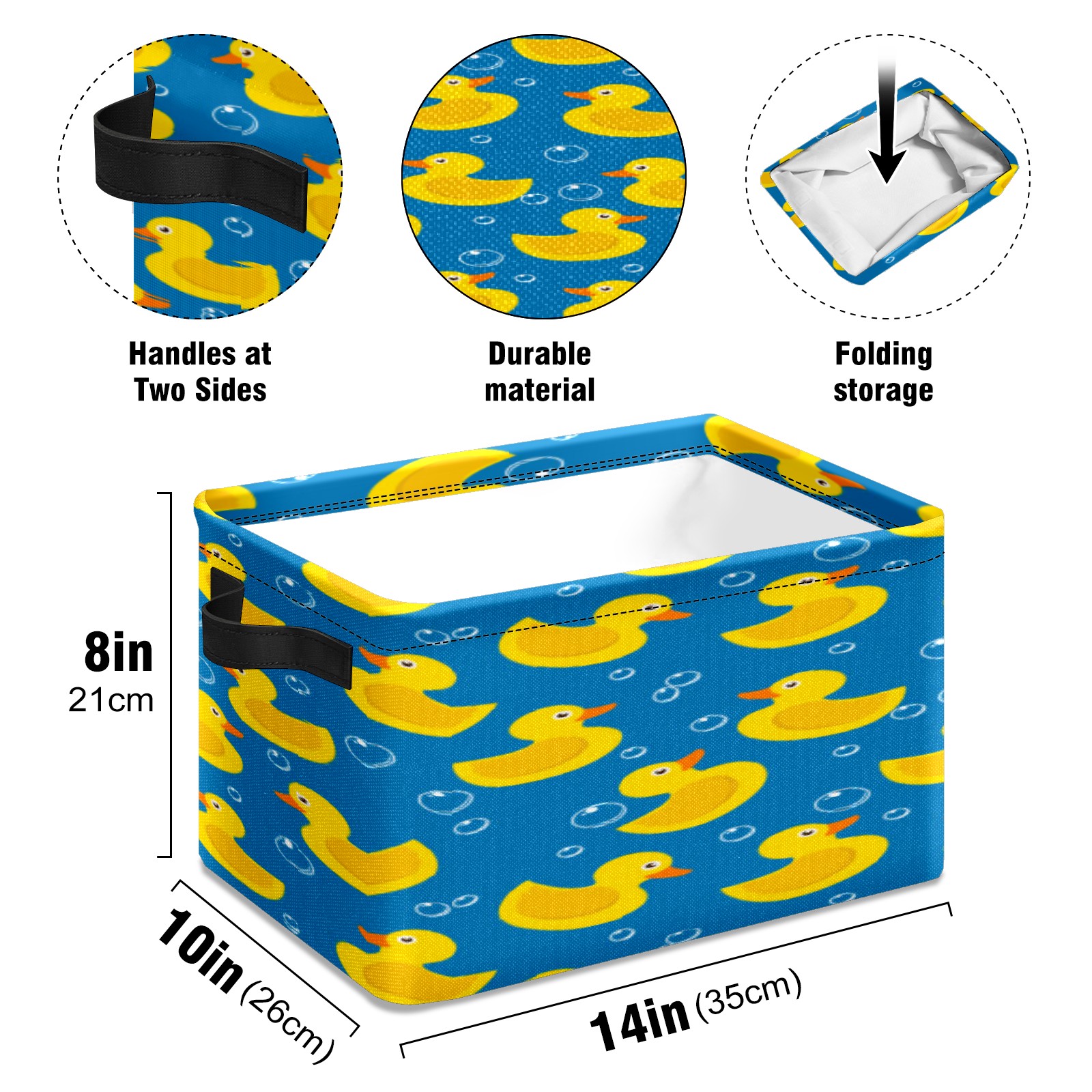 Collapsible 600D Oxford Storage Basket with Yellow Rubber Duck Blue Bubble - Metal Frame 10"x14"x8" Reinforced Handles, Multi-Purpose Organizer