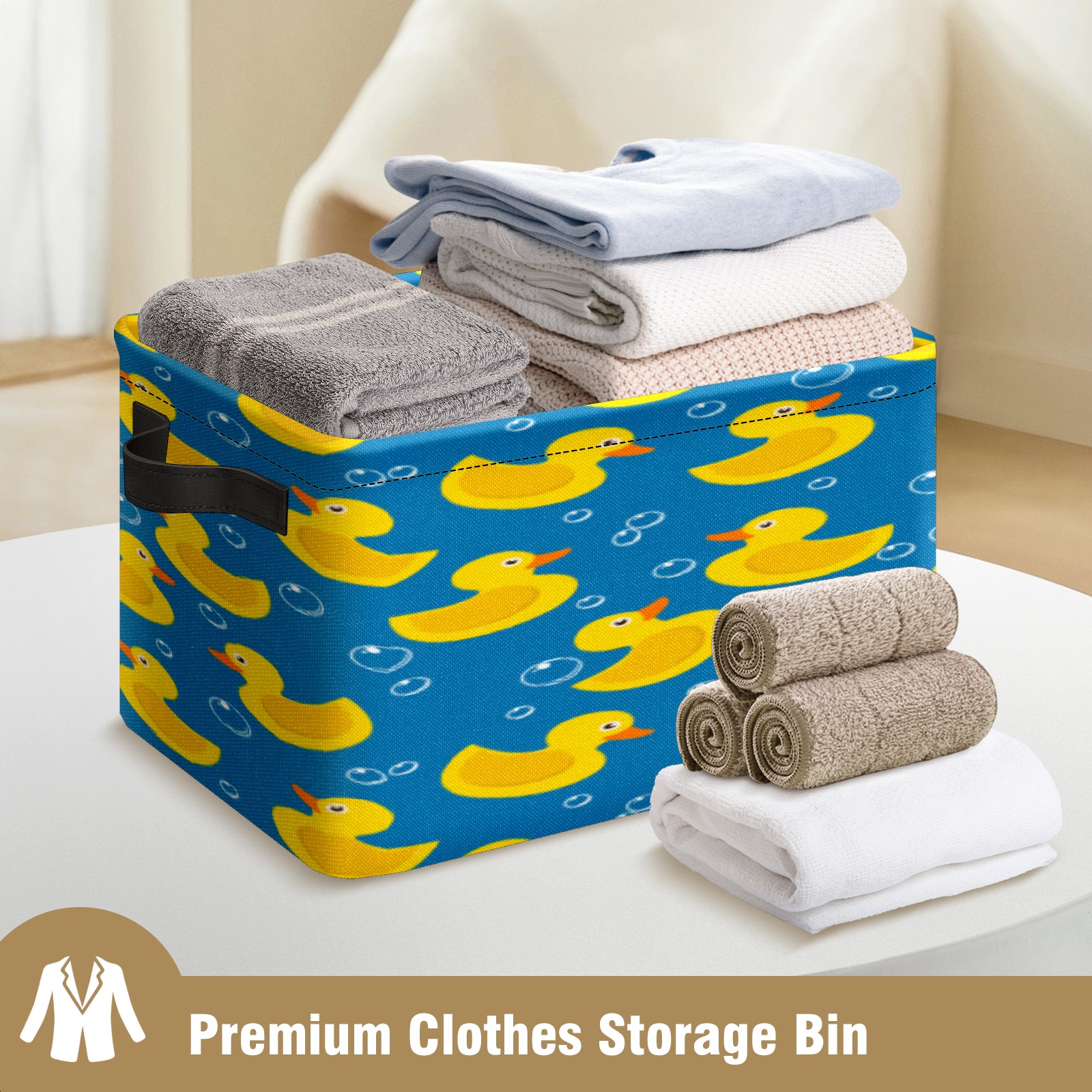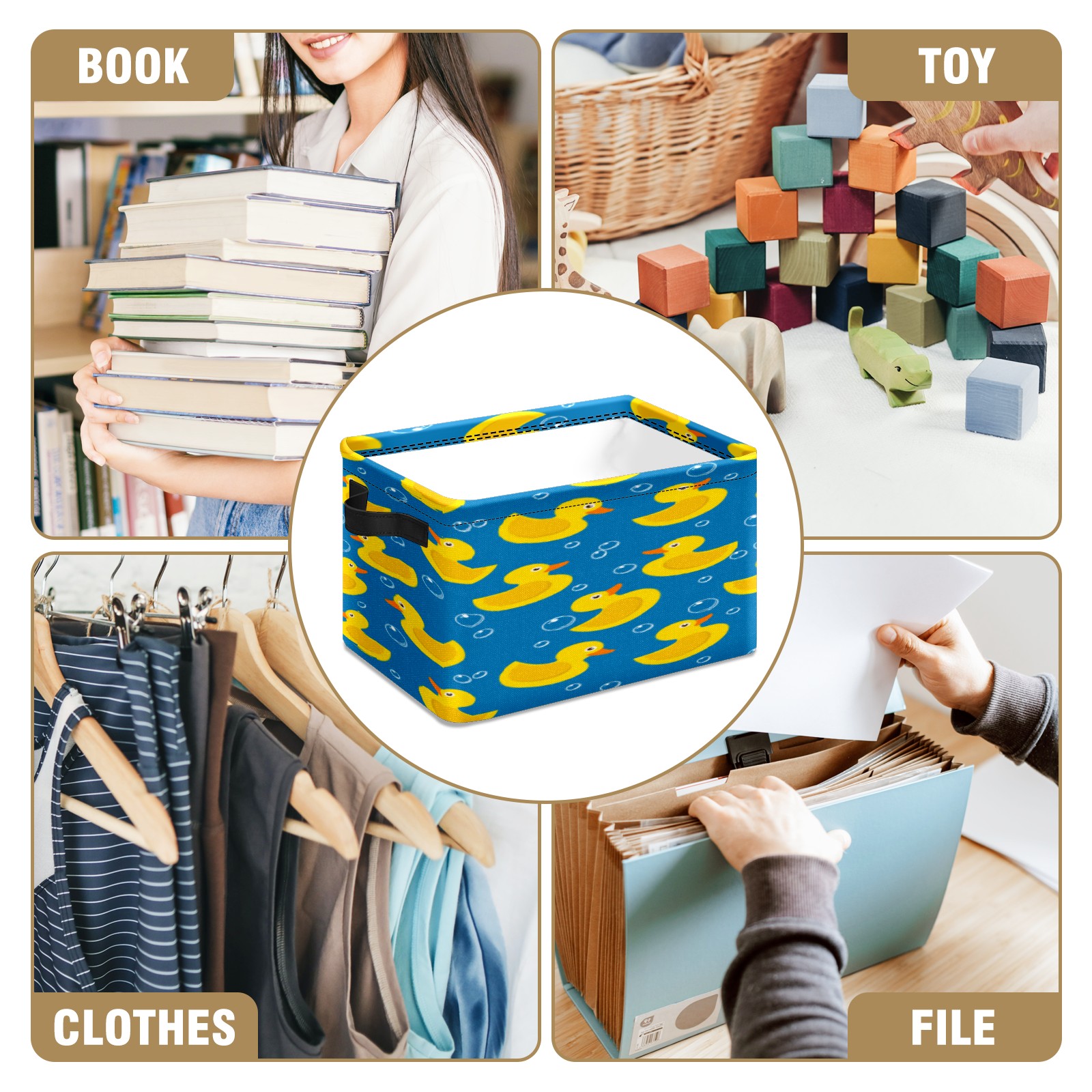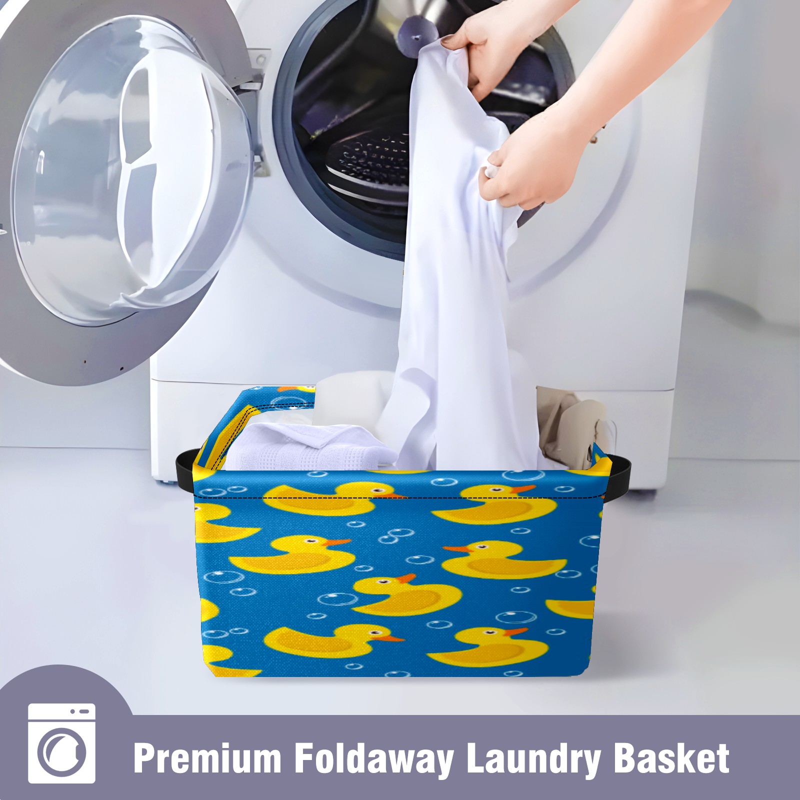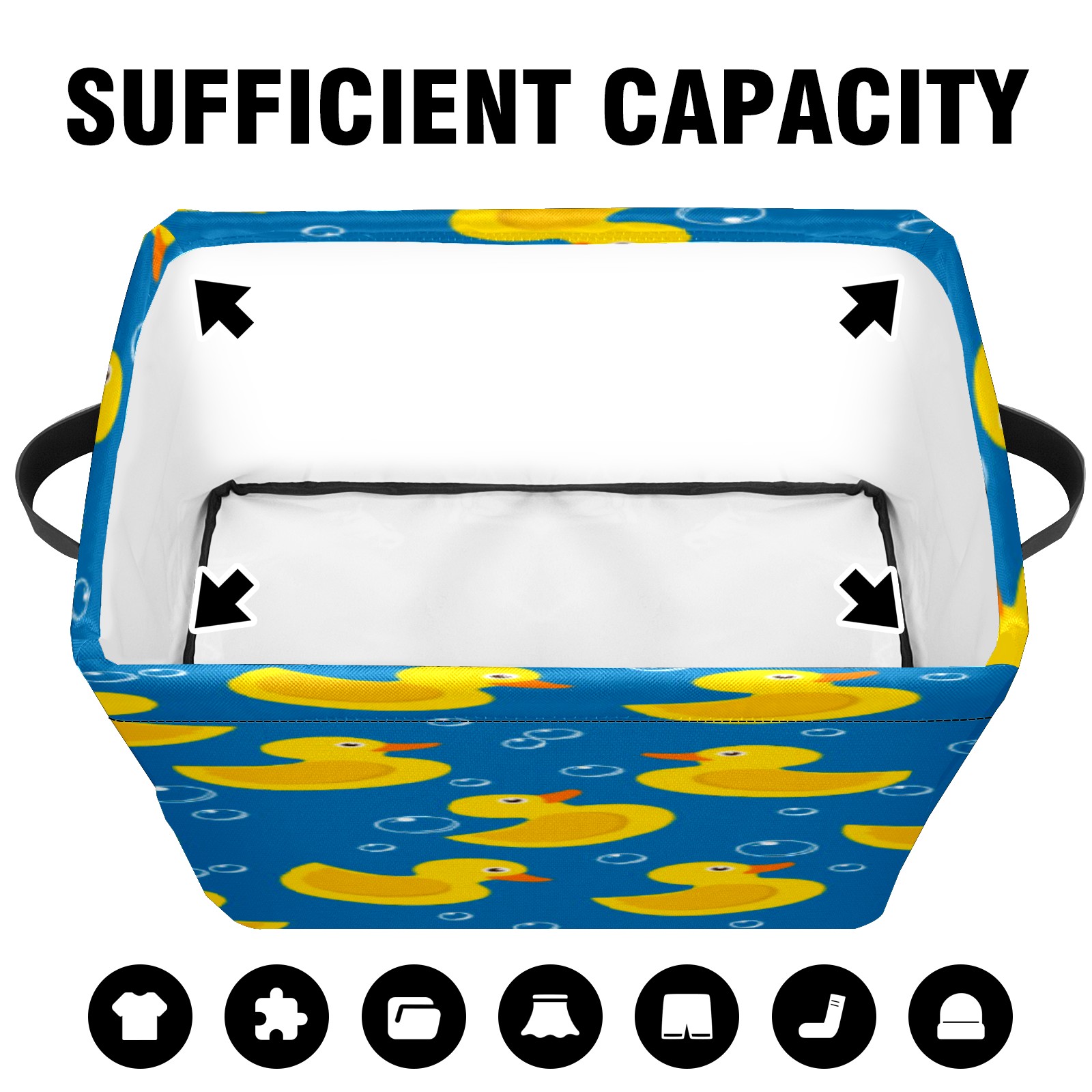 Collapsible 600D Oxford Storage Basket with Yellow Rubber Duck Blue Bubble - Metal Frame 10"x14"x8" Reinforced Handles, Multi-Purpose Organizer