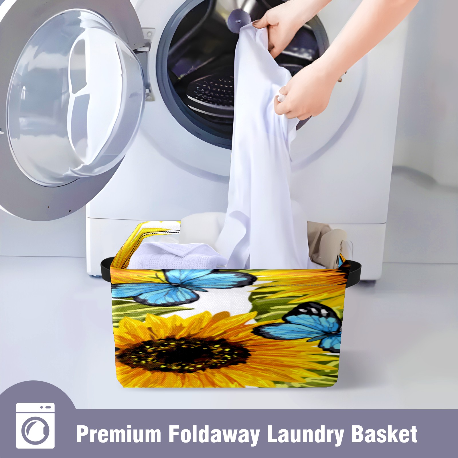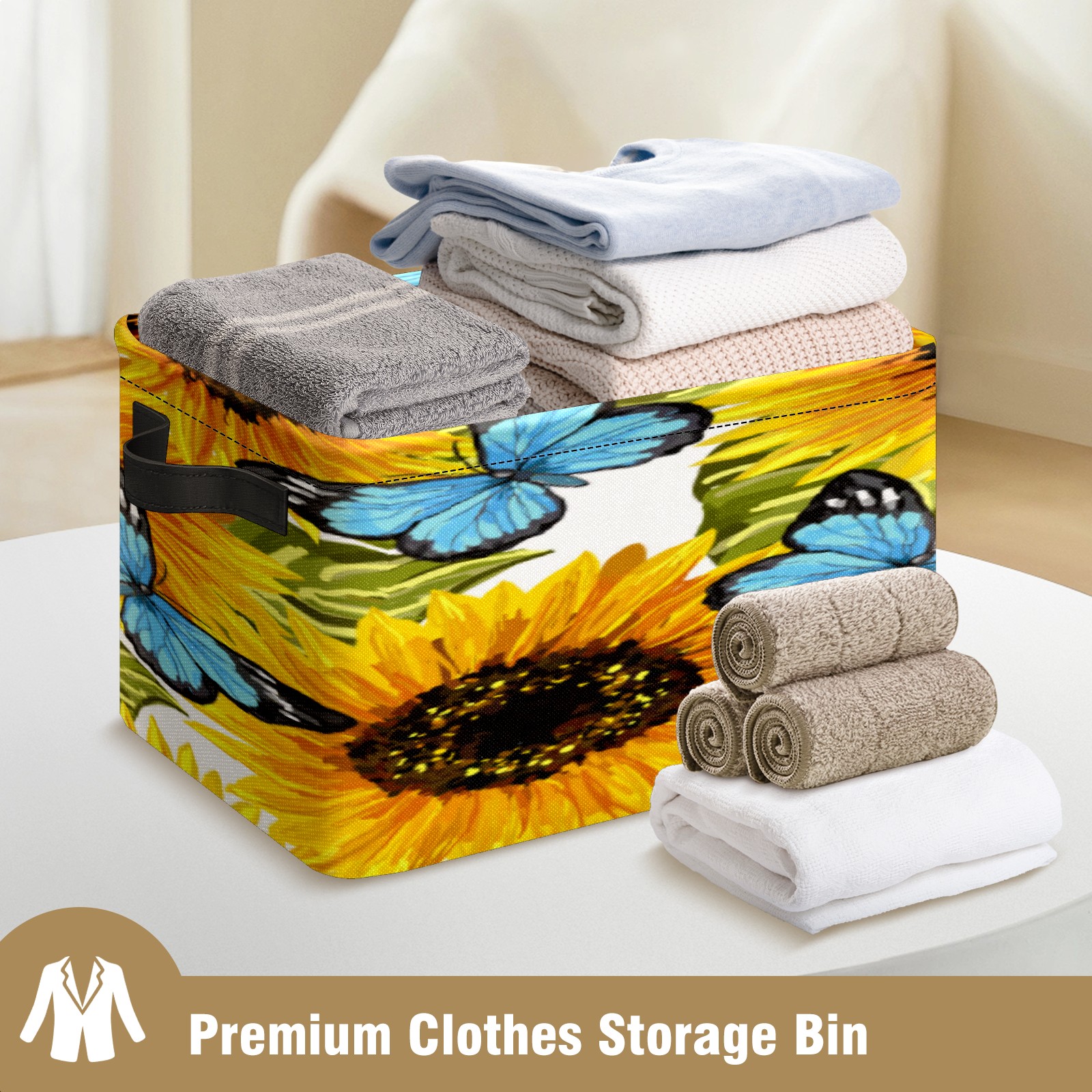 Collapsible 600D Oxford Storage Basket with Sunflower Butterfly Oil Painting - Metal Frame 10"x14"x8" Reinforced Handles, Multi-Purpose Organizer