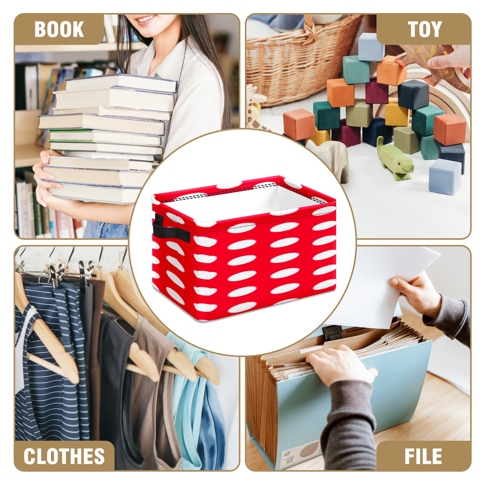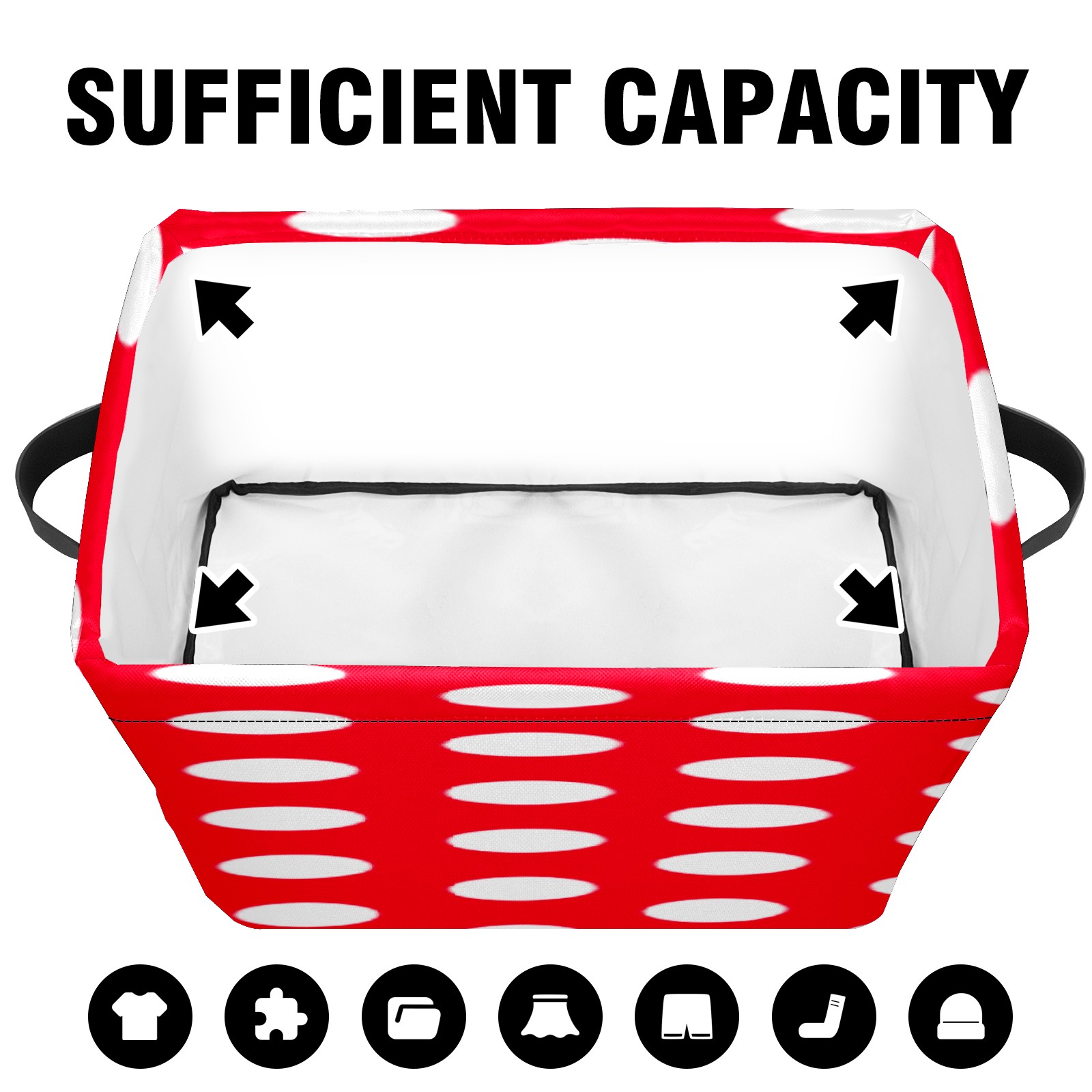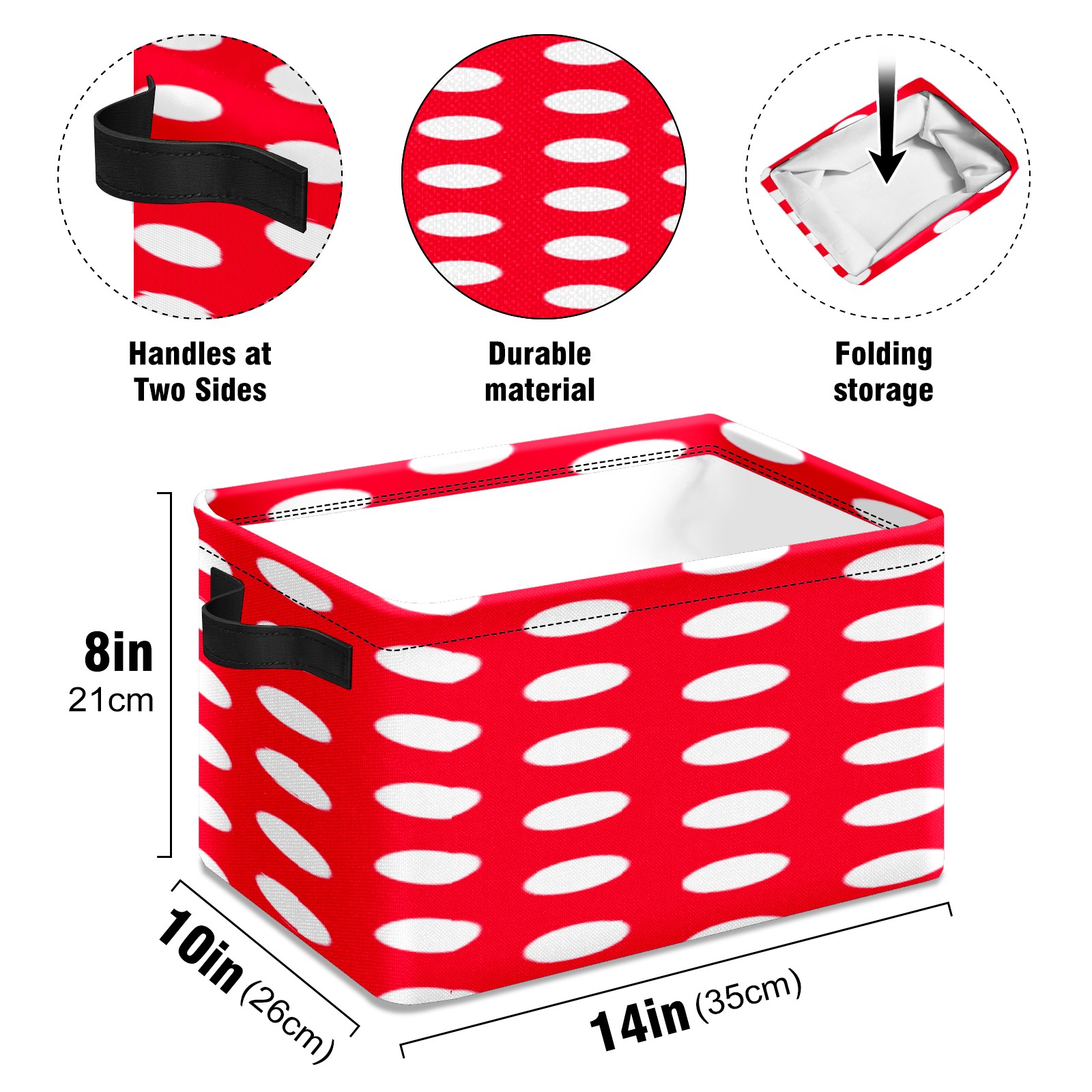 Collapsible 600D Oxford Storage Basket with Modern Red White Polka Dot - Metal Frame 10"x14"x8" Reinforced Handles, Multi-Purpose Organizer