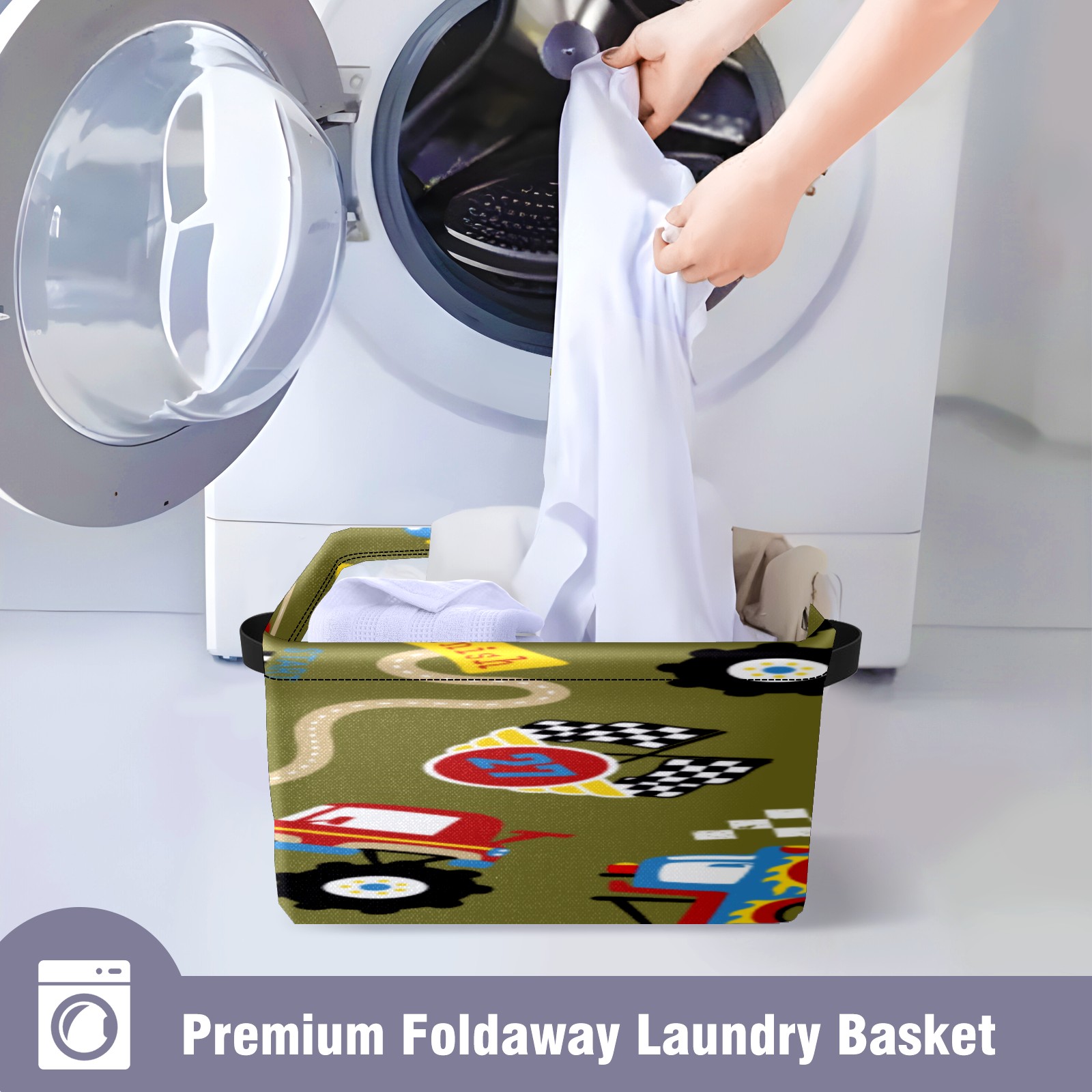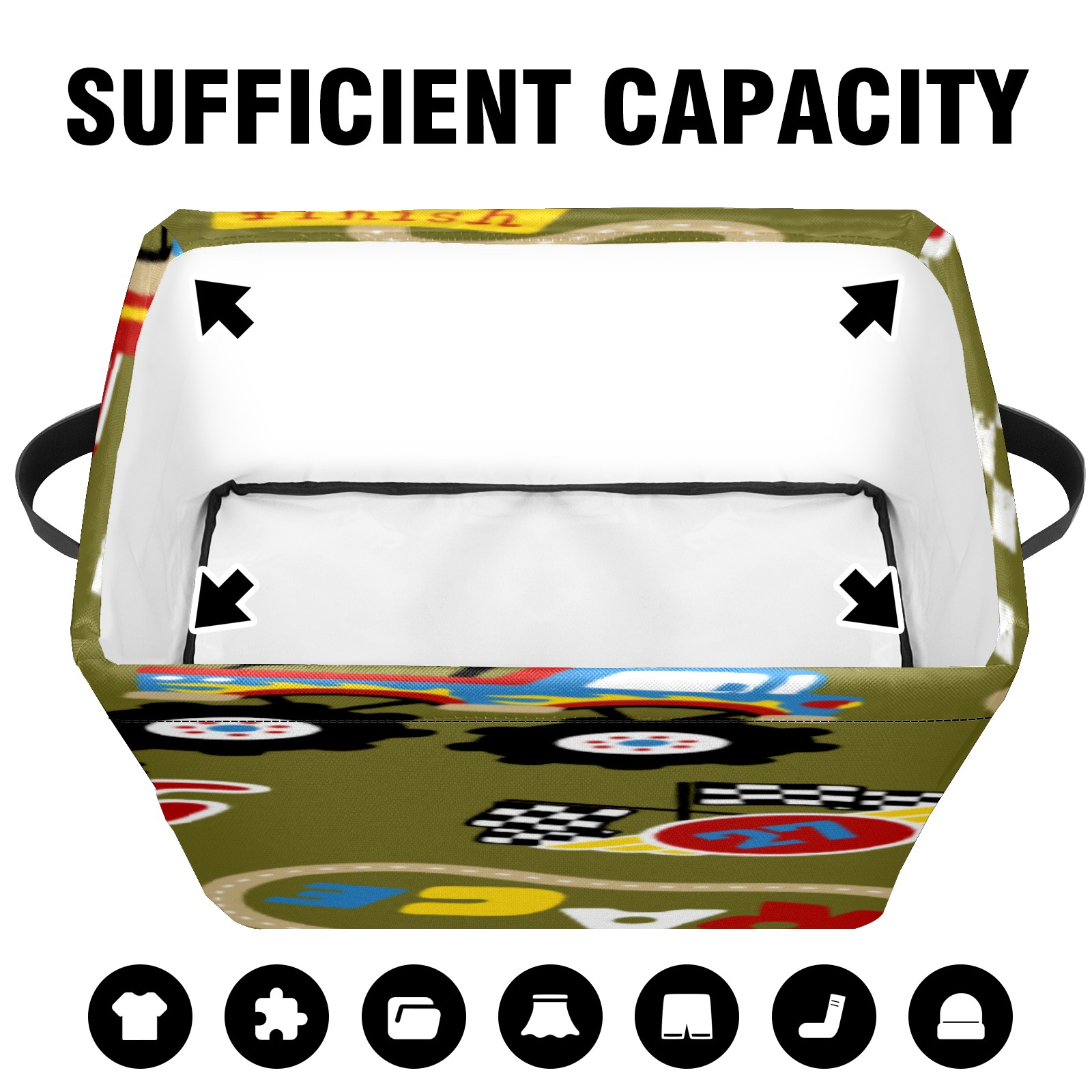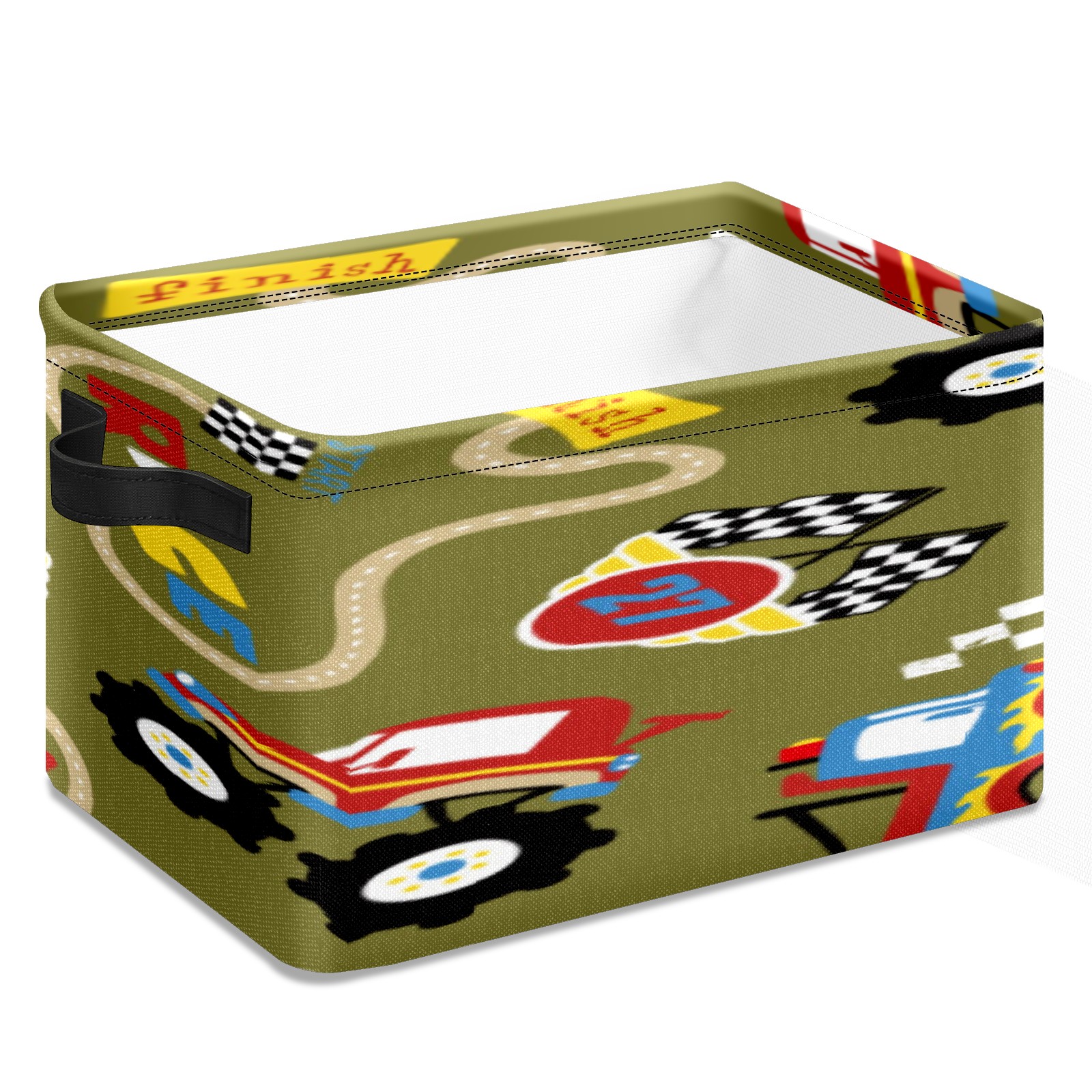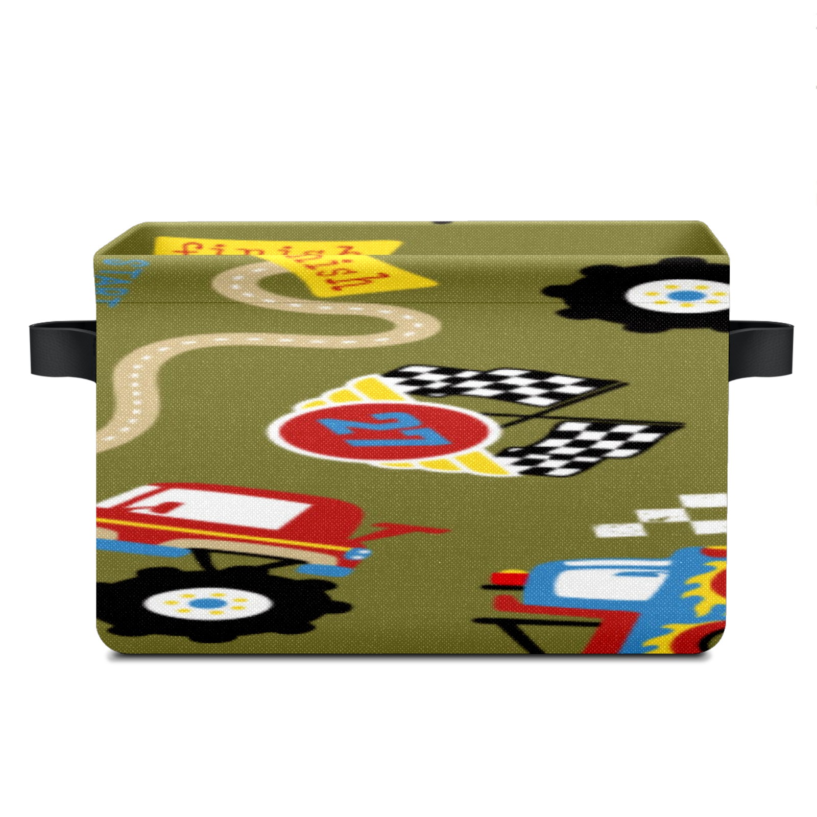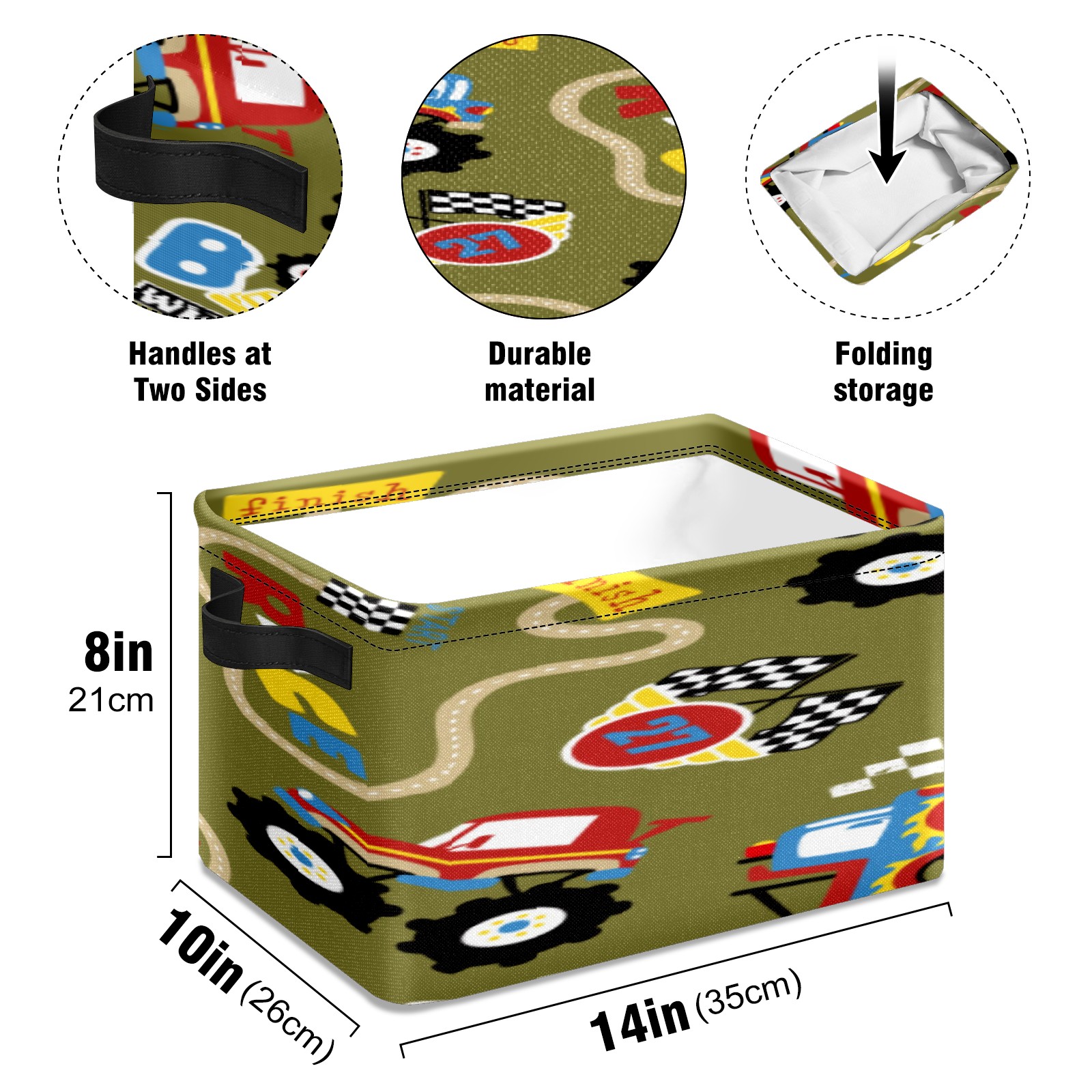 Collapsible 600D Oxford Storage Basket with Vintage Retro Cartoon Monster Trucks Pattern - Metal Frame 10"x14"x8" Reinforced Handles, Multi-Purpose Organizer