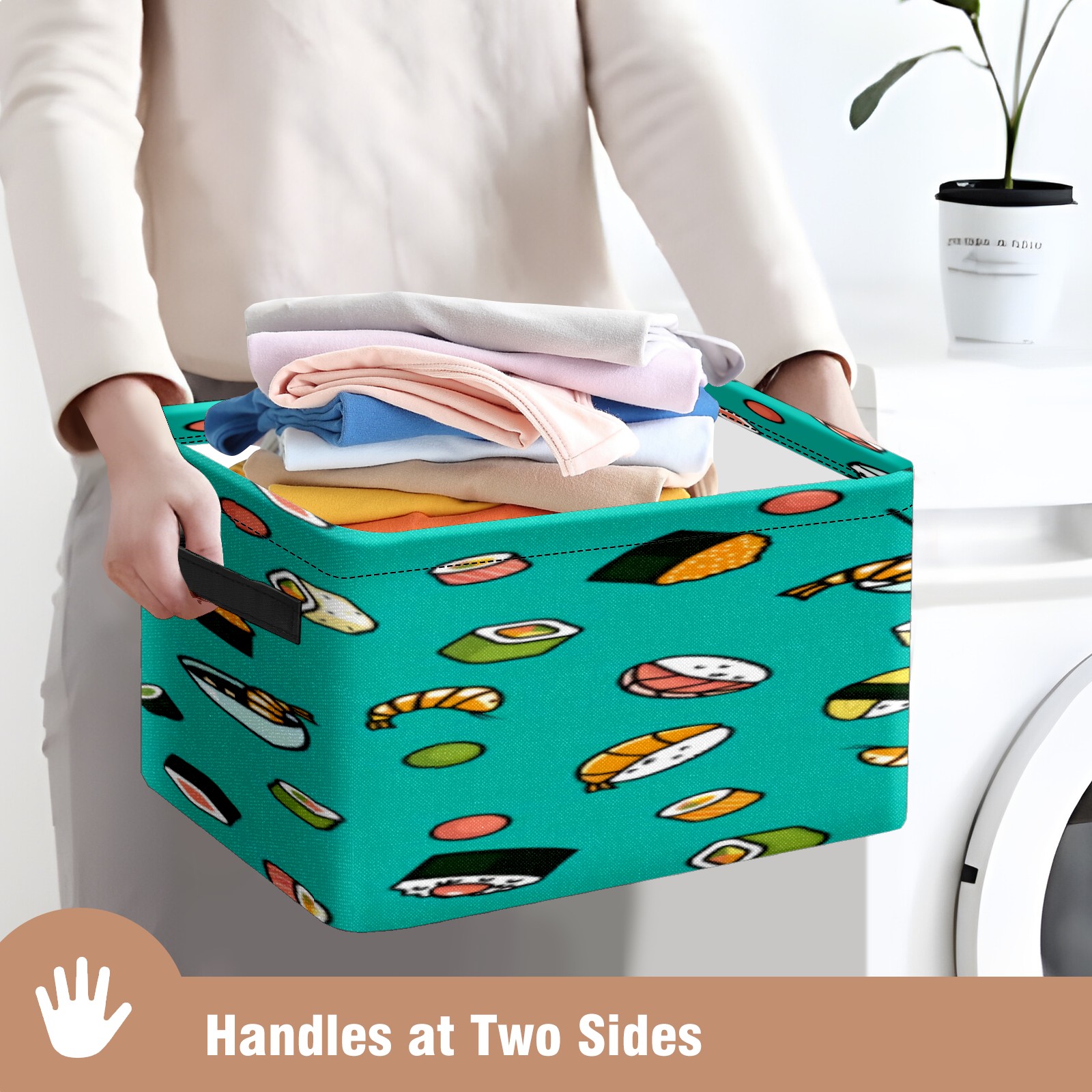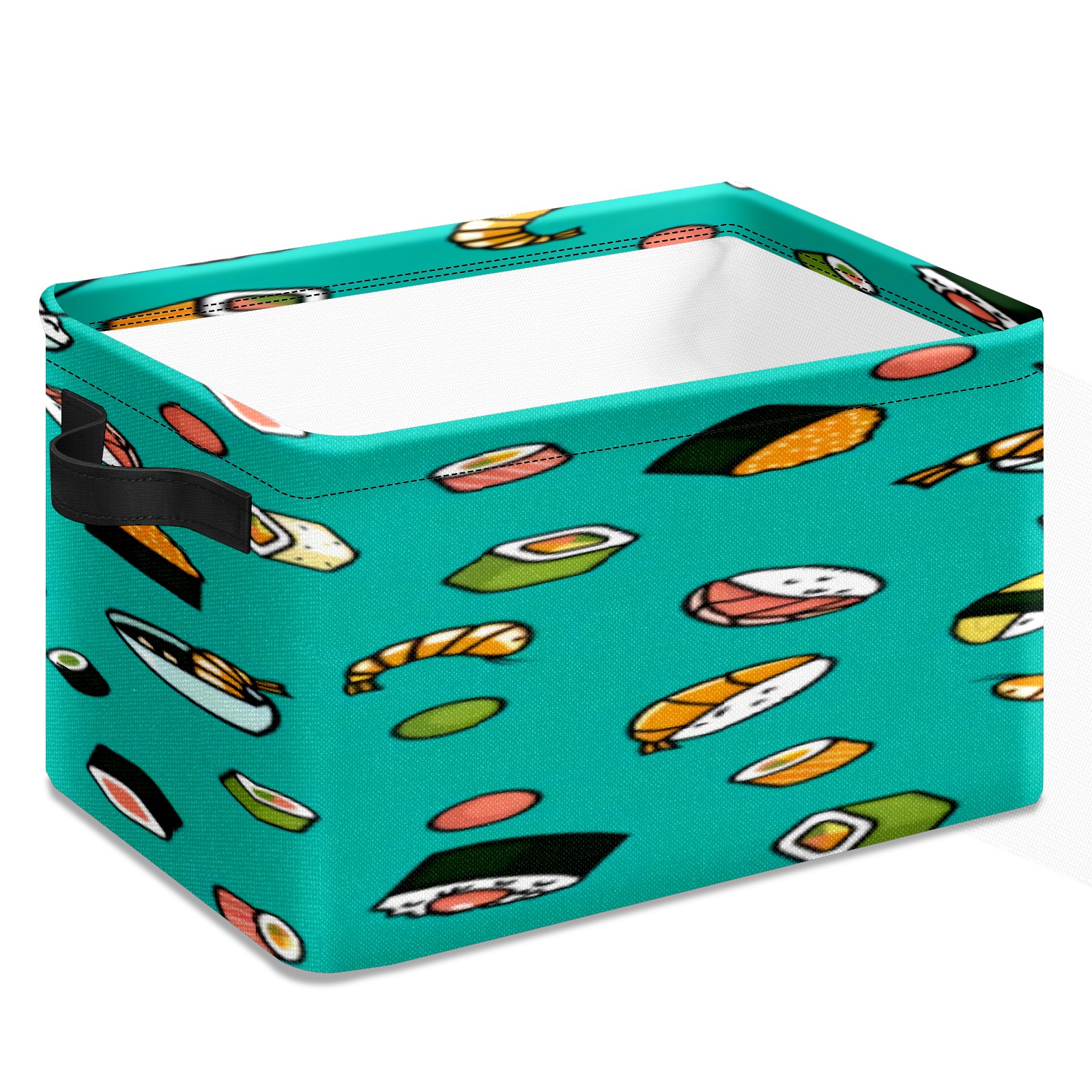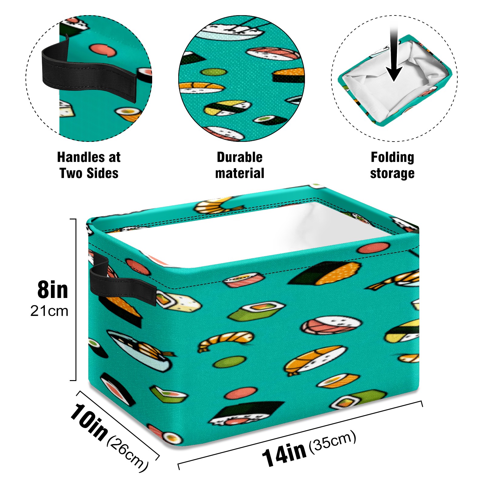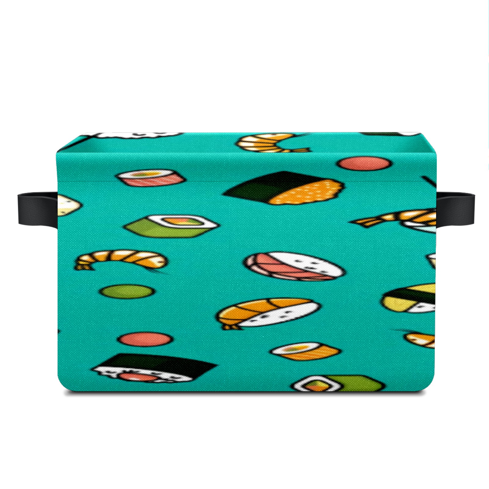 Collapsible 600D Oxford Storage Basket with Japenese Food Sushi - Metal Frame 10"x14"x8" Reinforced Handles, Multi-Purpose Organizer