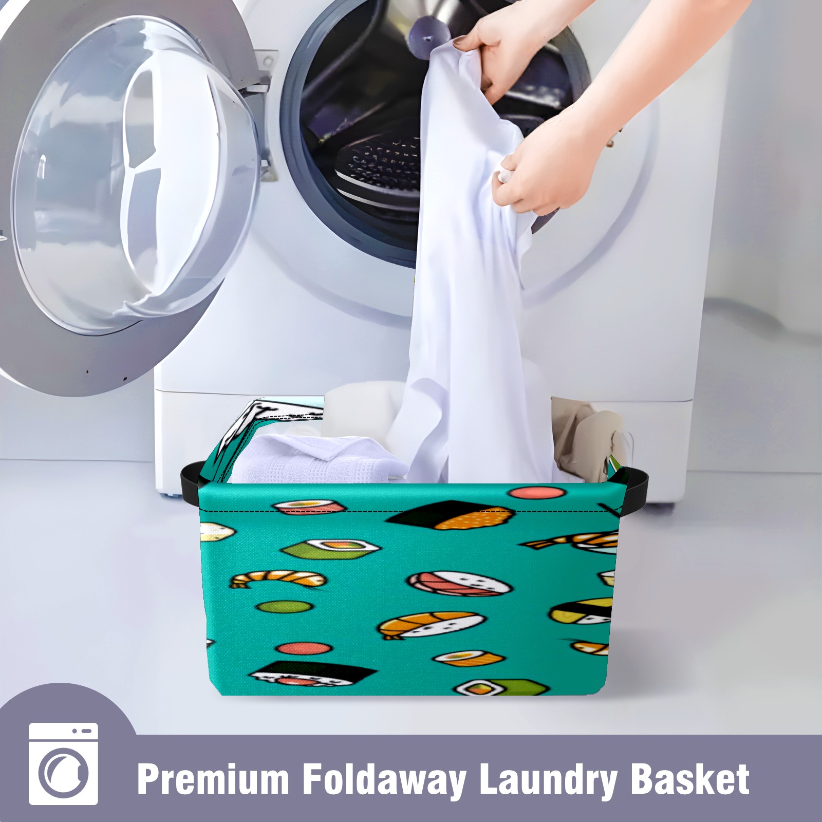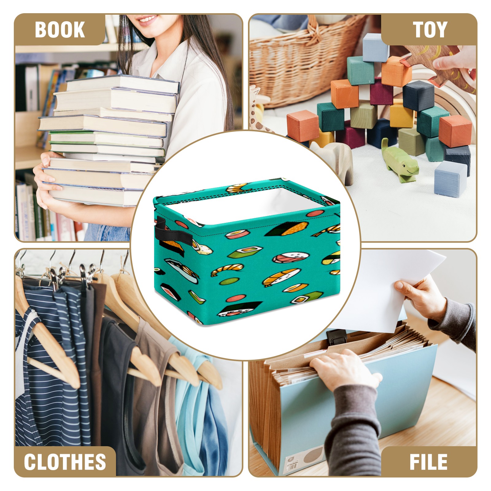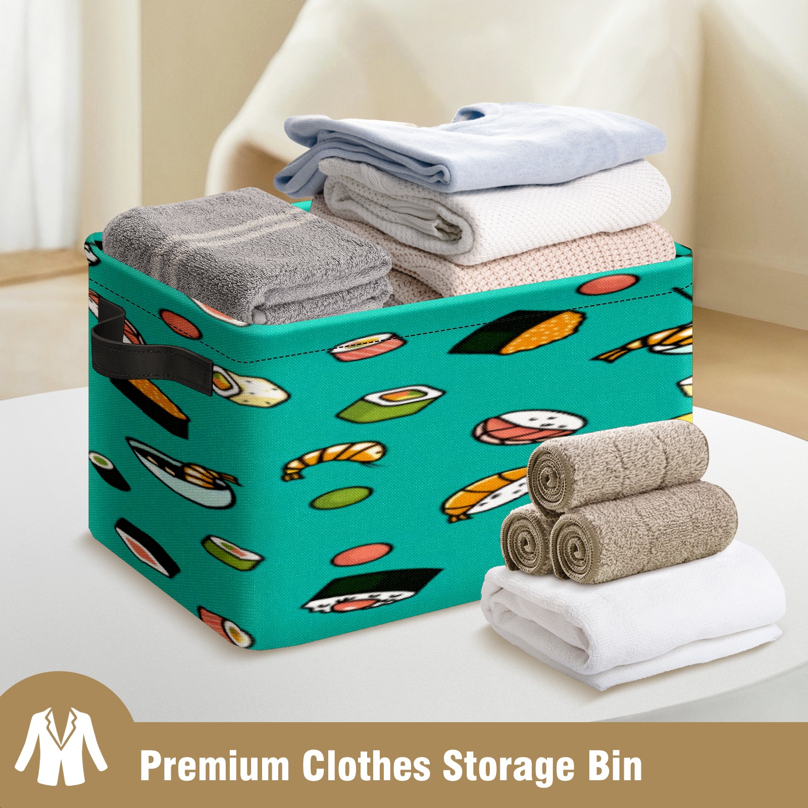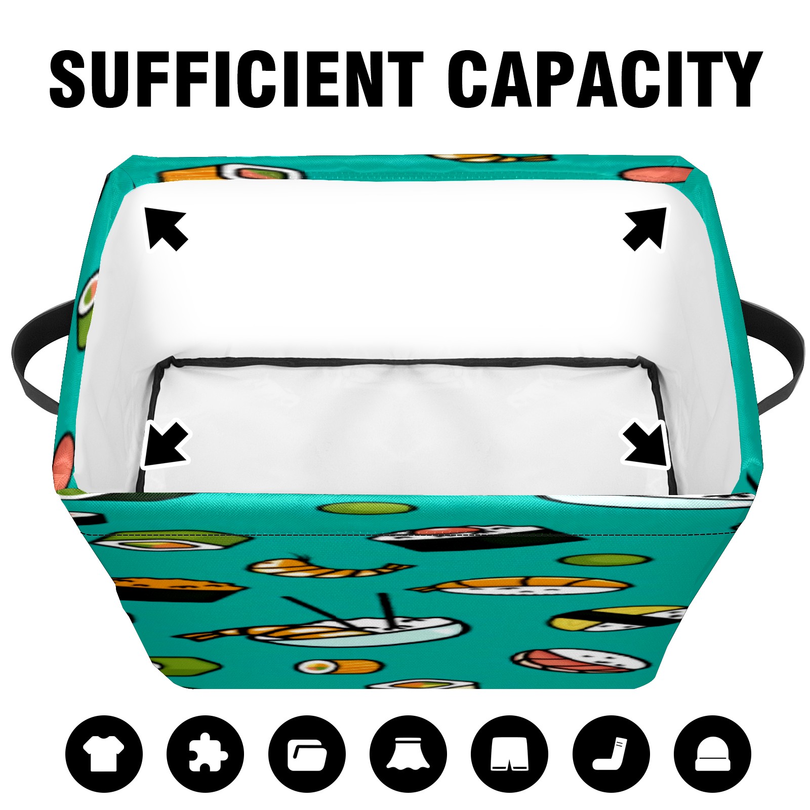 Collapsible 600D Oxford Storage Basket with Japenese Food Sushi - Metal Frame 10"x14"x8" Reinforced Handles, Multi-Purpose Organizer