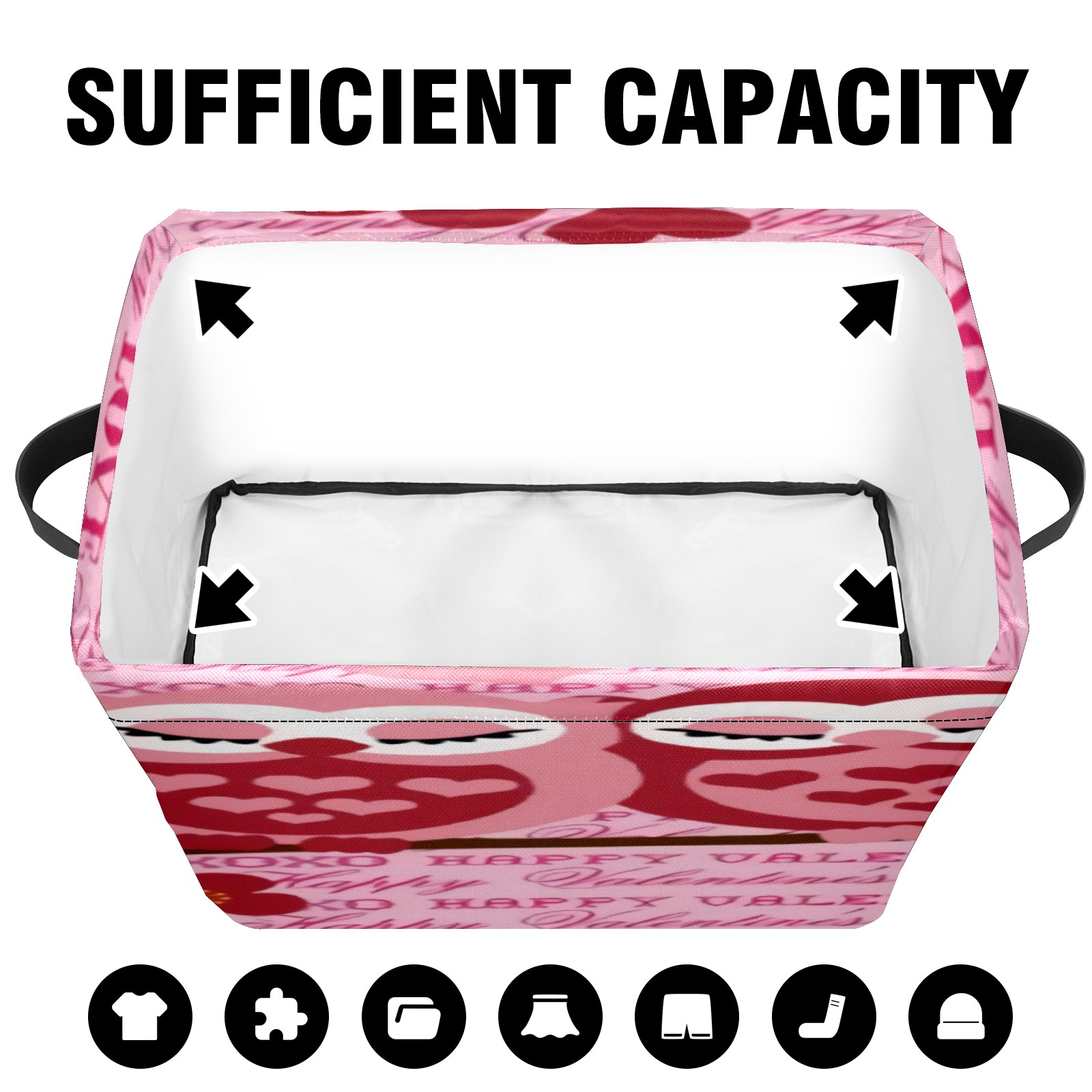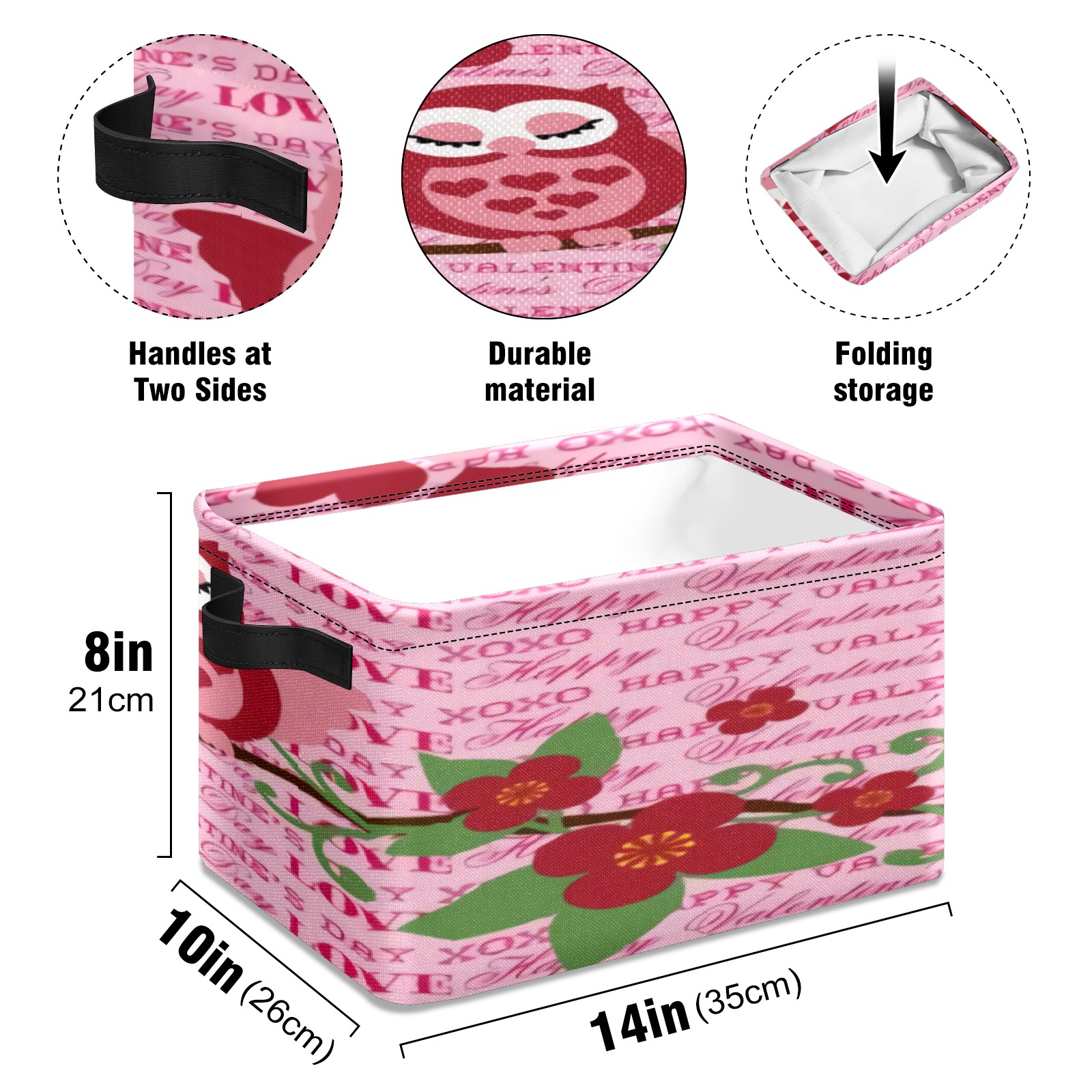 Collapsible 600D Oxford Storage Basket with Cute Owls Love Bird - Metal Frame 10"x14"x8" Reinforced Handles, Multi-Purpose Organizer