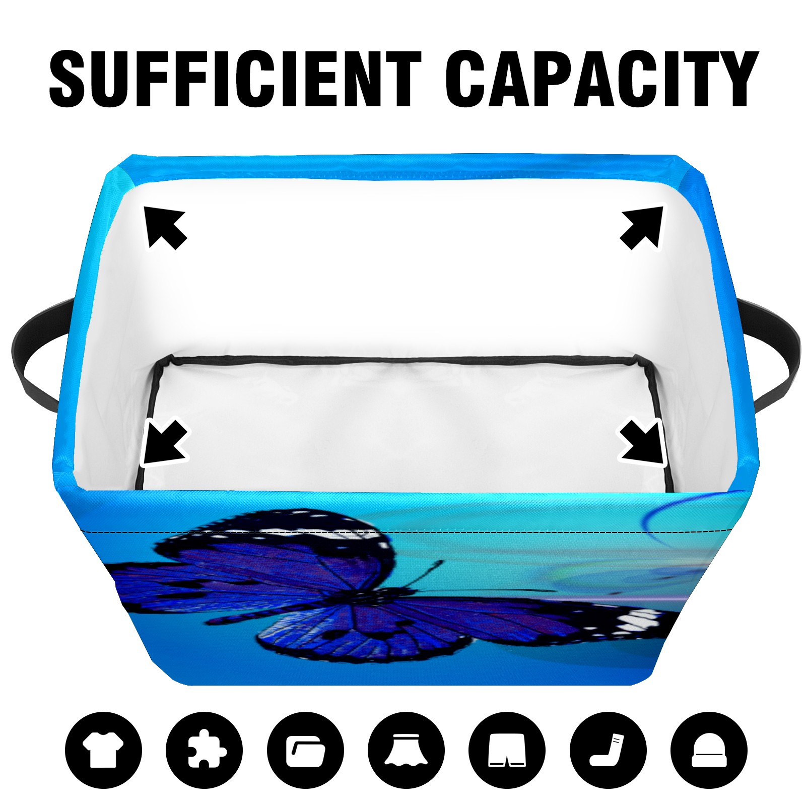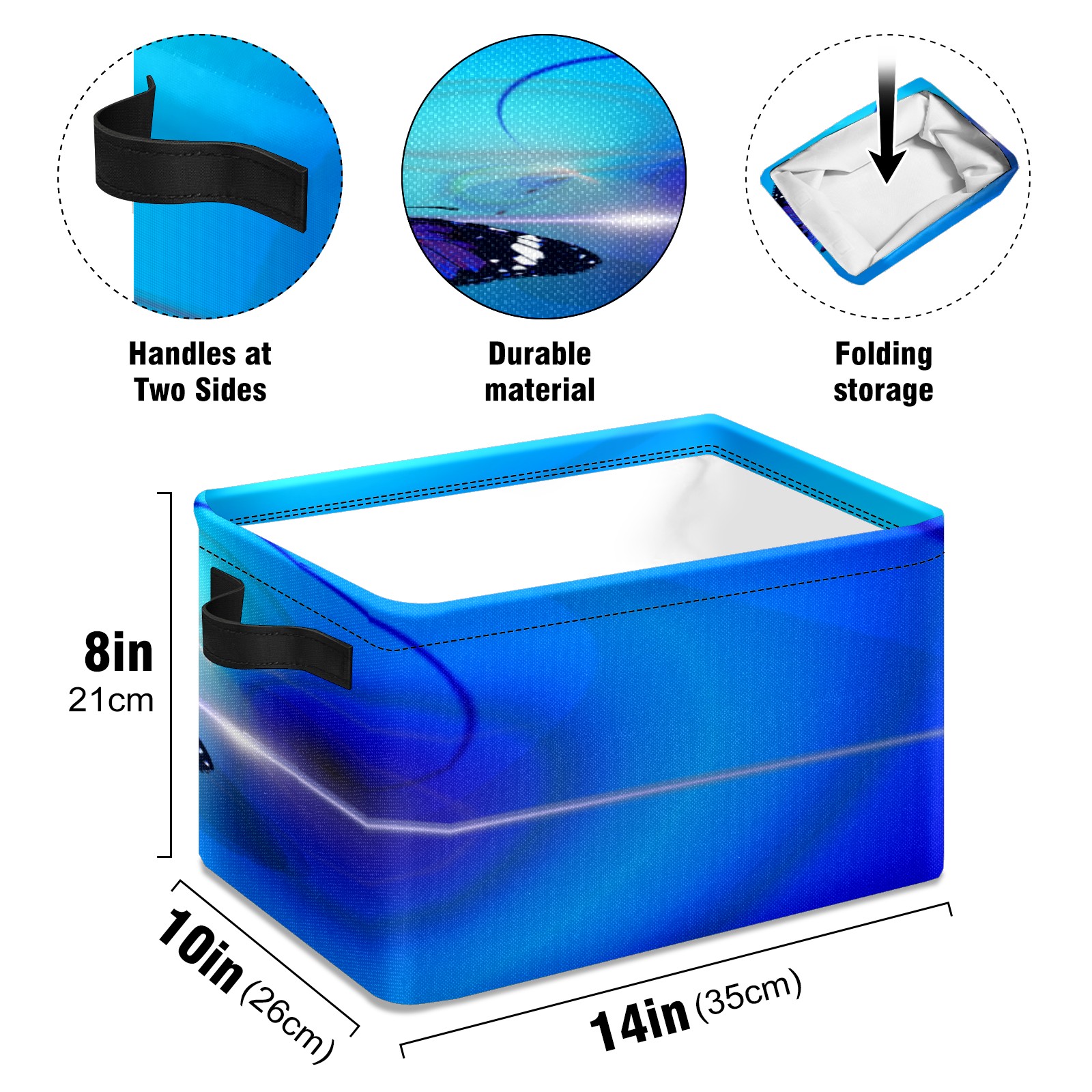 Collapsible 600D Oxford Storage Basket with Butterfly Animals Insects Abstract - Metal Frame 10"x14"x8" Reinforced Handles, Multi-Purpose Organizer