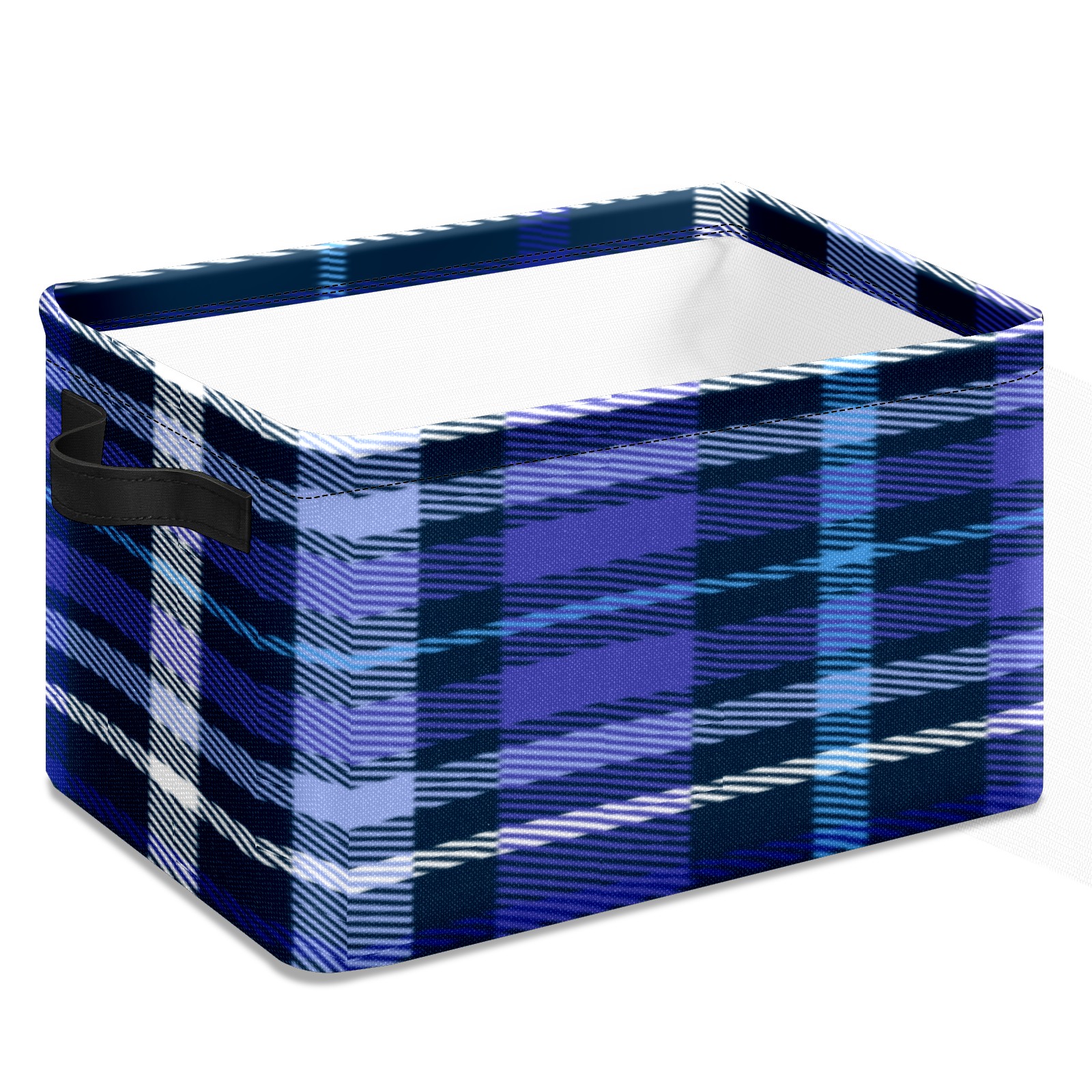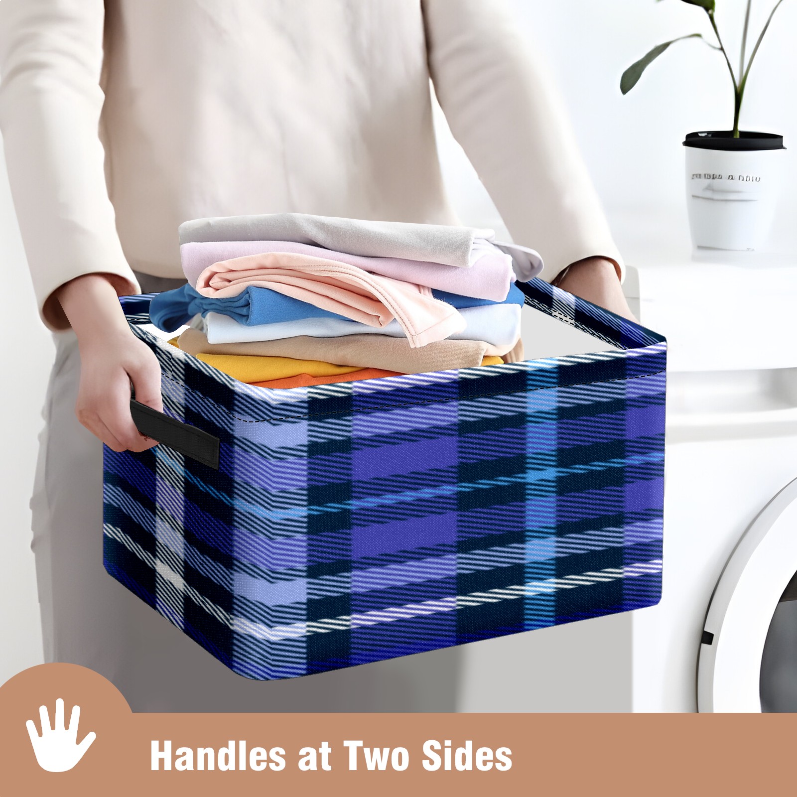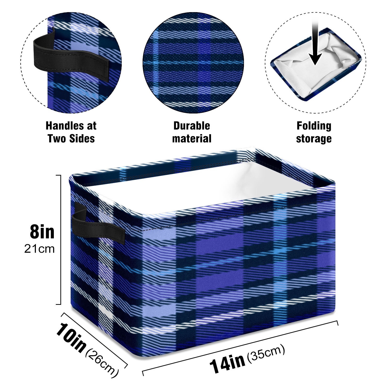 Collapsible 600D Oxford Storage Basket with Blue Buffalo Plaid Checks Pattern - Metal Frame 10"x14"x8" Reinforced Handles, Multi-Purpose Organizer