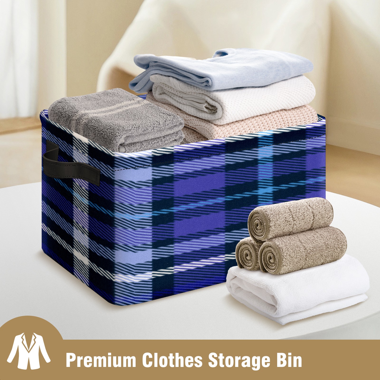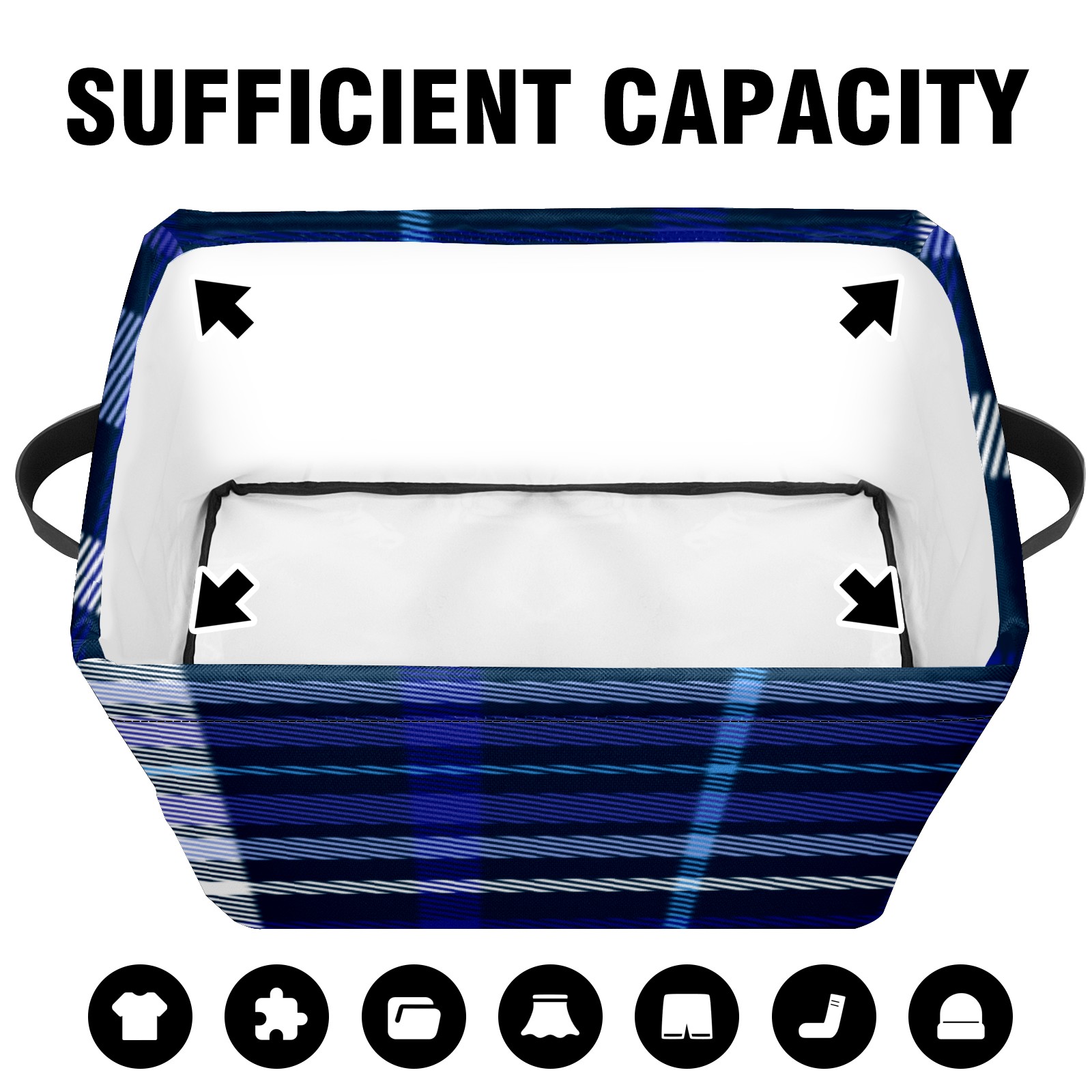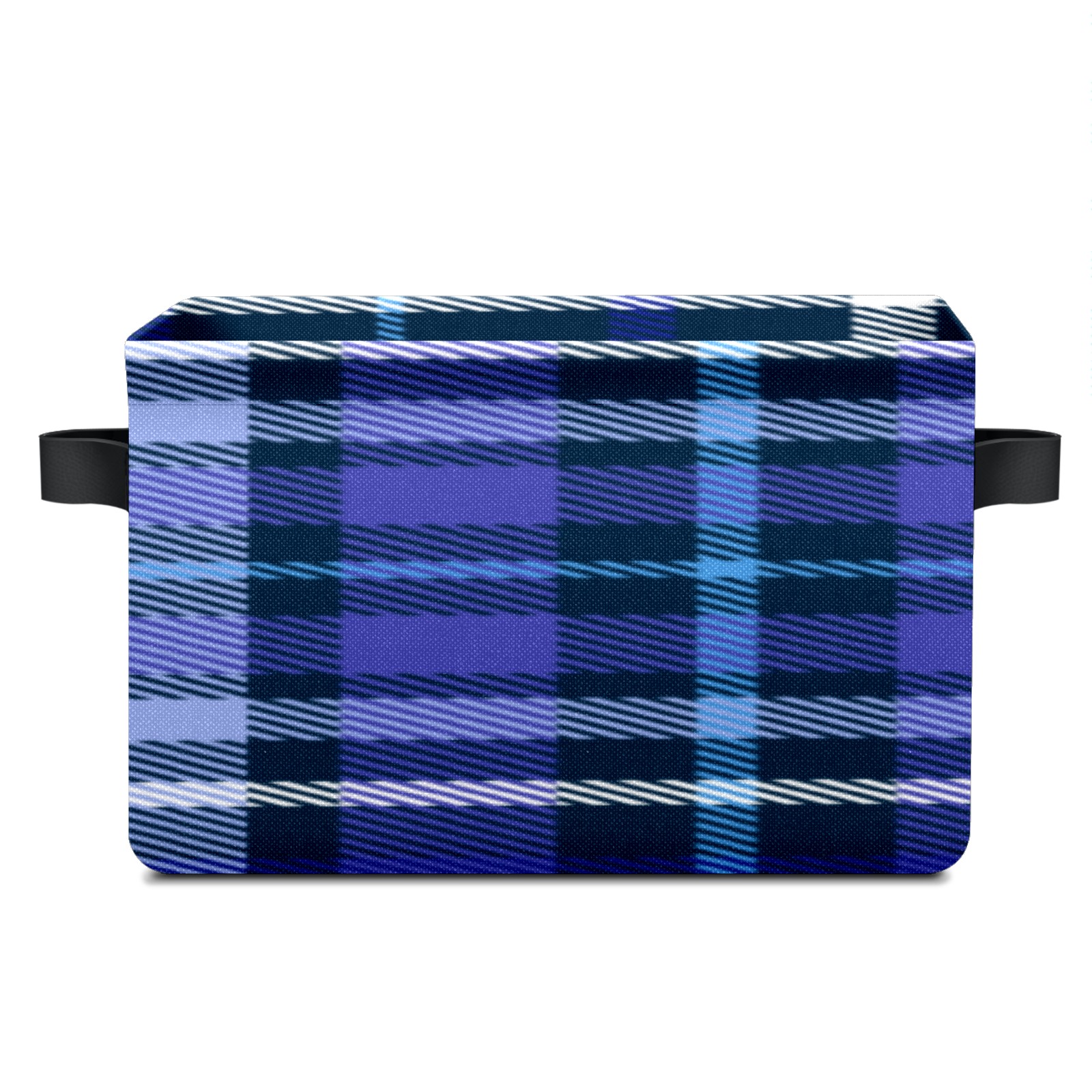 Collapsible 600D Oxford Storage Basket with Blue Buffalo Plaid Checks Pattern - Metal Frame 10"x14"x8" Reinforced Handles, Multi-Purpose Organizer