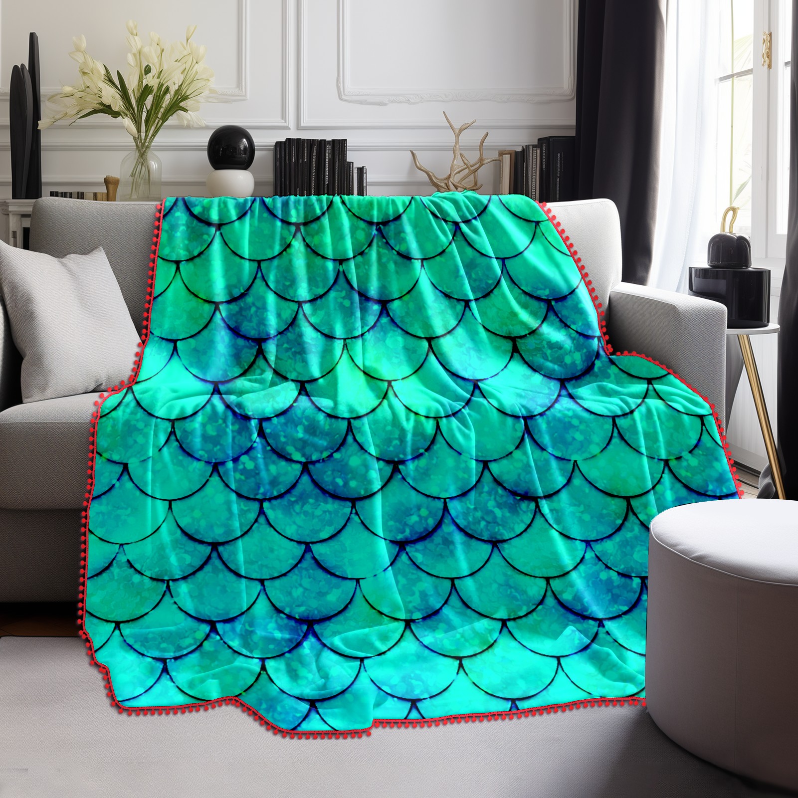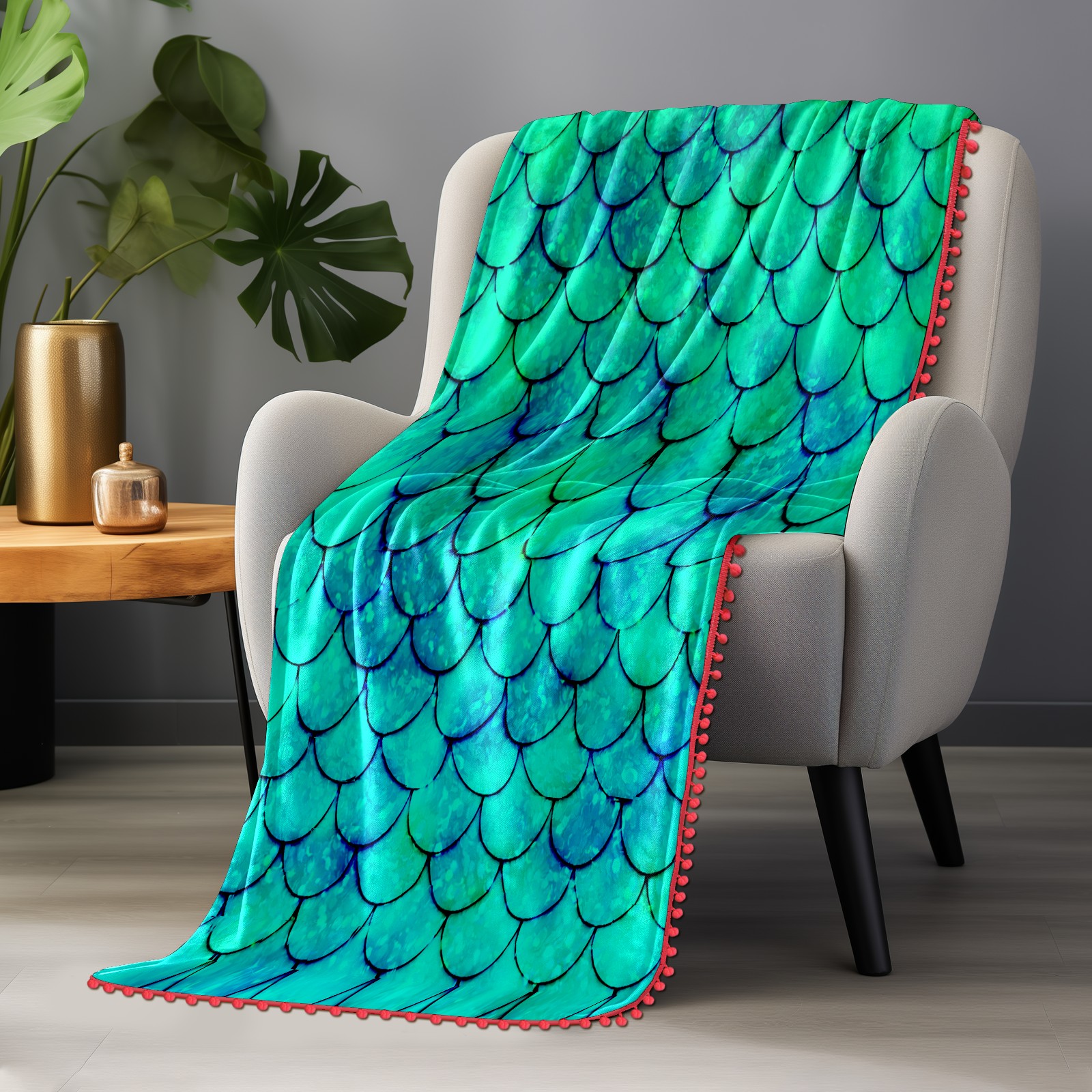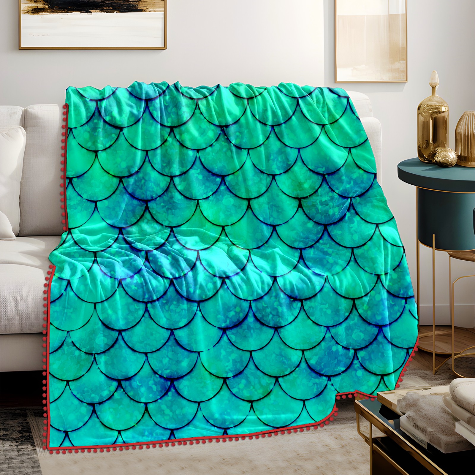 流苏毛毯 Mermaid Green Scales