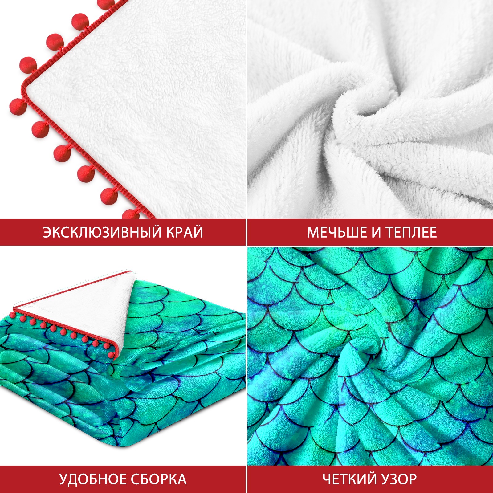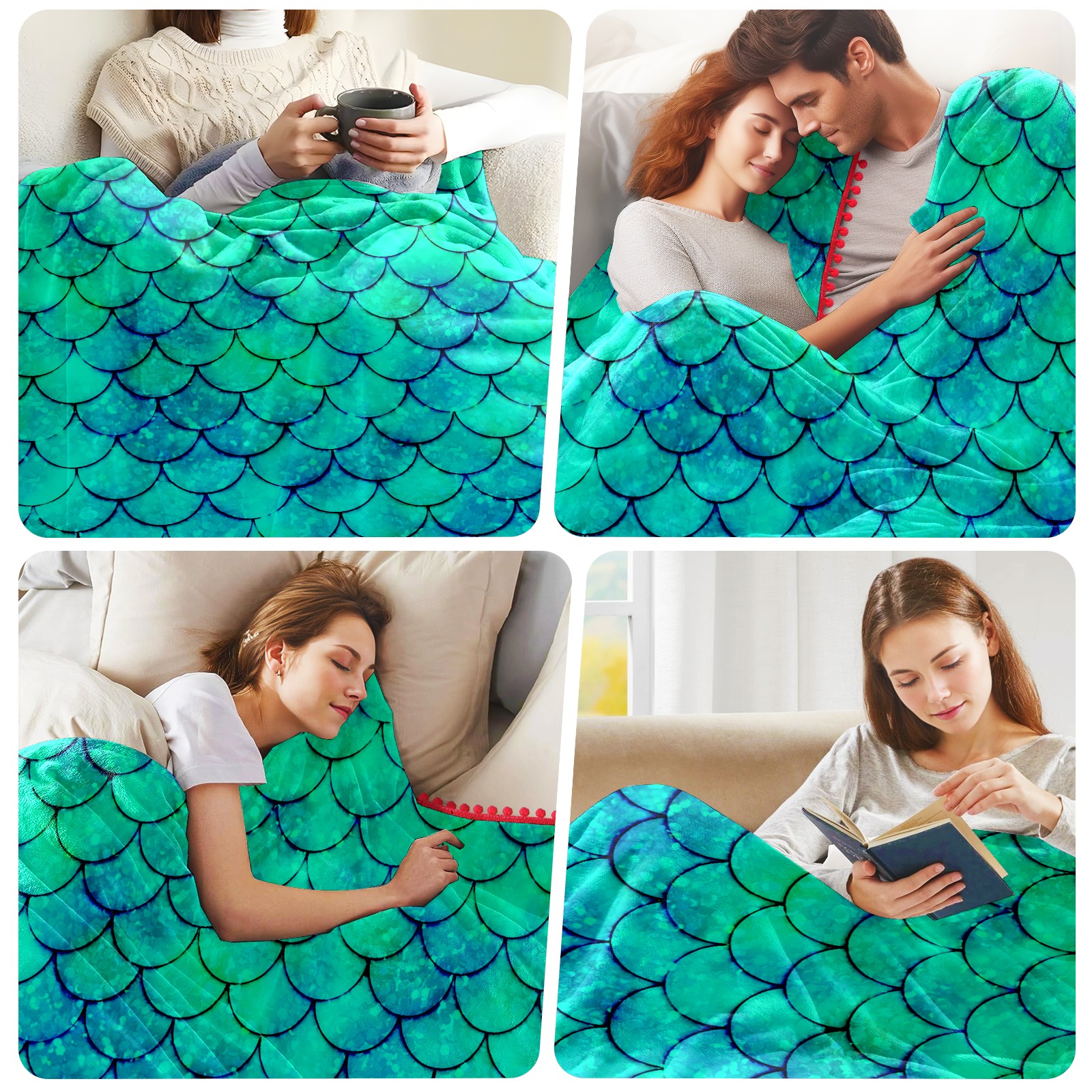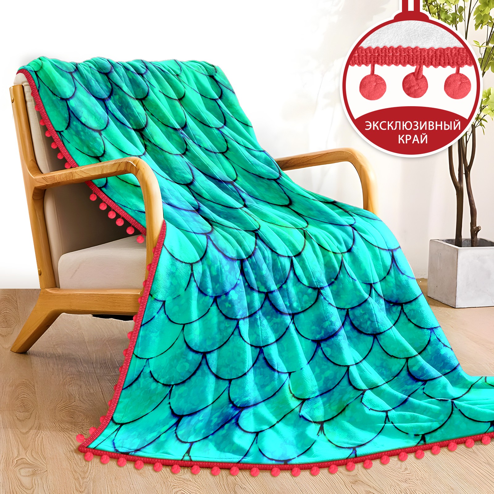 流苏毛毯 Mermaid Green Scales