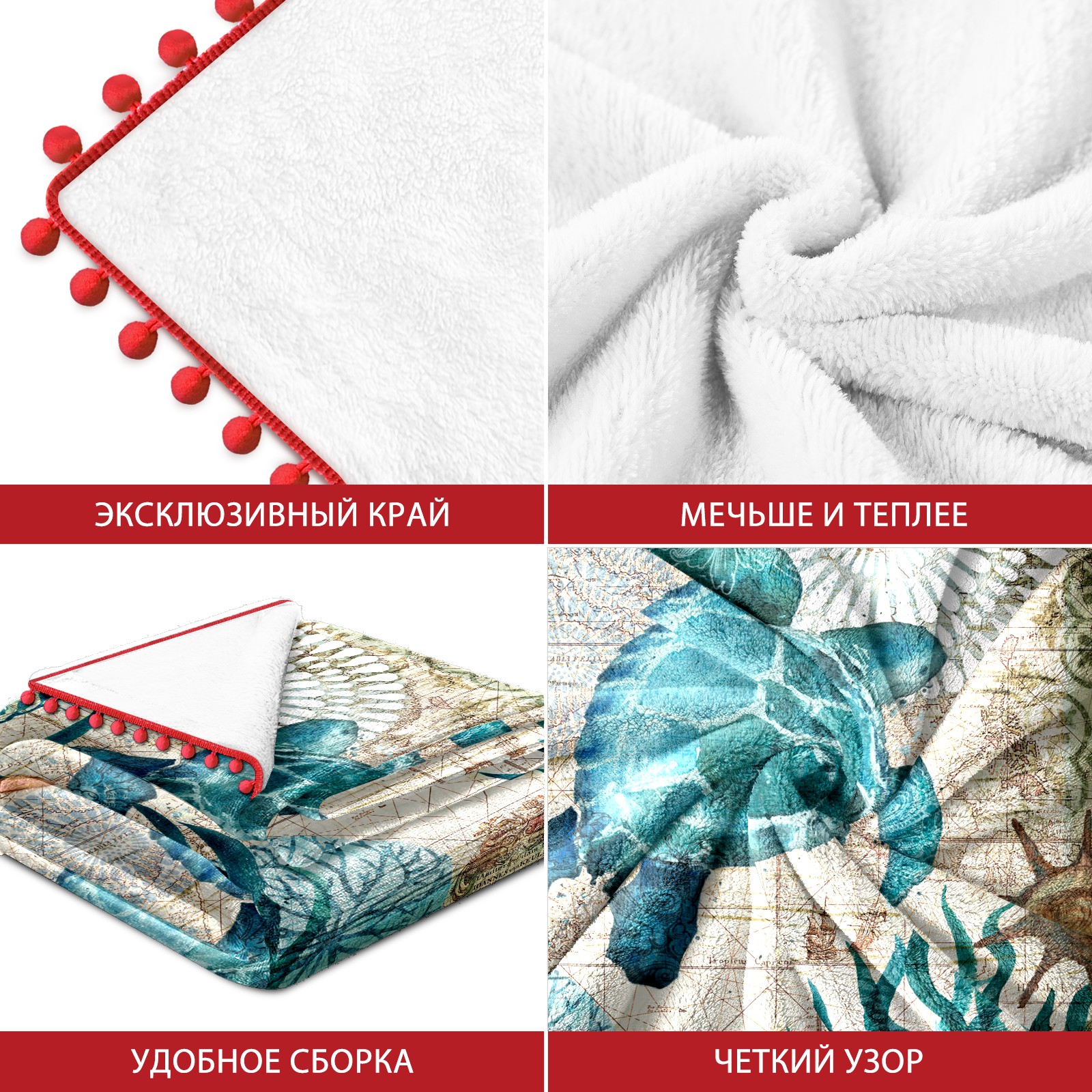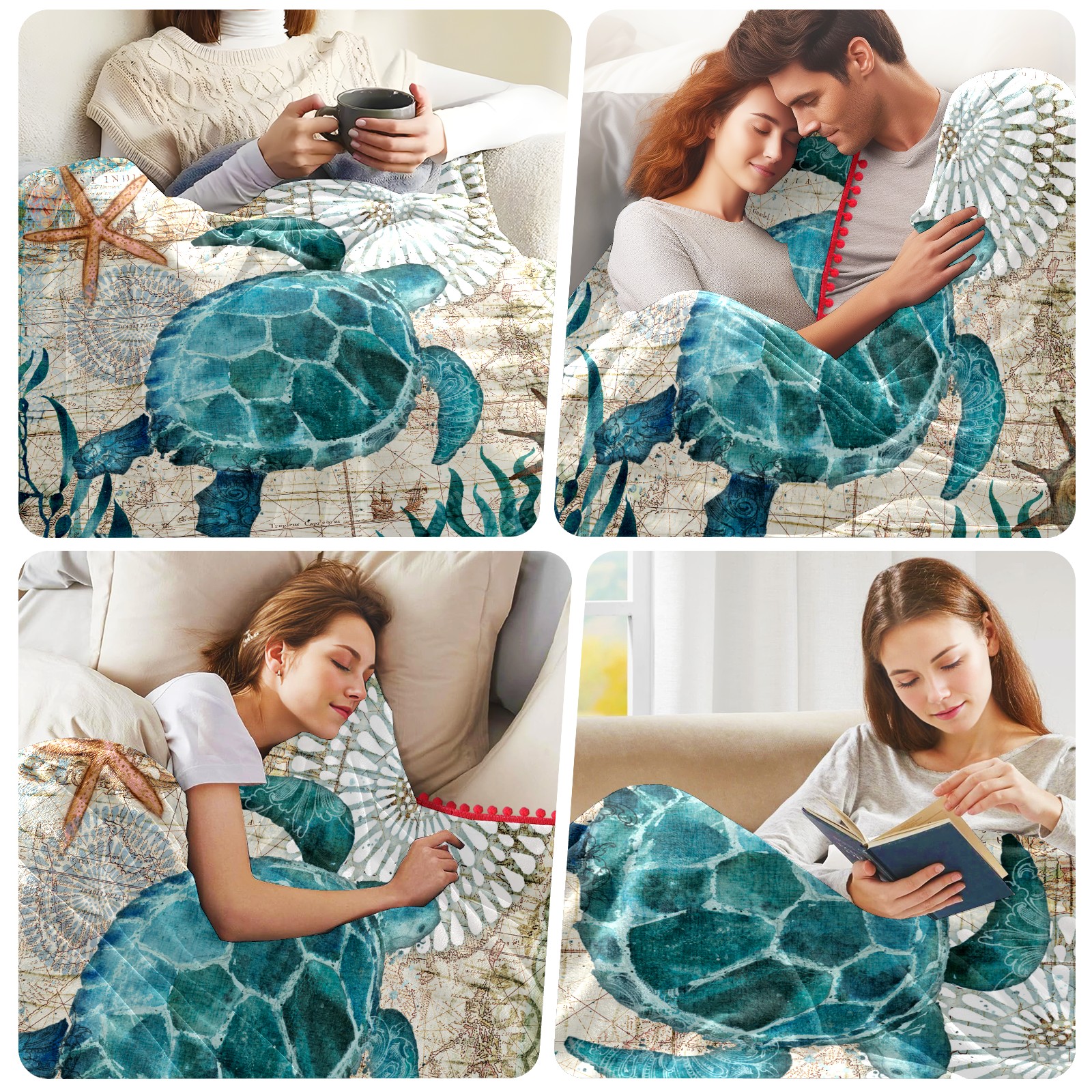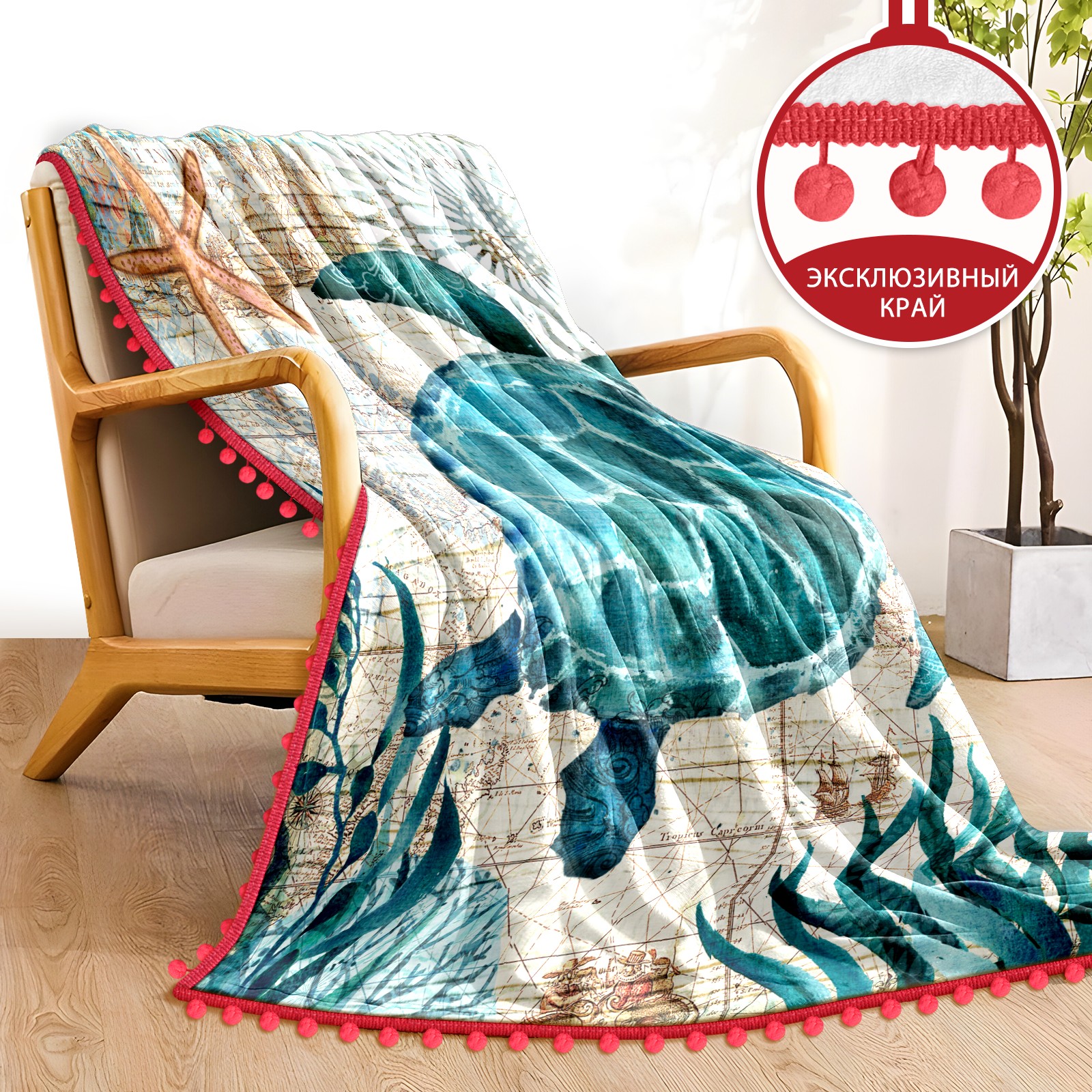 流苏毛毯 Blue Sea Turtle Nautical Map