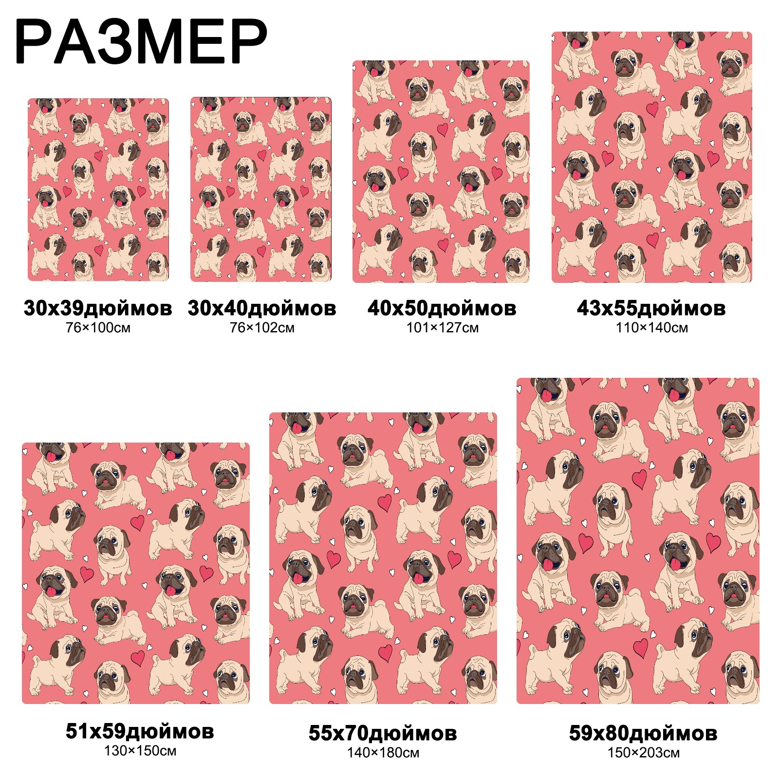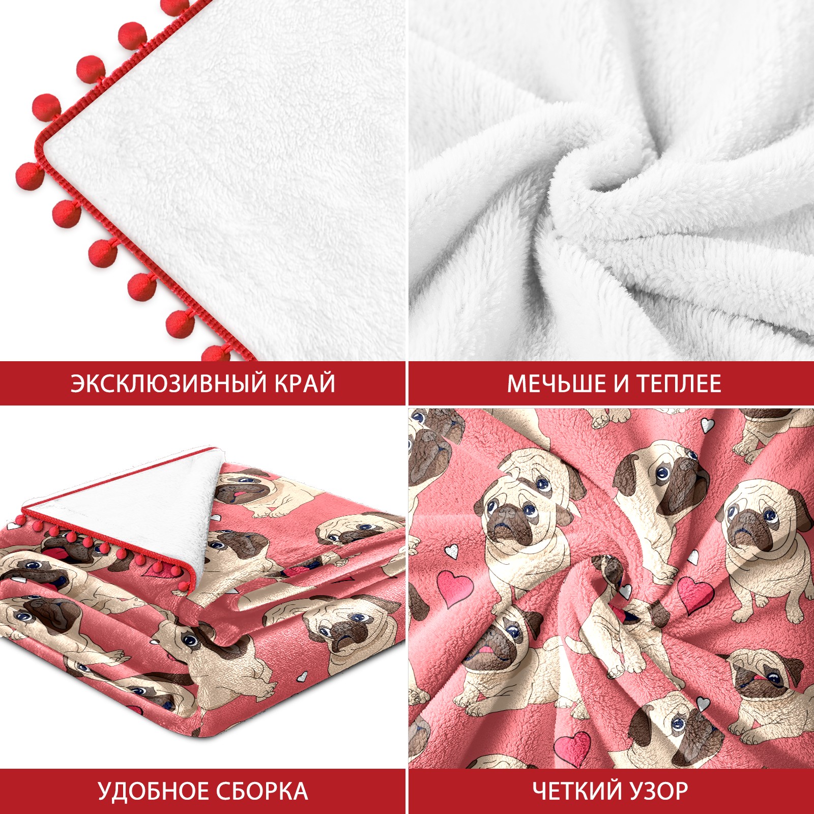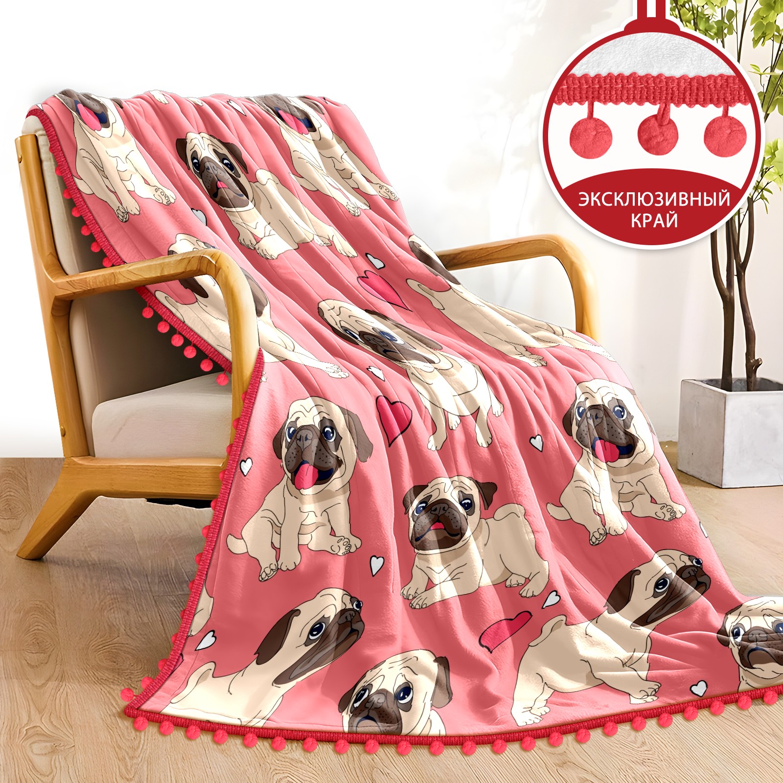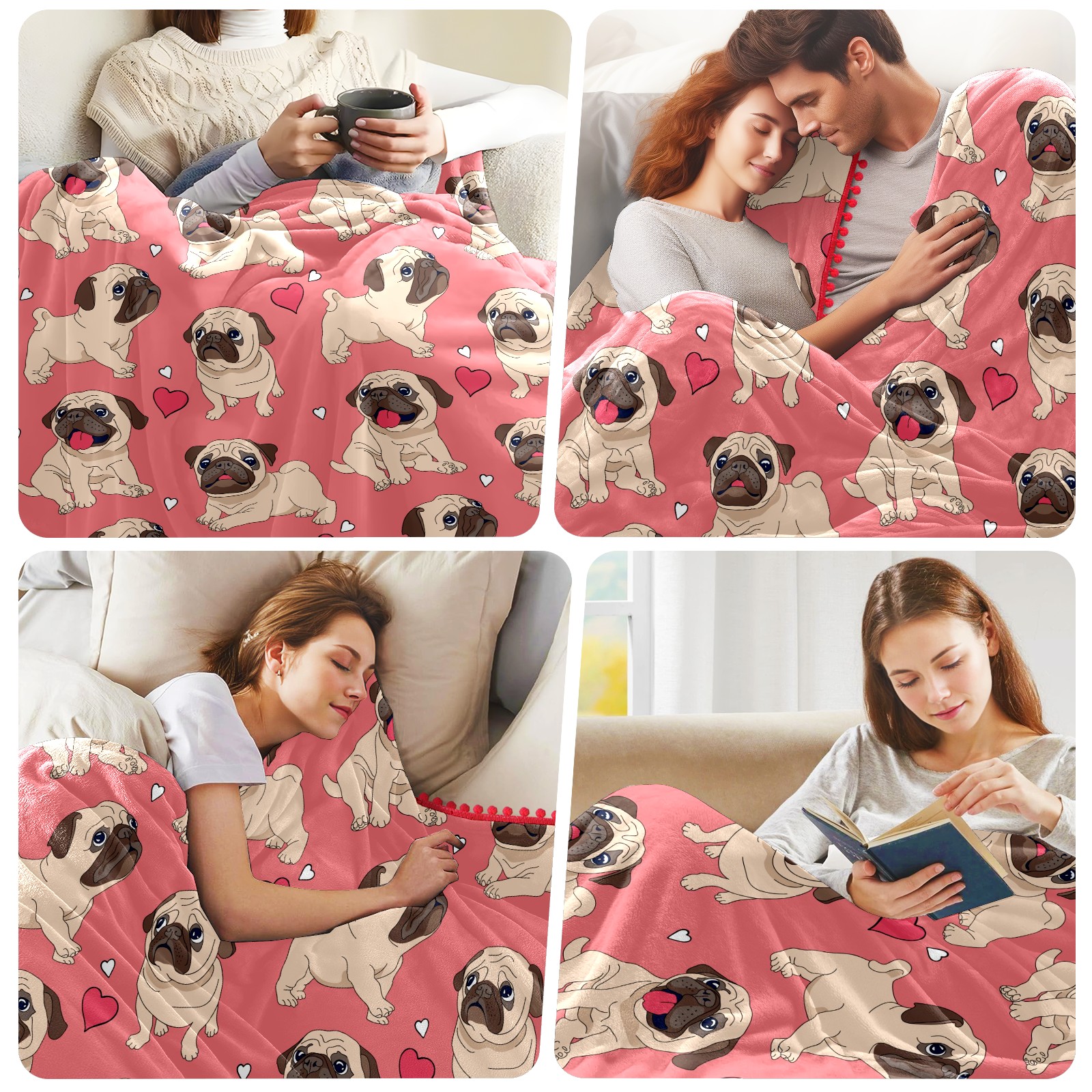 流苏毛毯 Pink Pug Puppy Dog Heart Love Pattern
