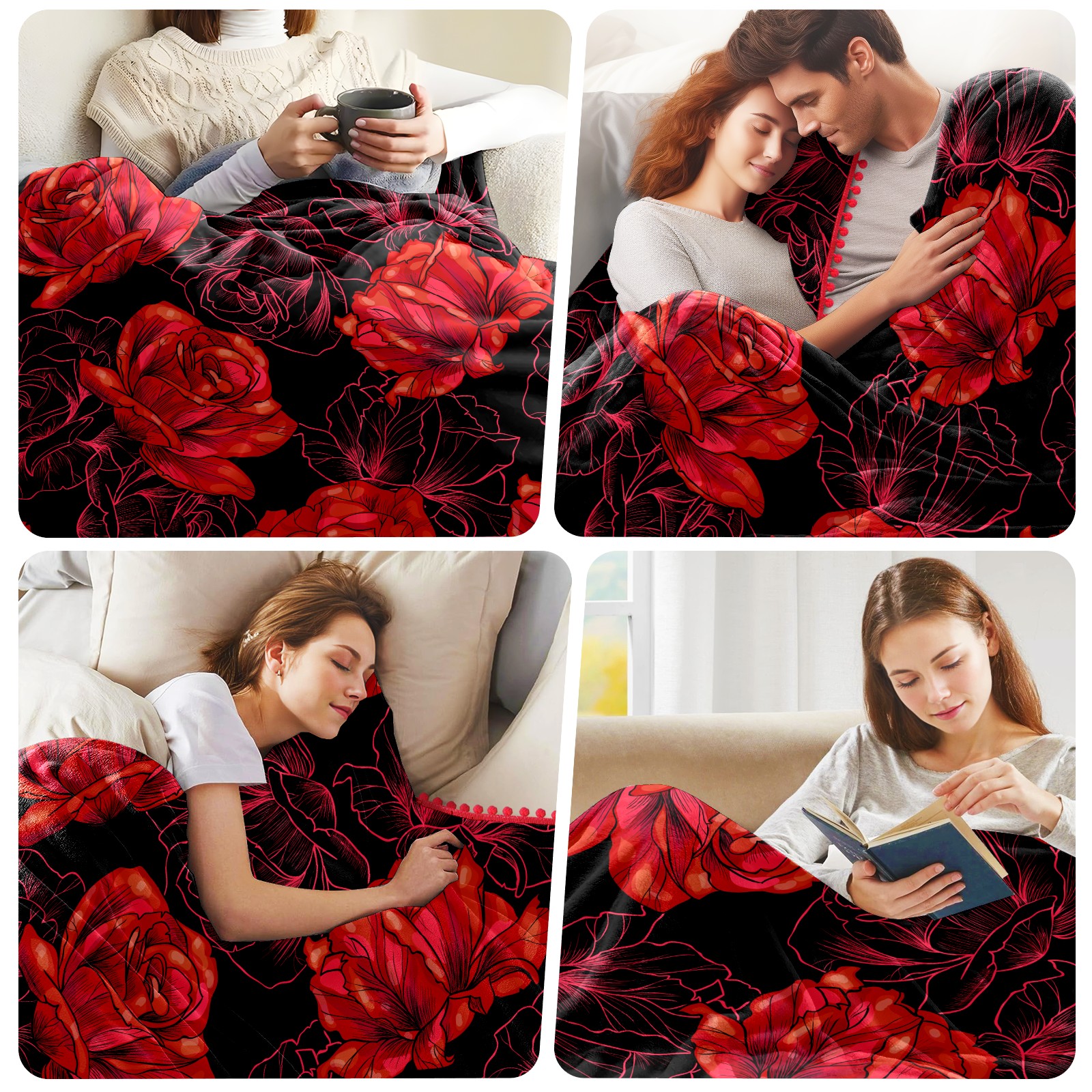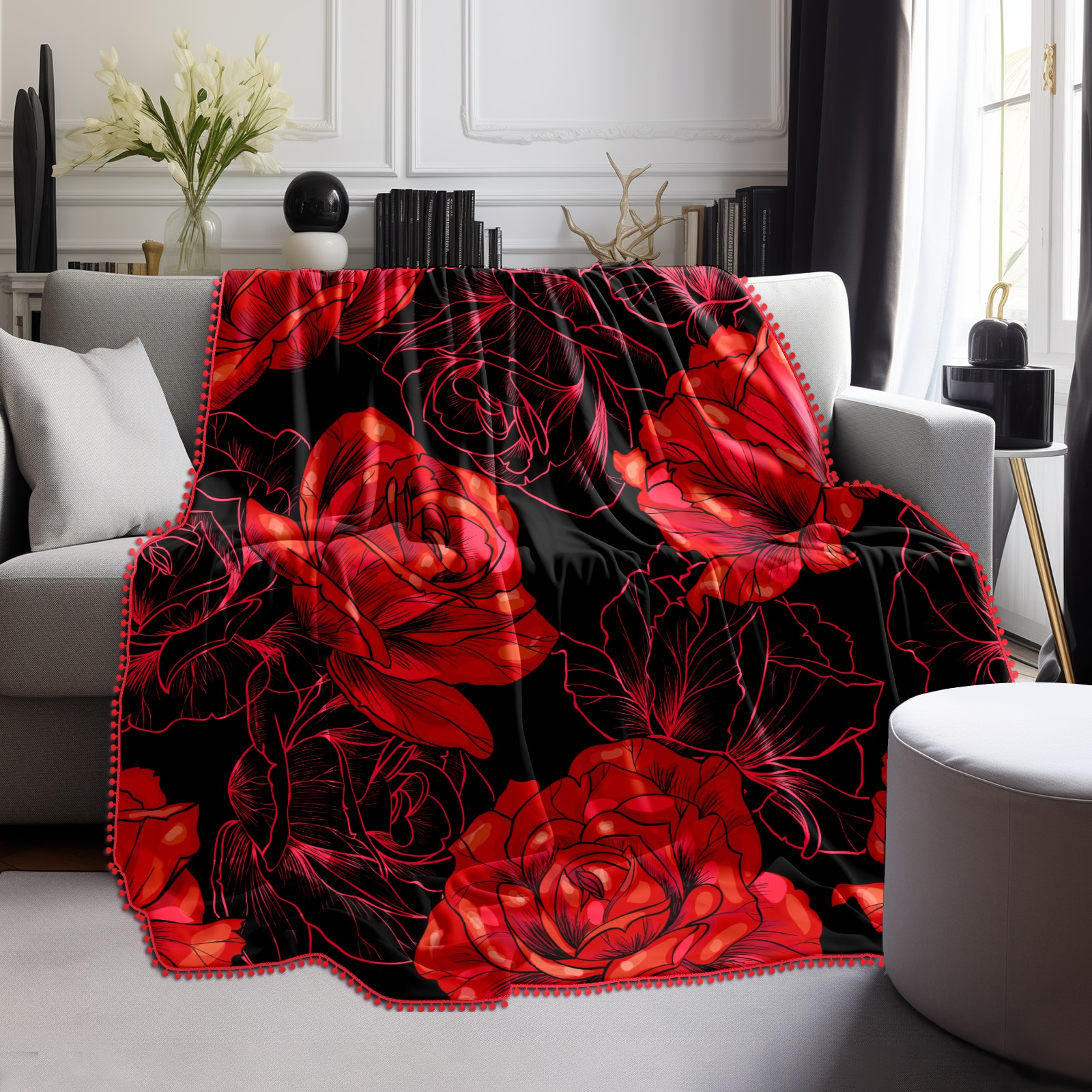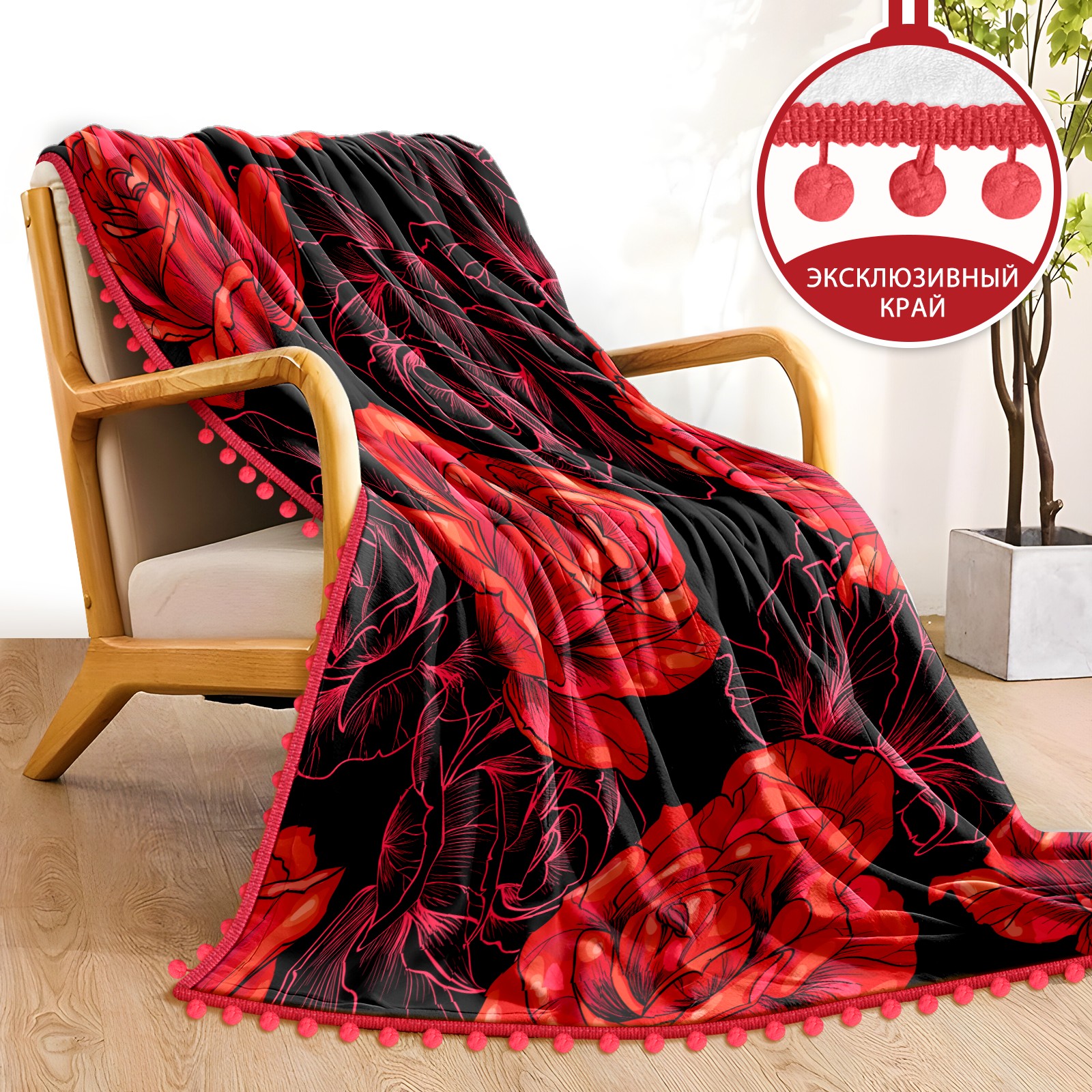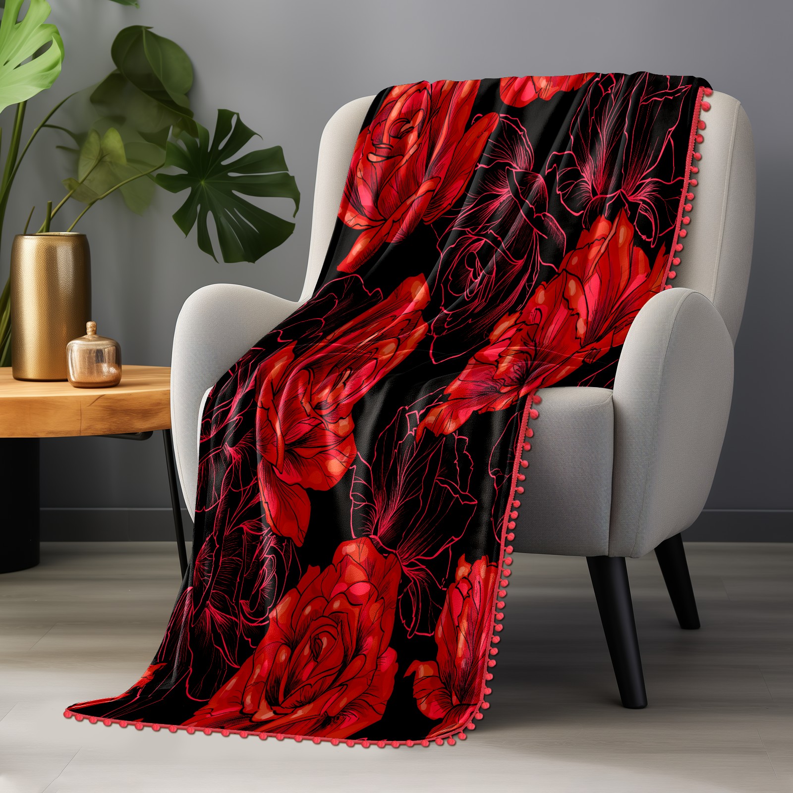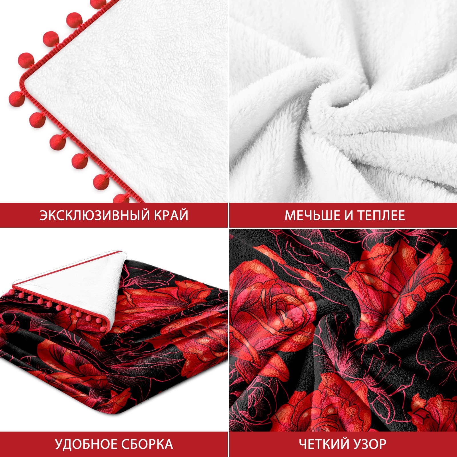 流苏毛毯 Red Rose