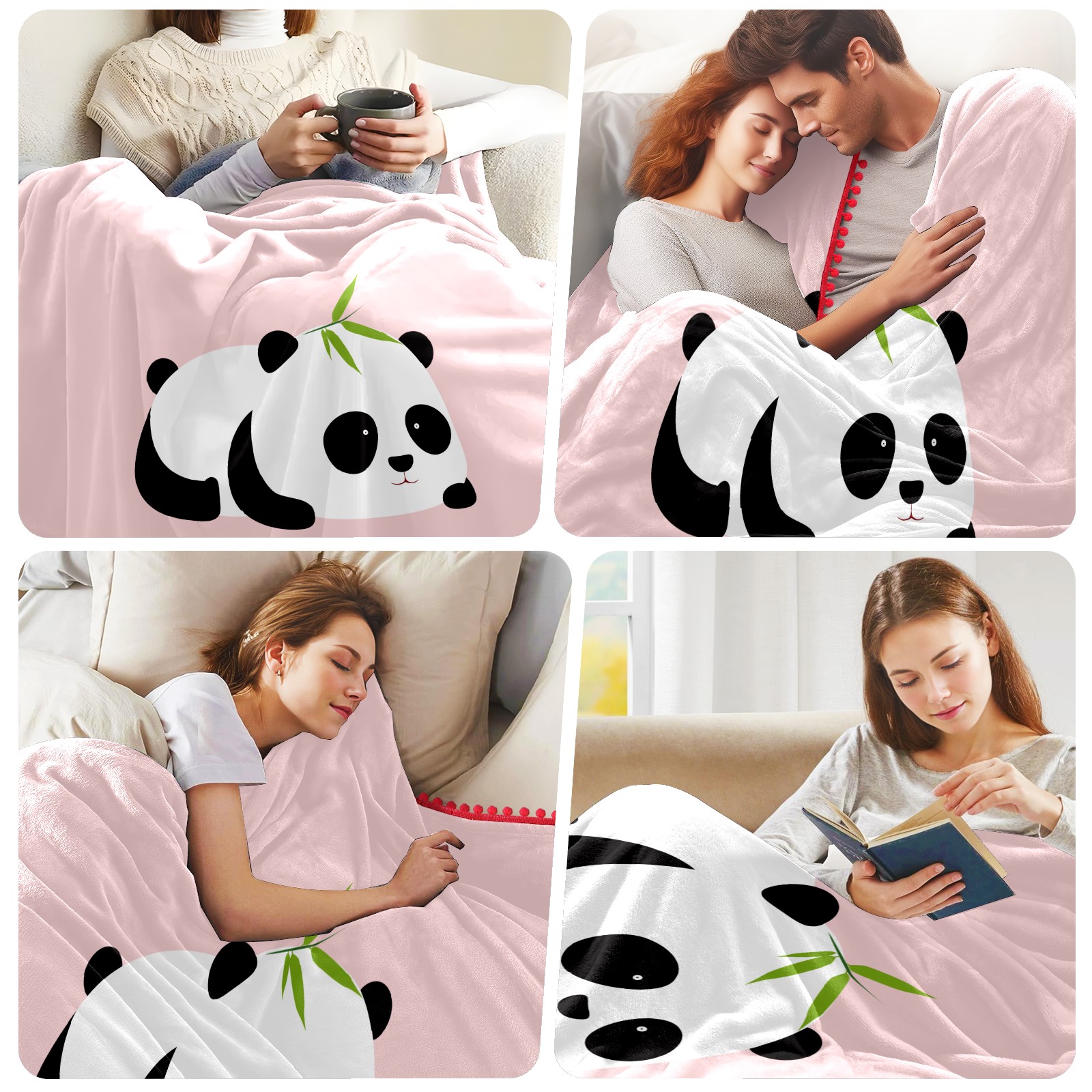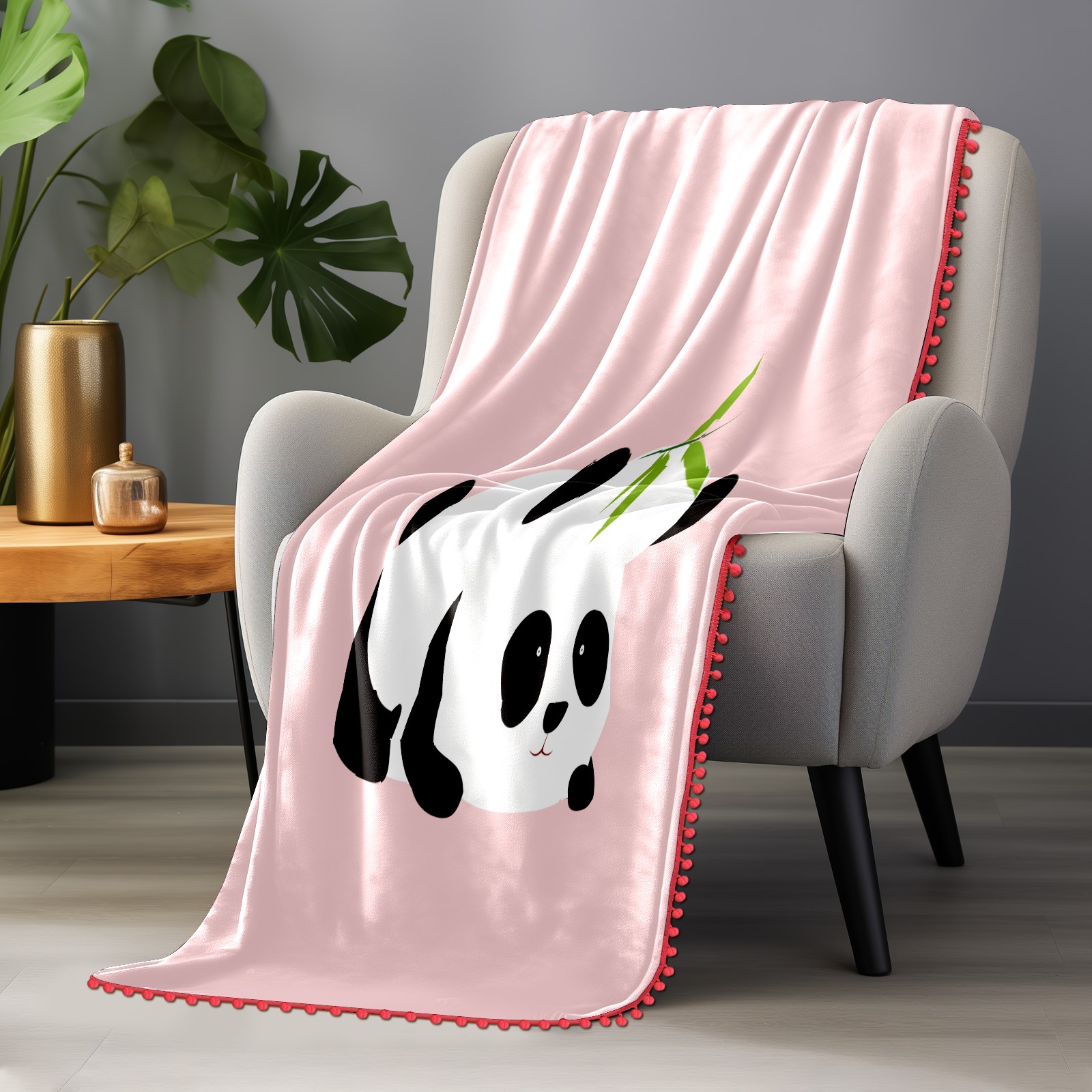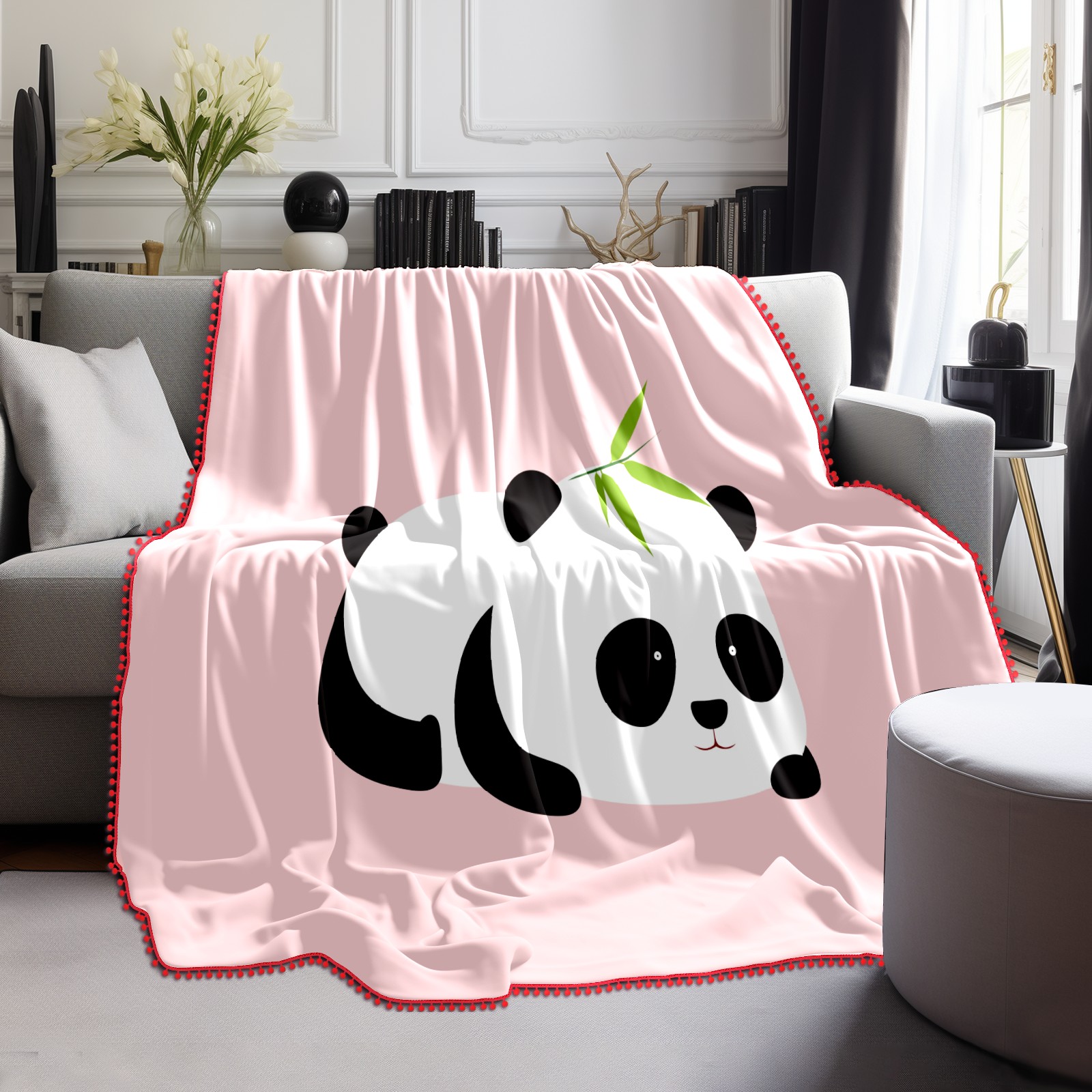 流苏毛毯 Cartoon Panda Head Bamboo Leaves