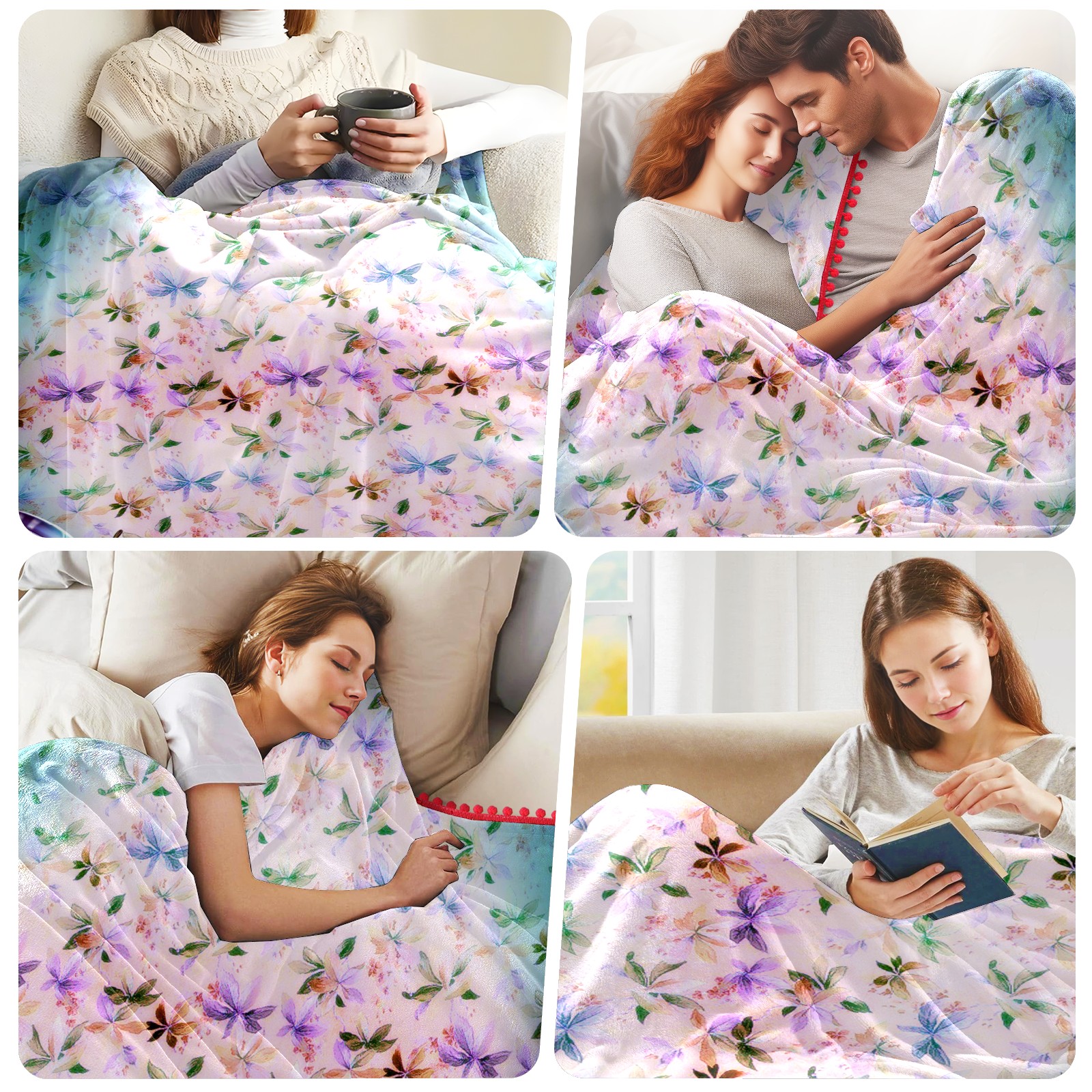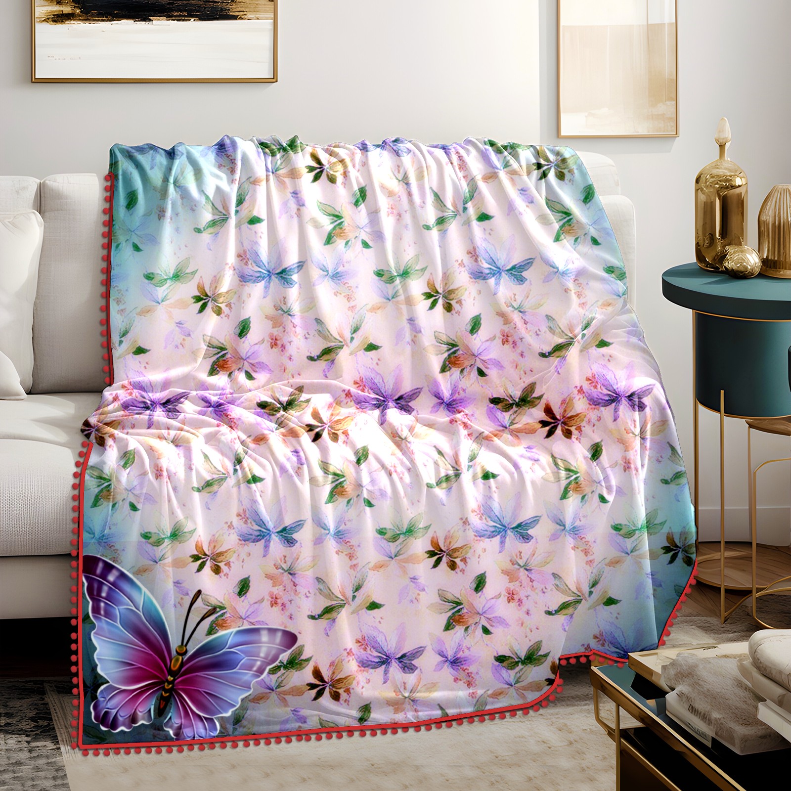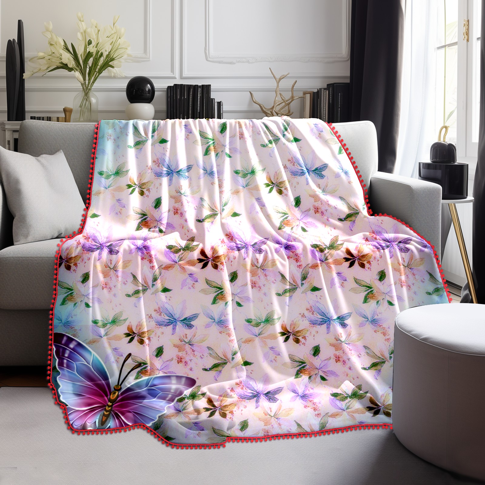 流苏毛毯 Purple Butterfly Plant Leaves Retro
