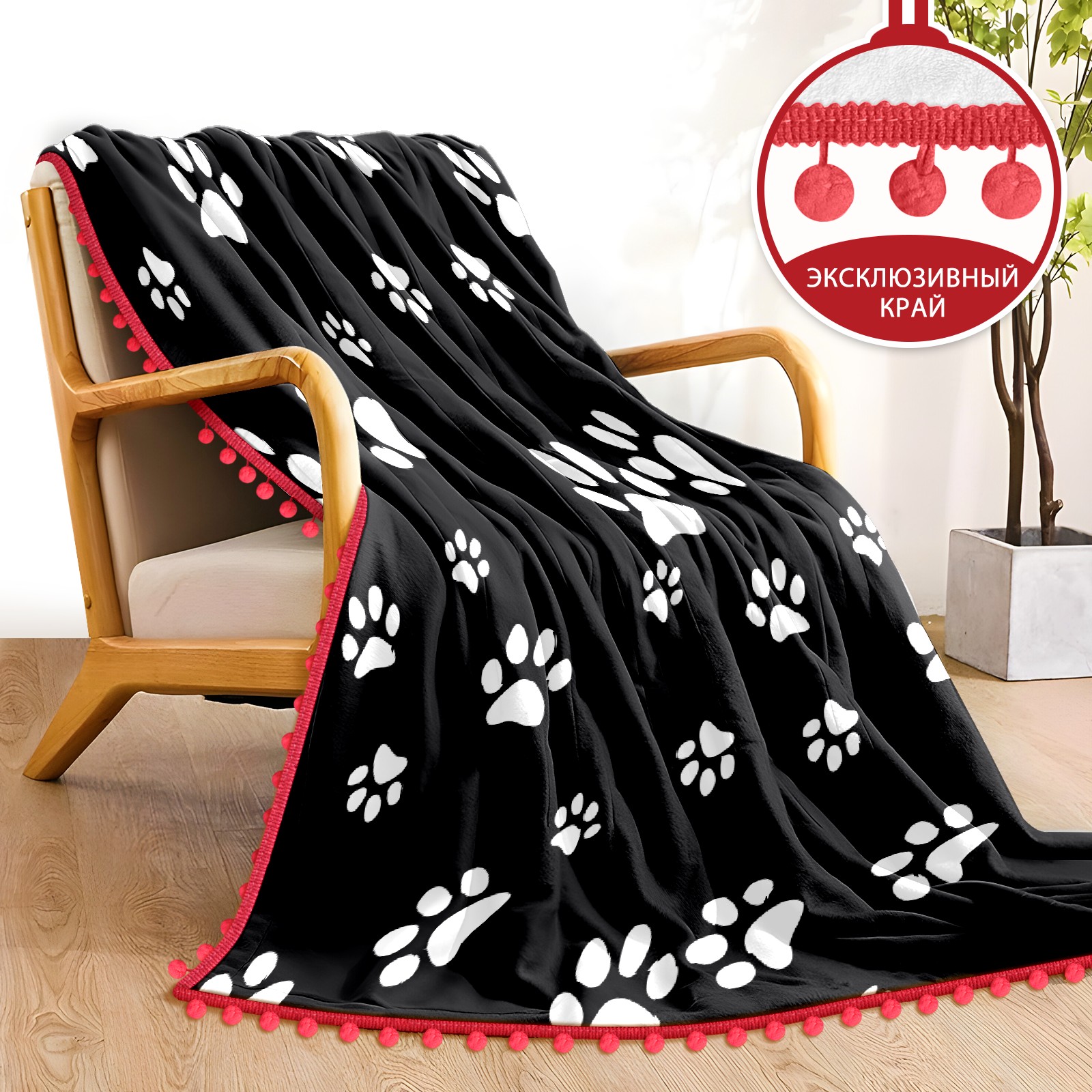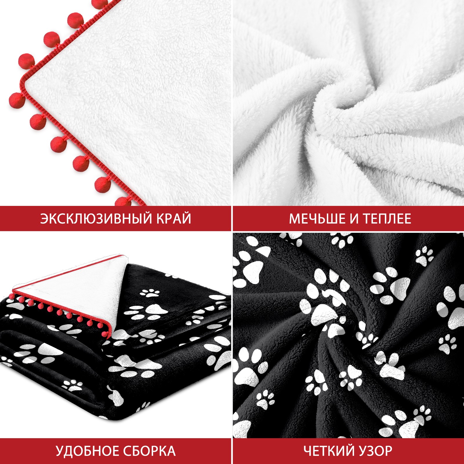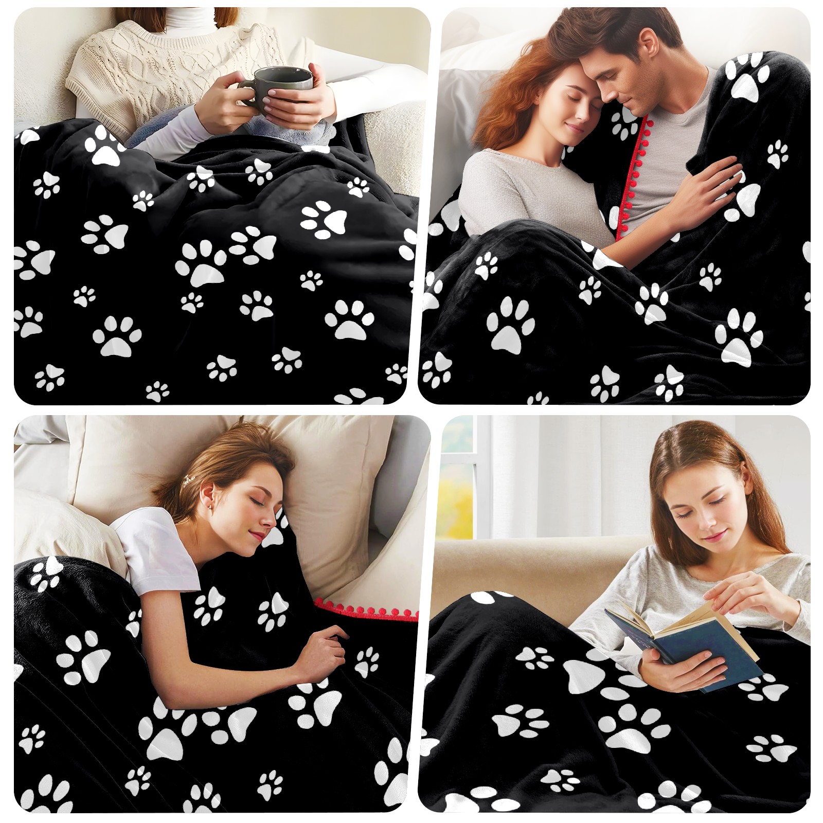 流苏毛毯 Black White Paw Pattern
