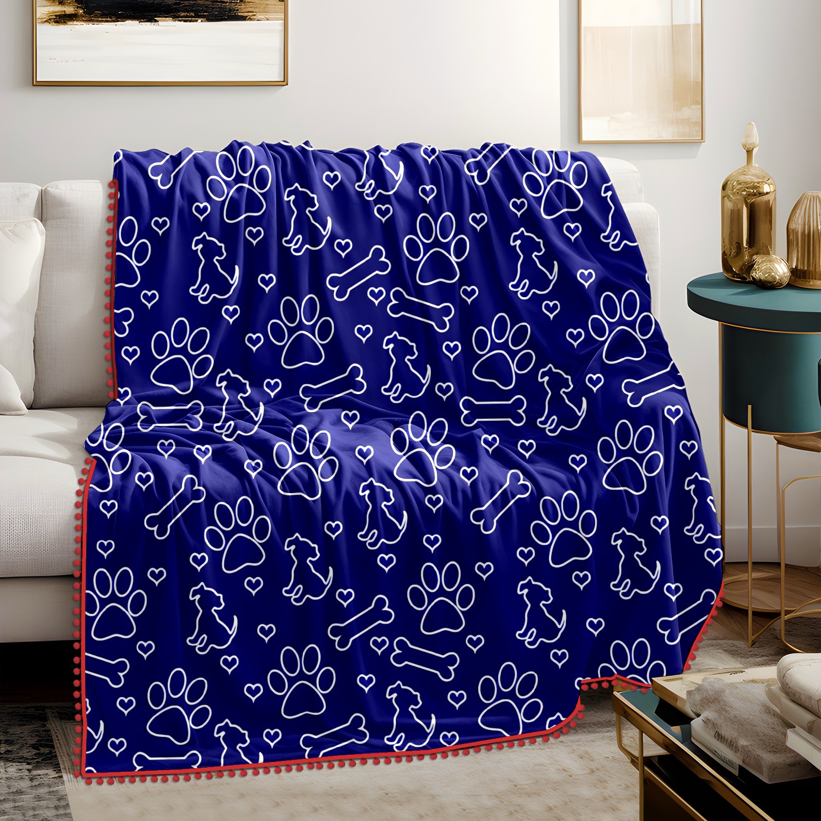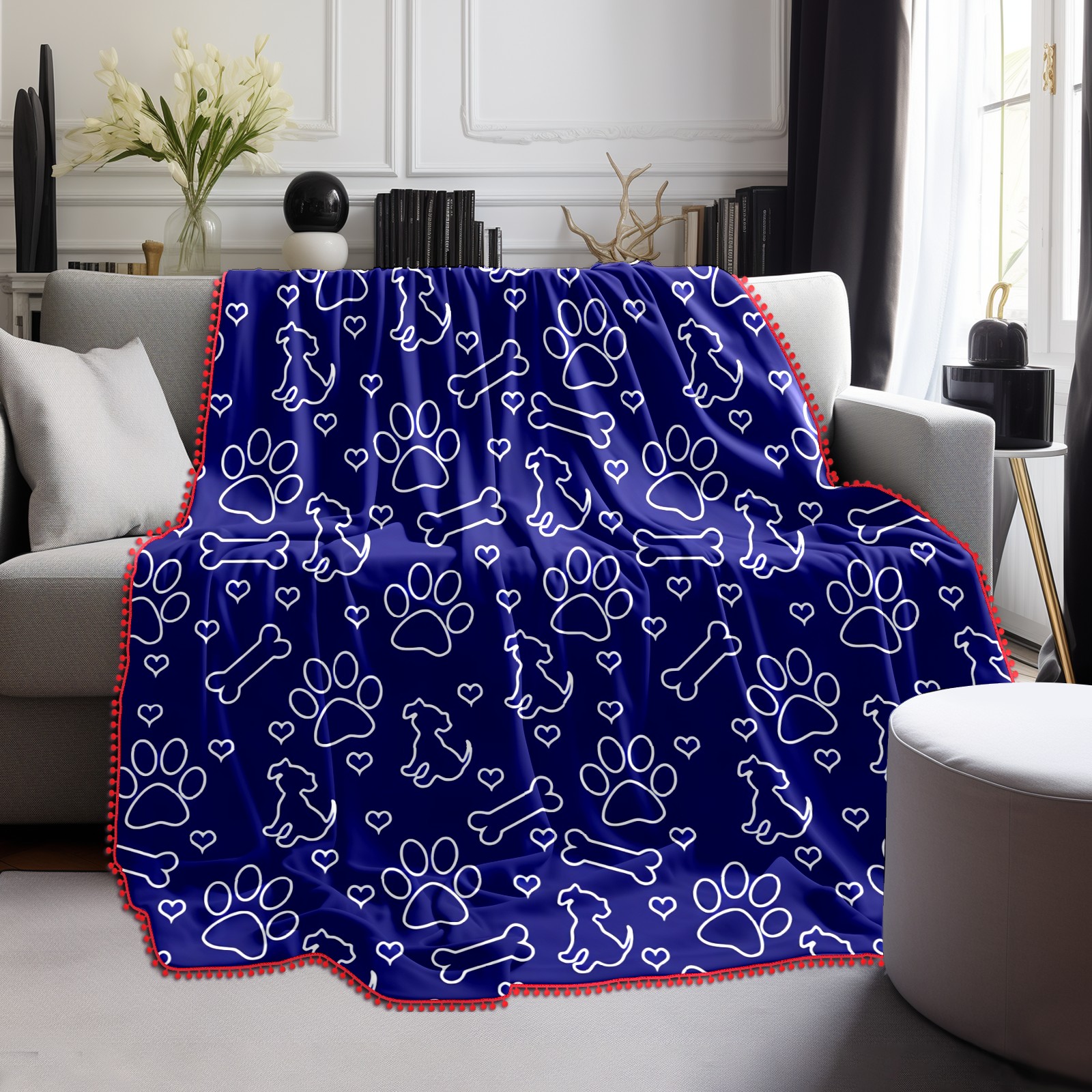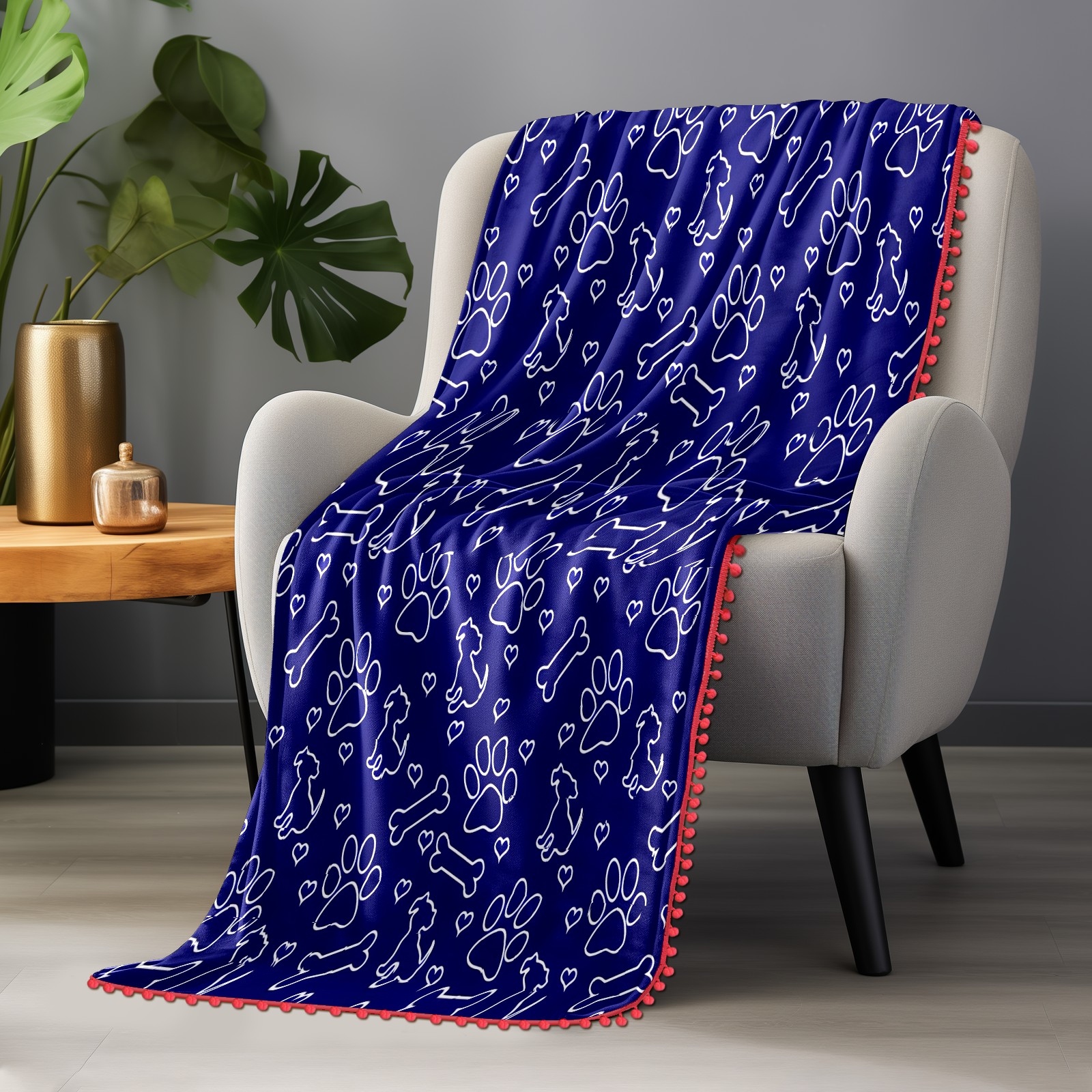流苏毛毯 Blue Cat Dog Bone Pawprint