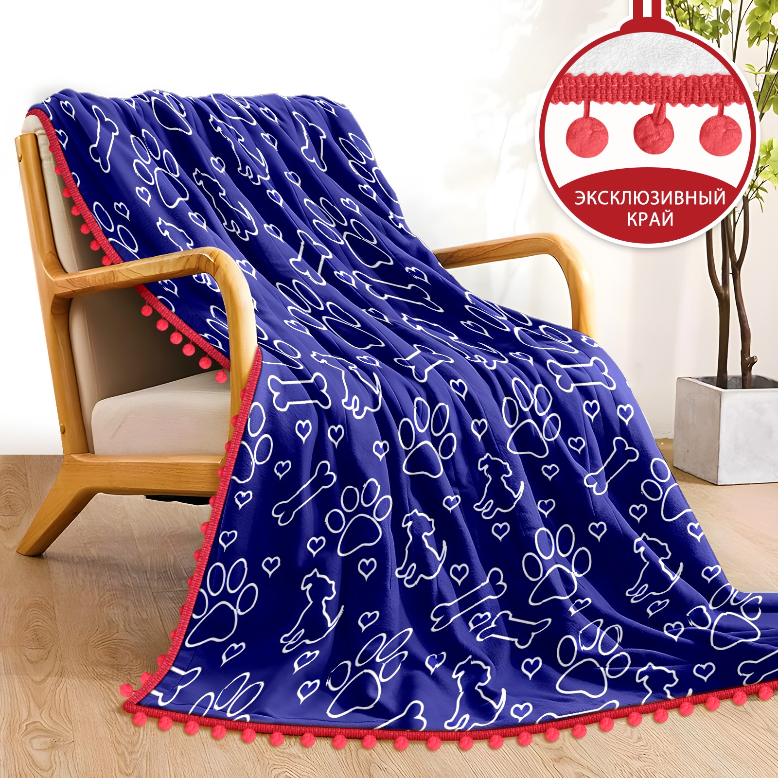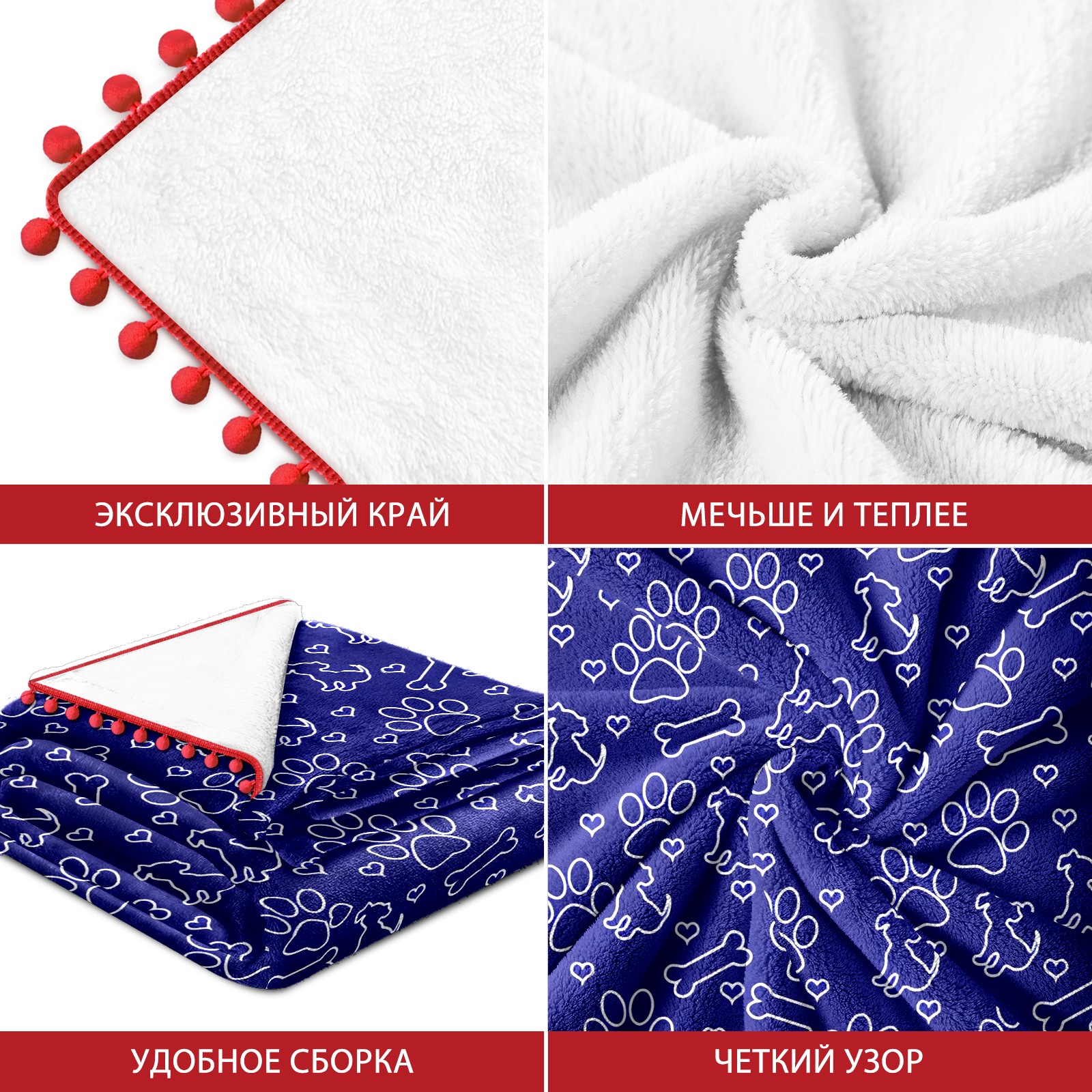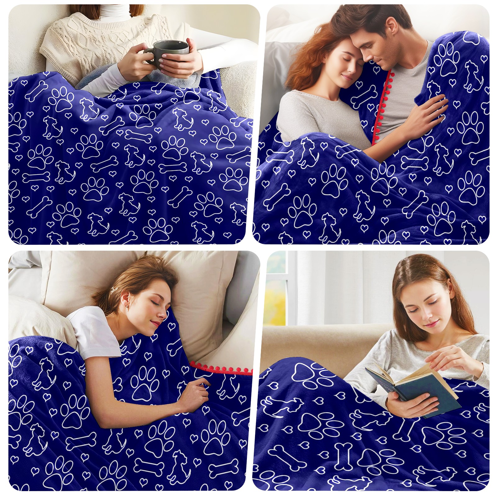 流苏毛毯 Blue Cat Dog Bone Pawprint