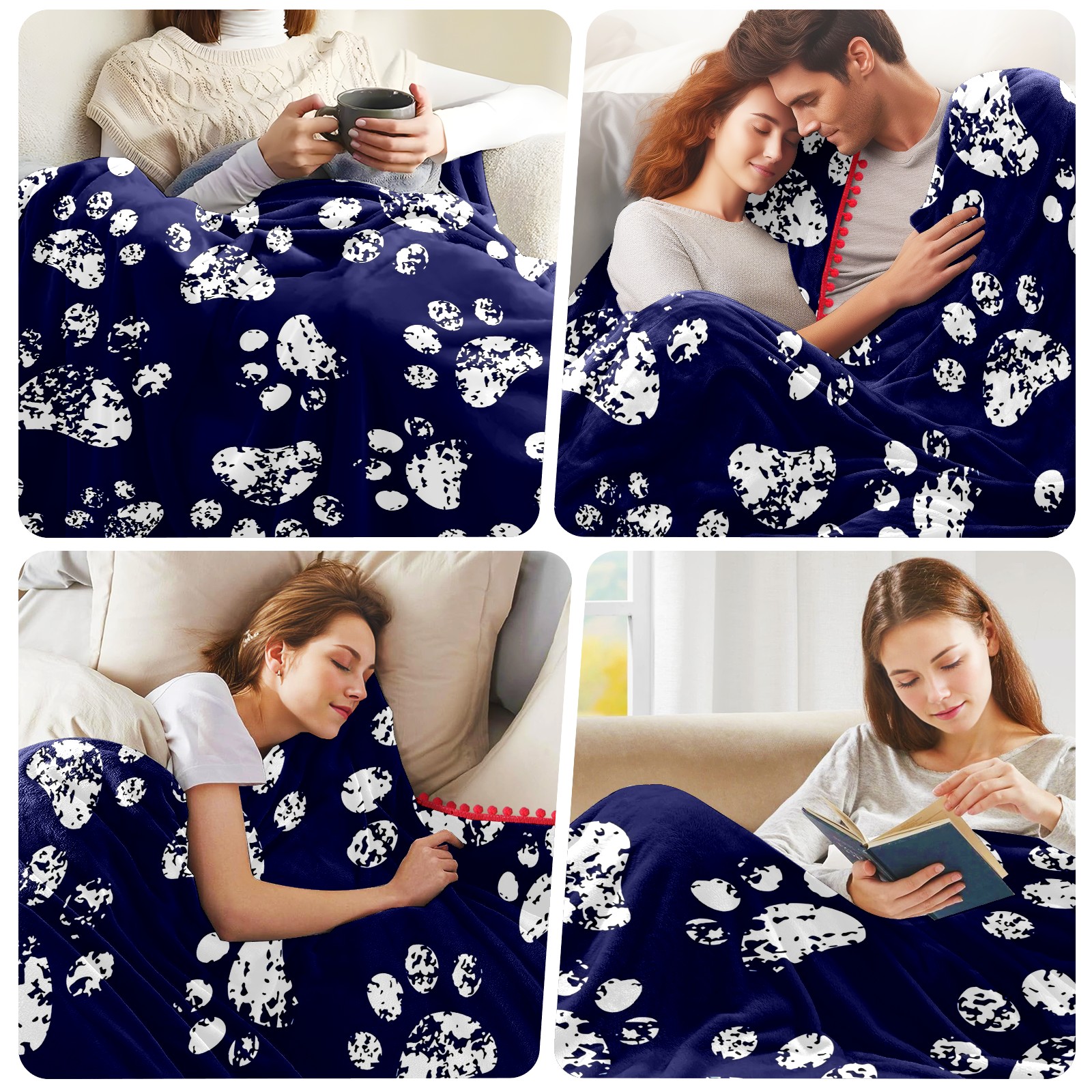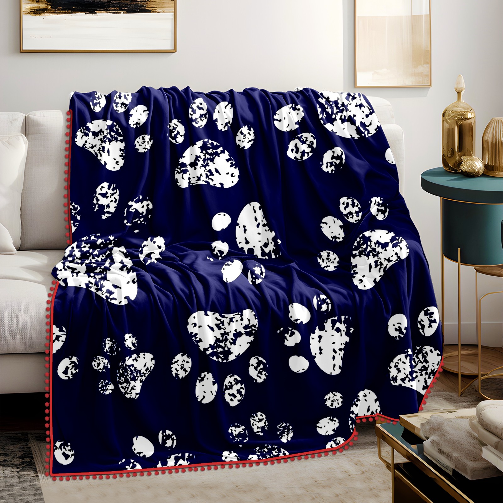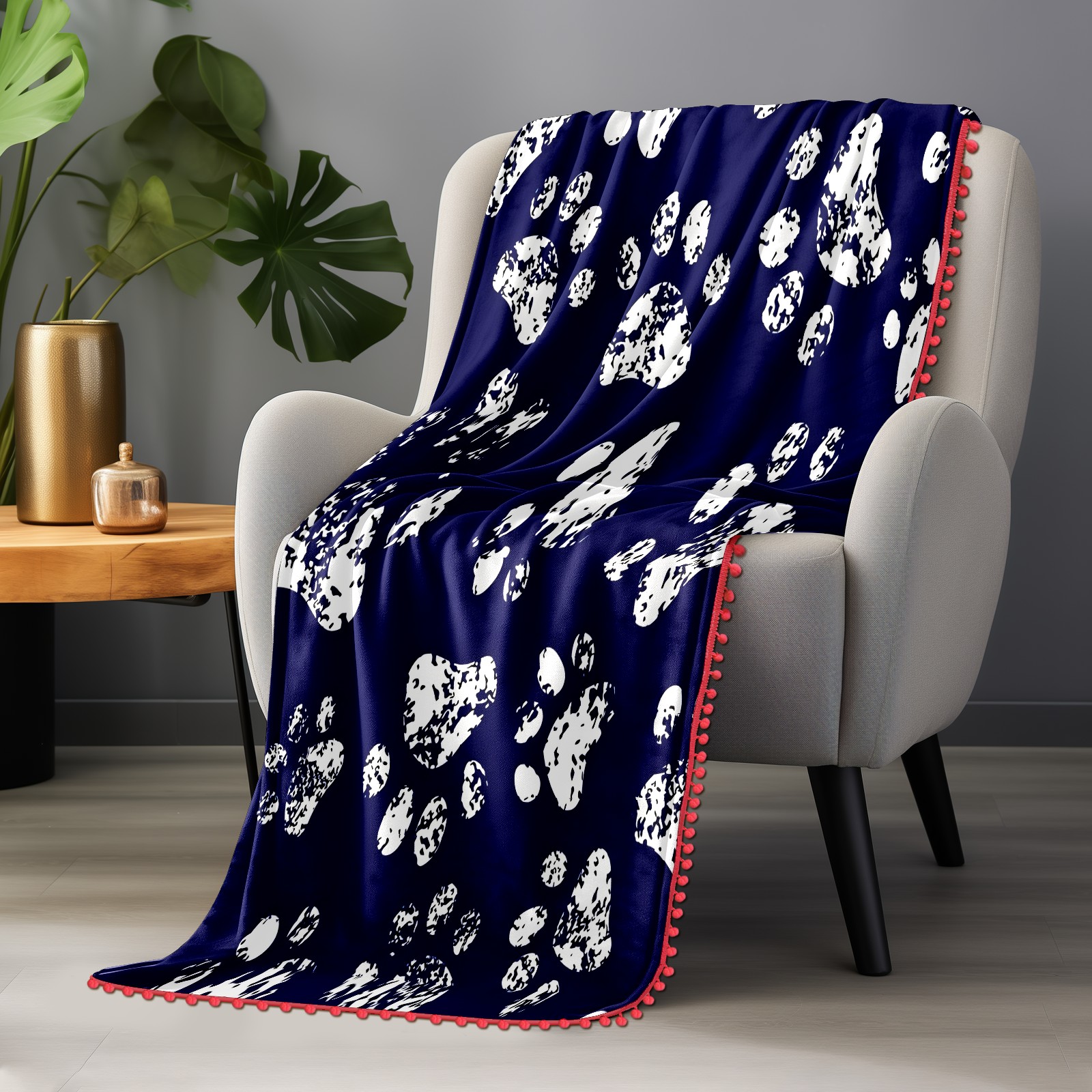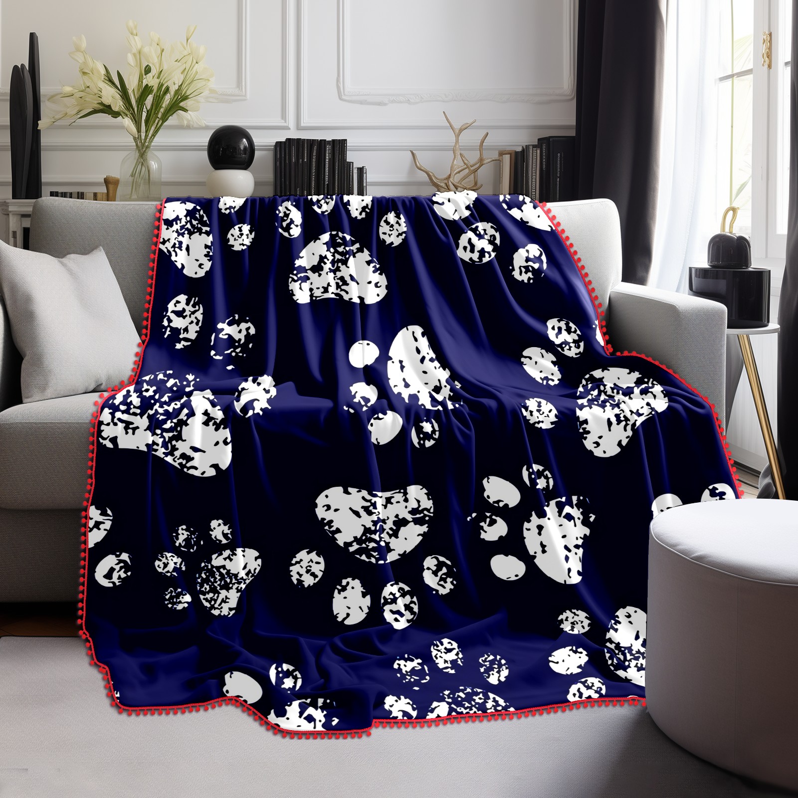 流苏毛毯 Cat Dog Pawprint