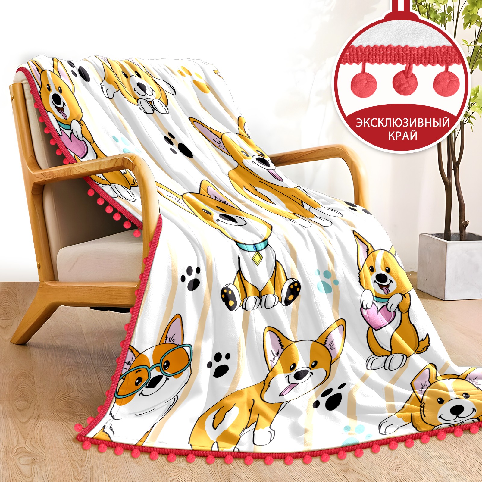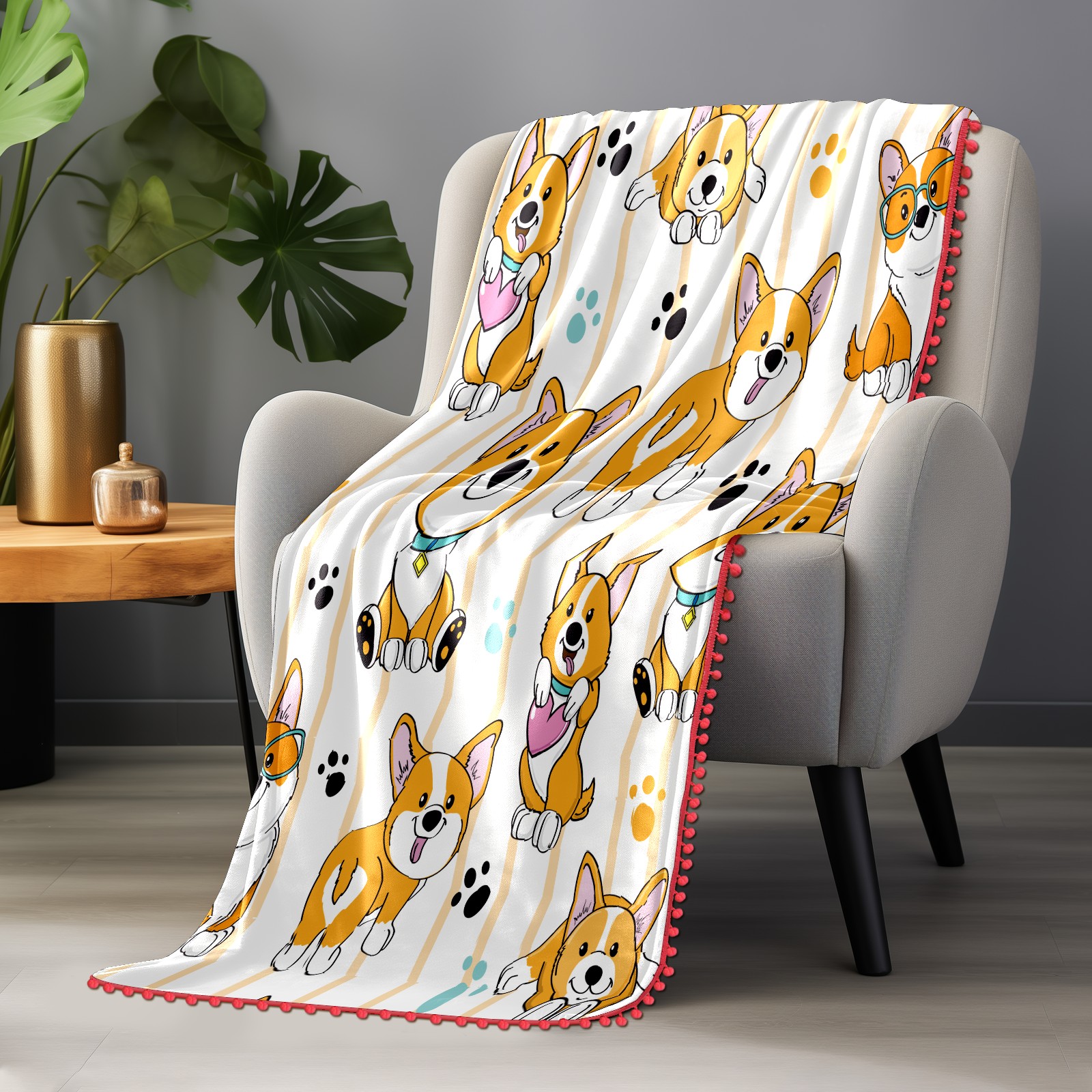 流苏毛毯 Corgi Dog Cute Paw Heart Stripe