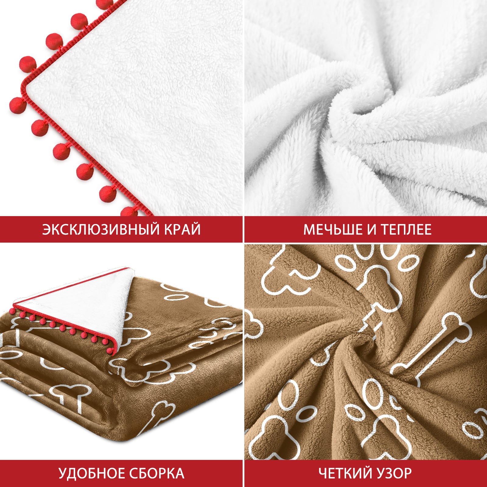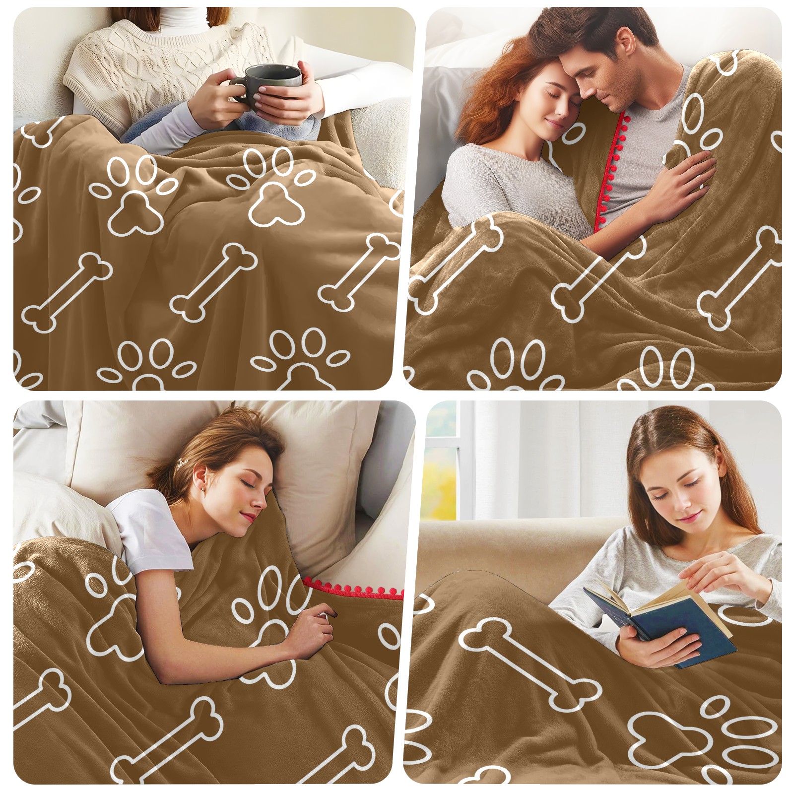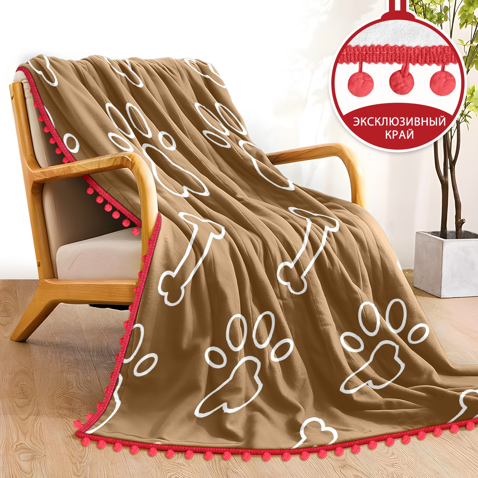 流苏毛毯 Dog Paw Bine Print Brown