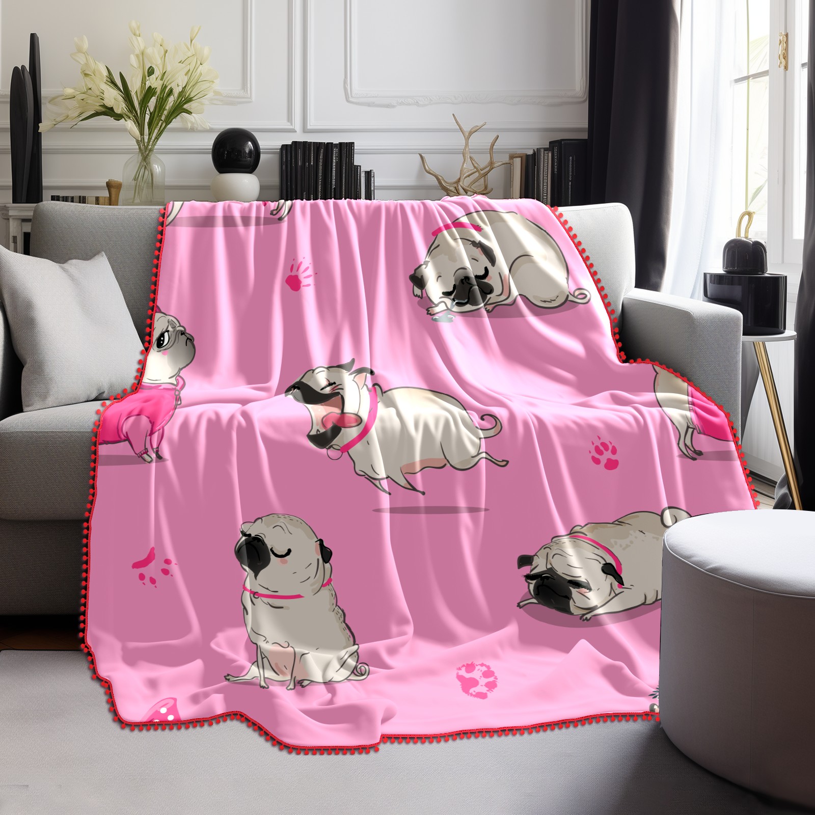 流苏毛毯 French Pug Bear Paw Dog Footprints