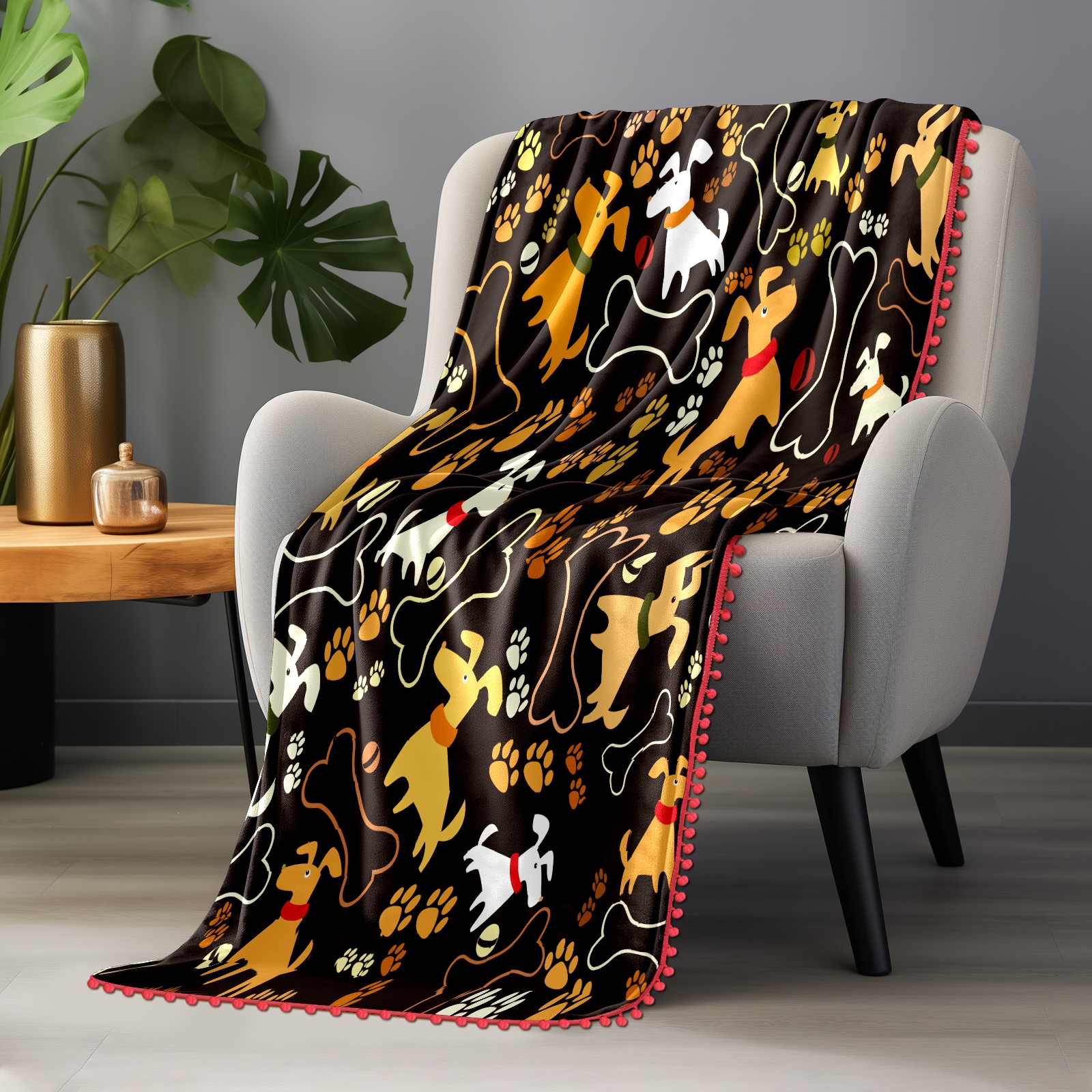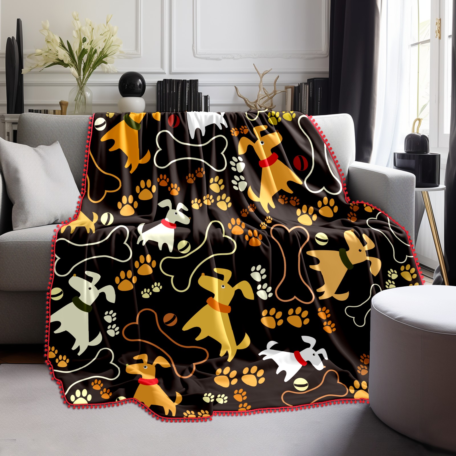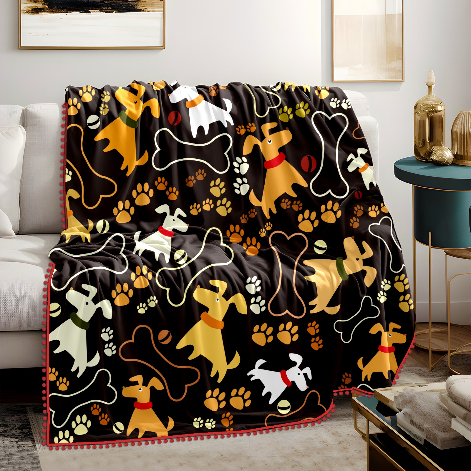 流苏毛毯 Cartoon Dog Paw Bone Pattern