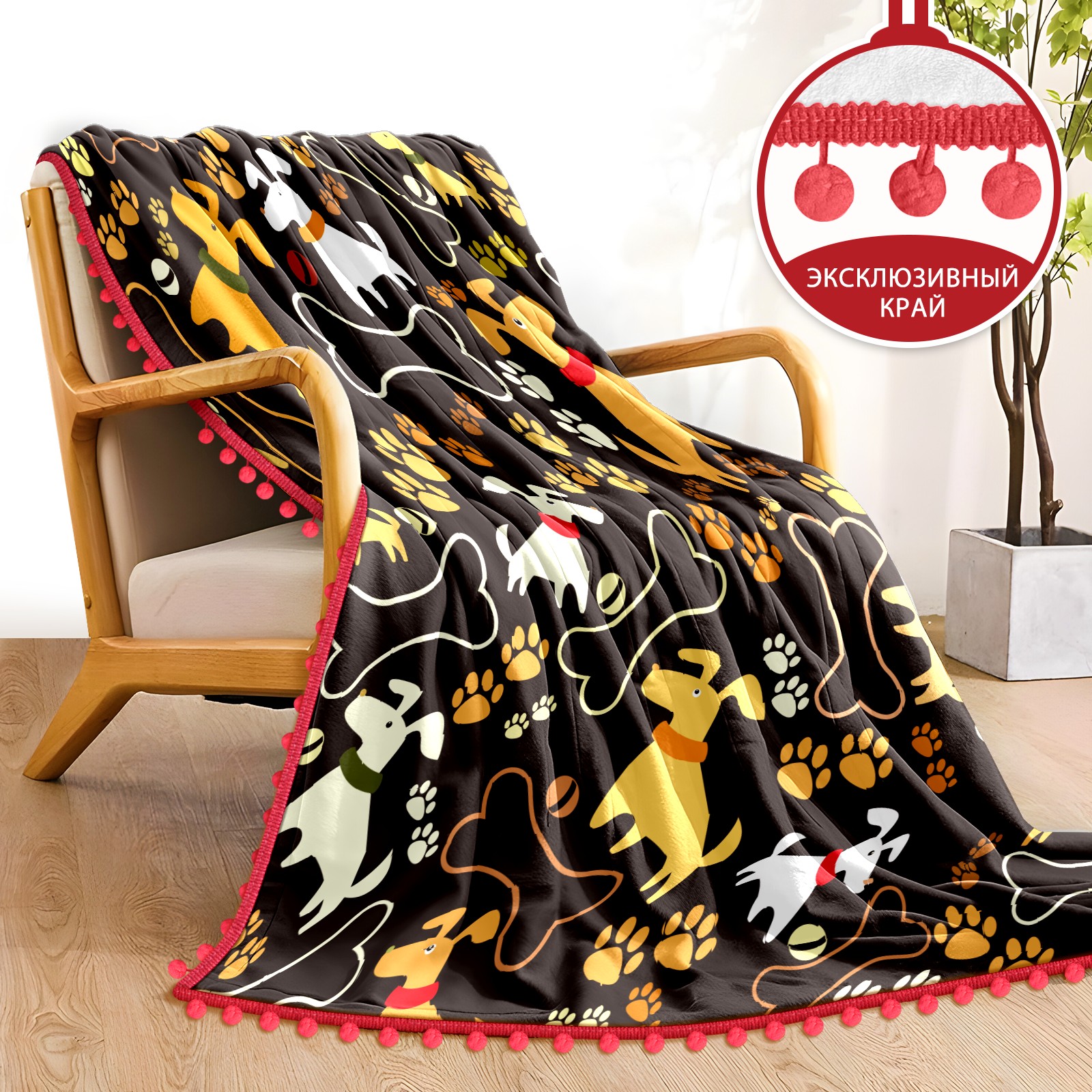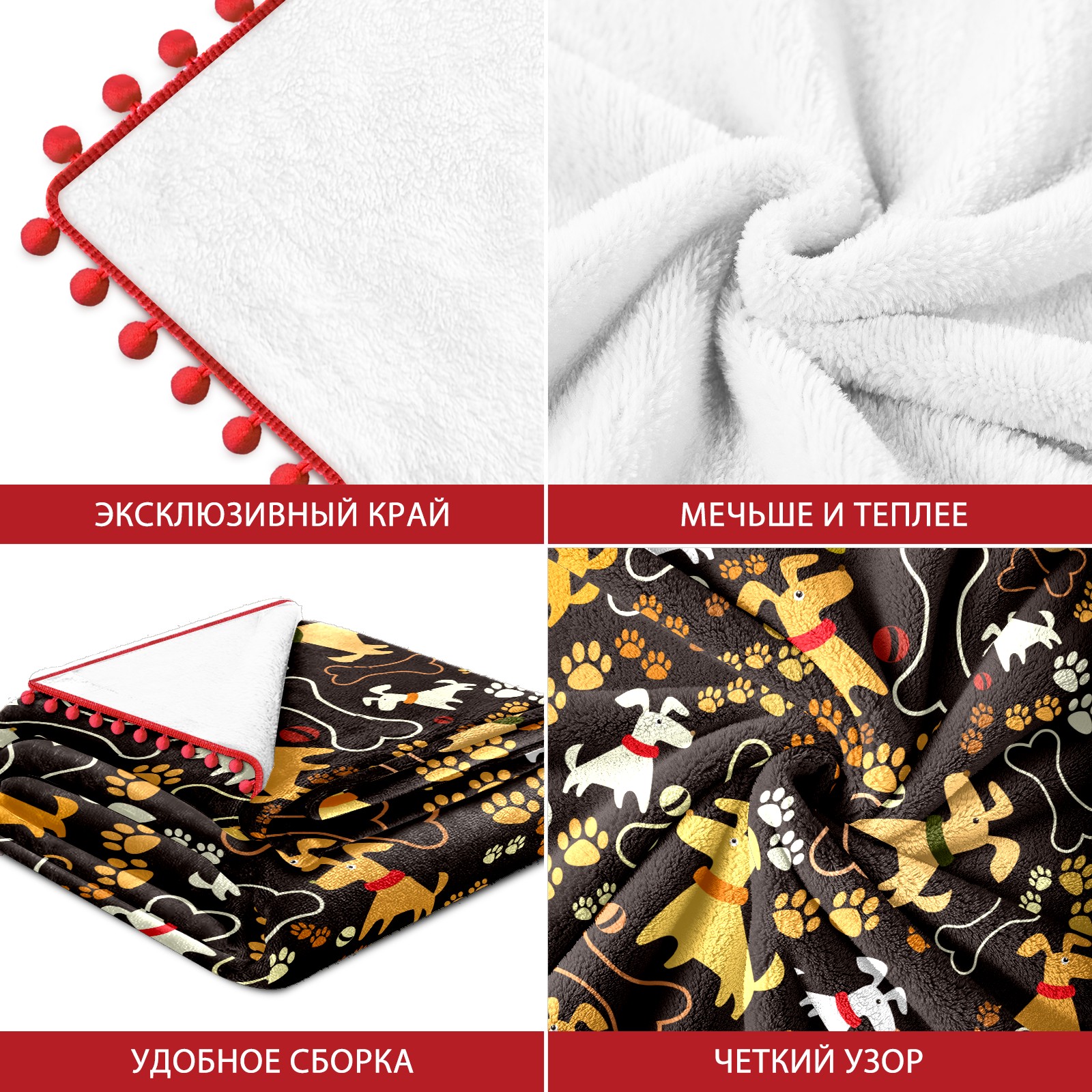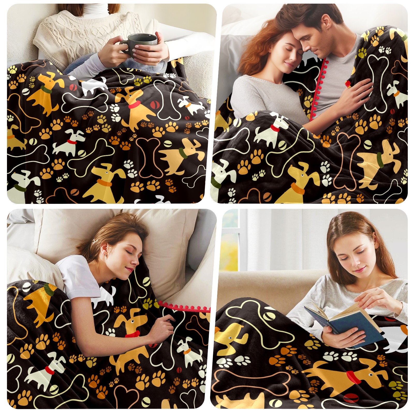 流苏毛毯 Cartoon Dog Paw Bone Pattern